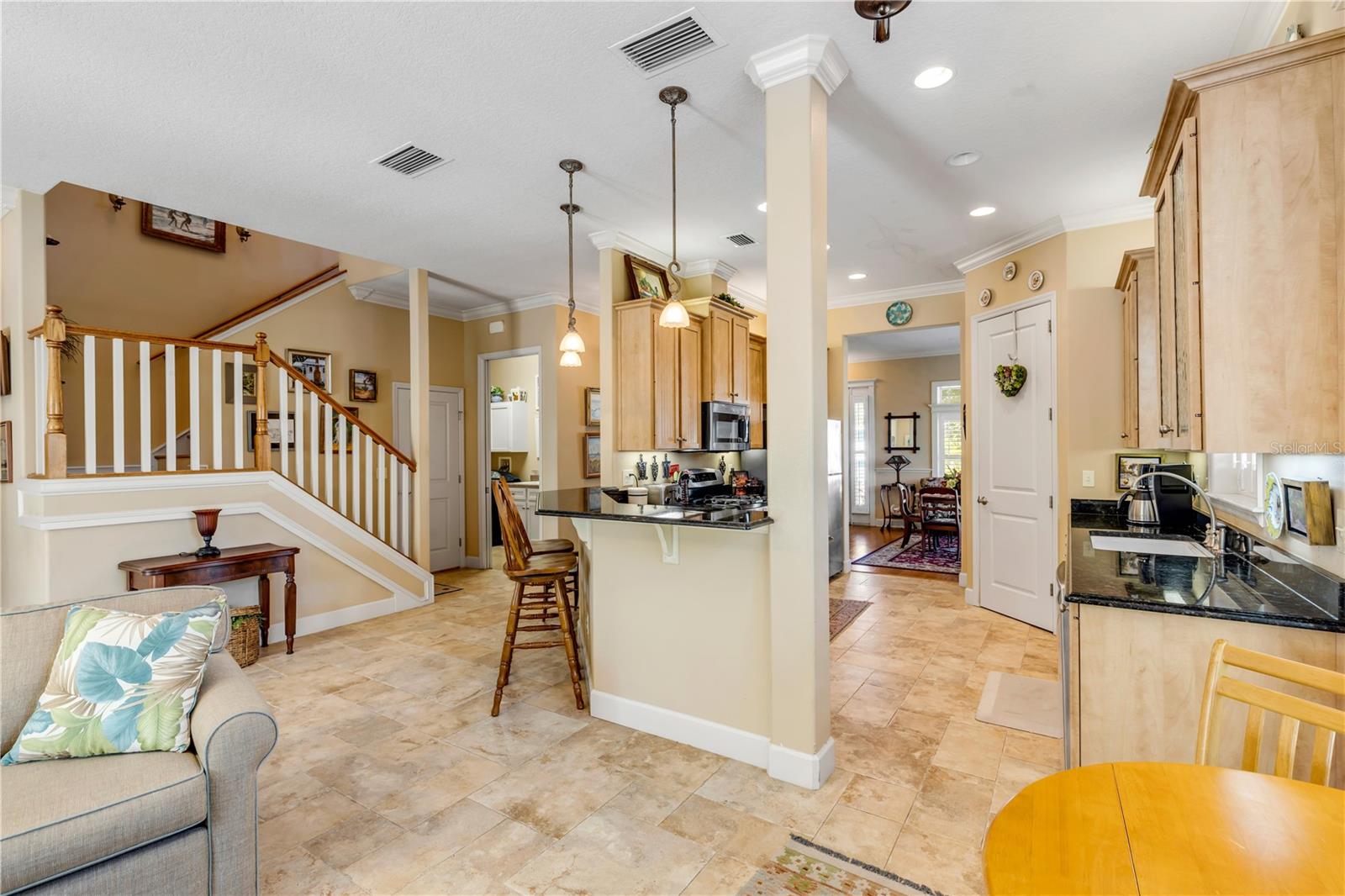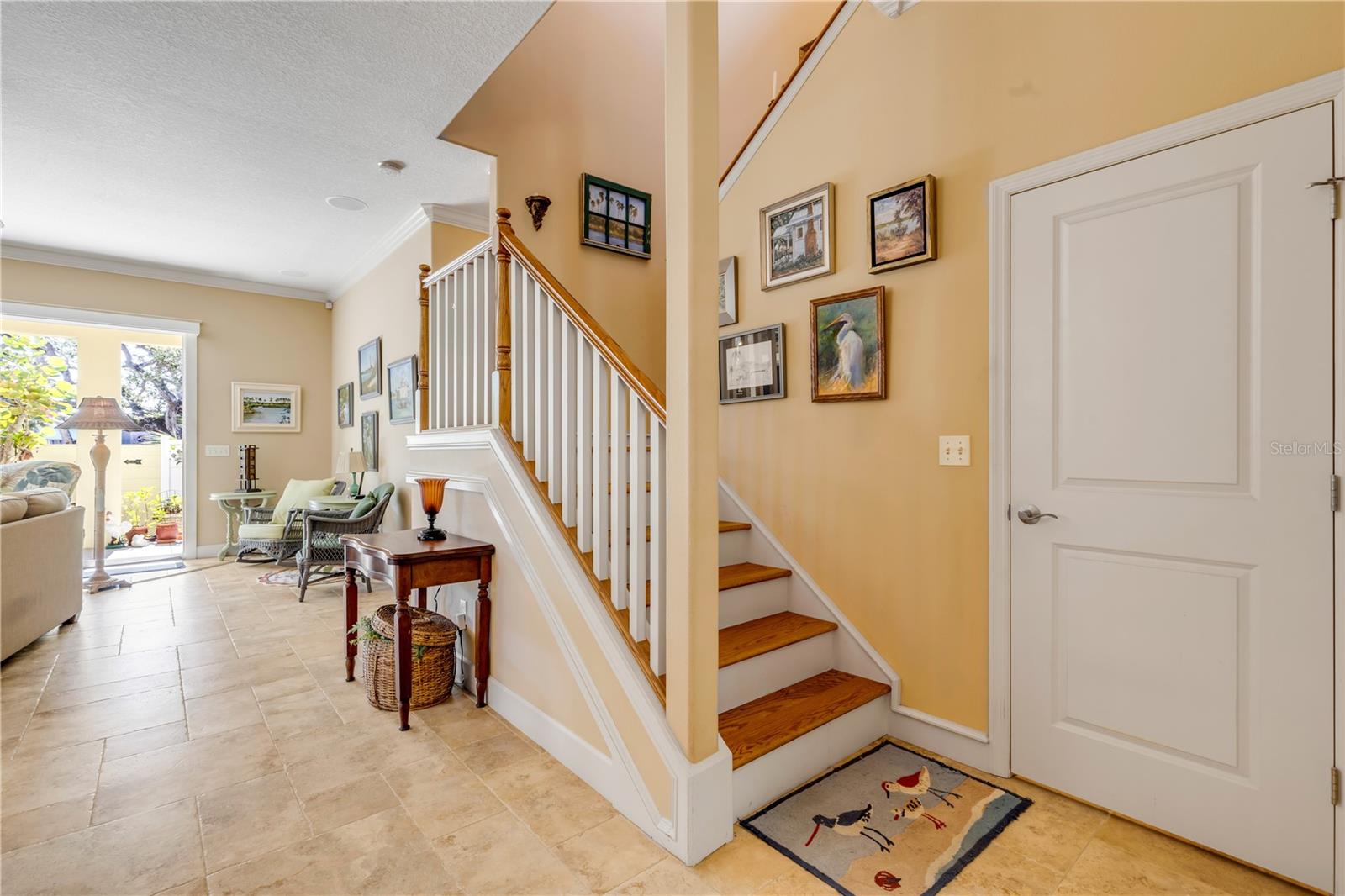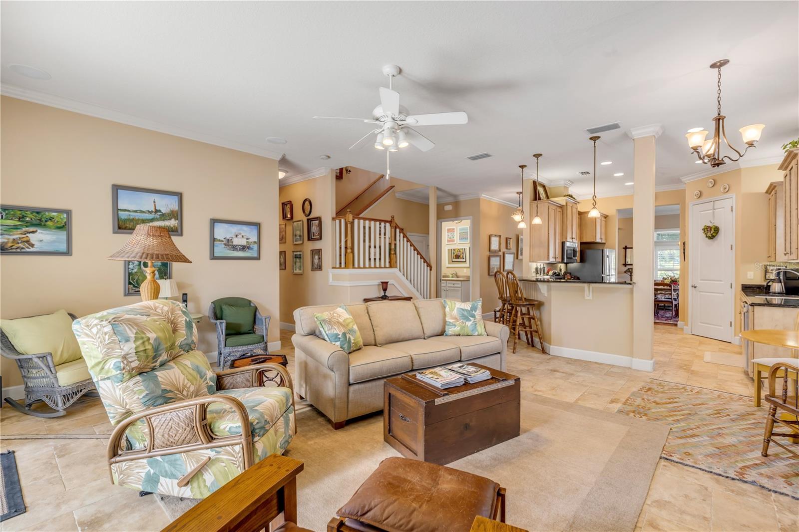 Beachside retreat in short-term rental overlay with the perfect blend of comfort and convenience. Featuring three bedrooms and two bathrooms, this two-story, split-plan home is thoughtfully designed to maximize privacy and functionality. Two generously sized bedrooms are located on the first floor, while the spacious primary suite and loft/office, and bonus room occupy the second floor, offering a private sanctuary. The open living and dining areas flow seamlessly into the galley kitchen, which boasts solid surface countertops, beautiful wood cabinetry, and stainless steel appliances. A washer and dryer laundry room is conveniently located on the first floor between the garage and hallway. At the top of the stairs, a versatile loft space can double as a home office and includes a door to an attic area, presenting the potential to be transformed into an additional room. Both the primary suite and the loft/office open to a beautiful wrap-around balcony, where you can unwind and savor Florida evenings. The covered front and back patios provide a serene spot to enjoy your morning coffee, while the fenced backyard ensures added privacy. Located within walking distance of the beach, restaurants, shopping, and entertainment, this home truly embodies the best of coastal living. Don’t miss your chance to make this gem your own – easy to view!