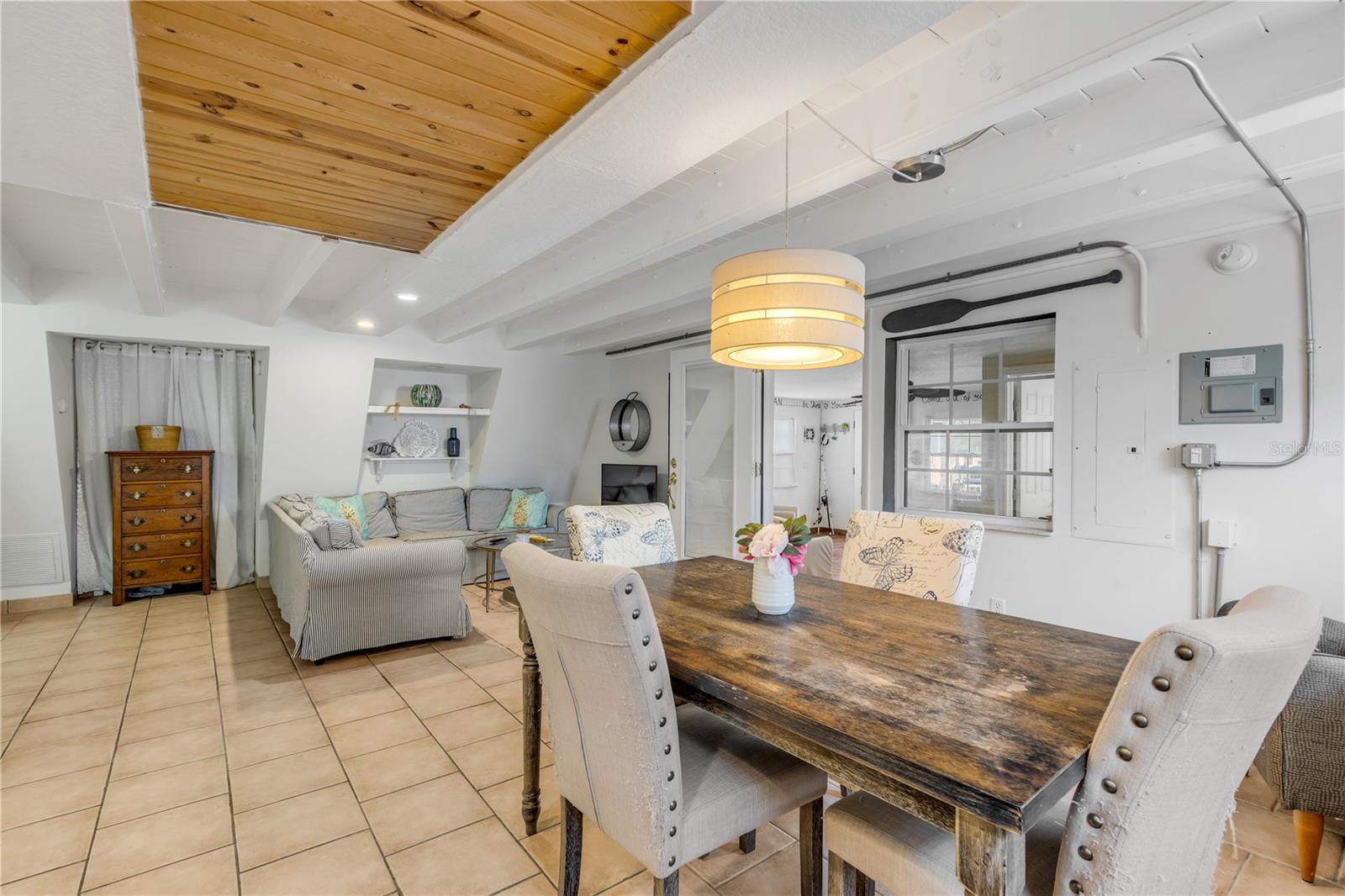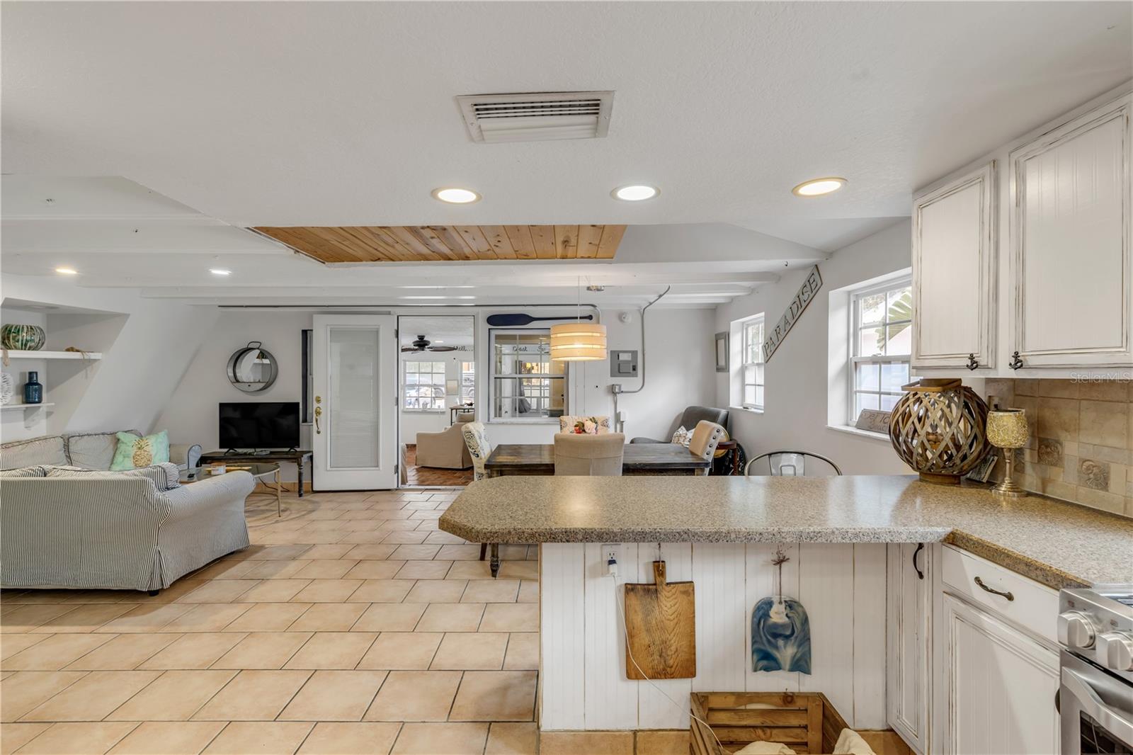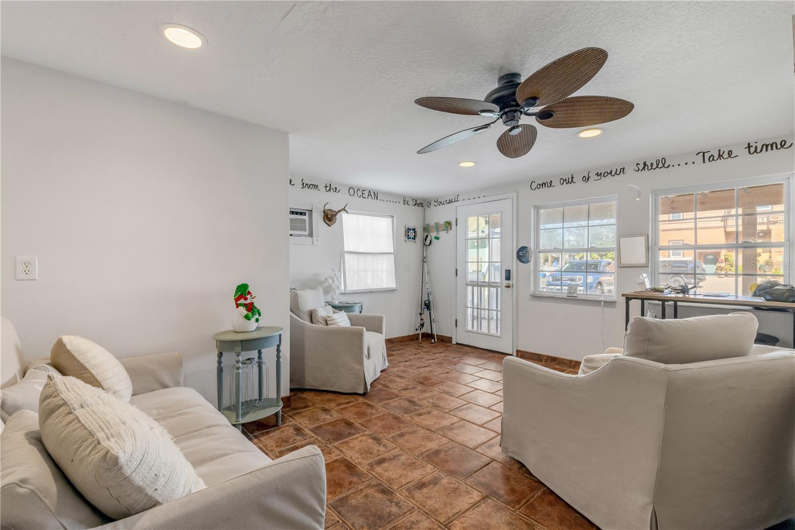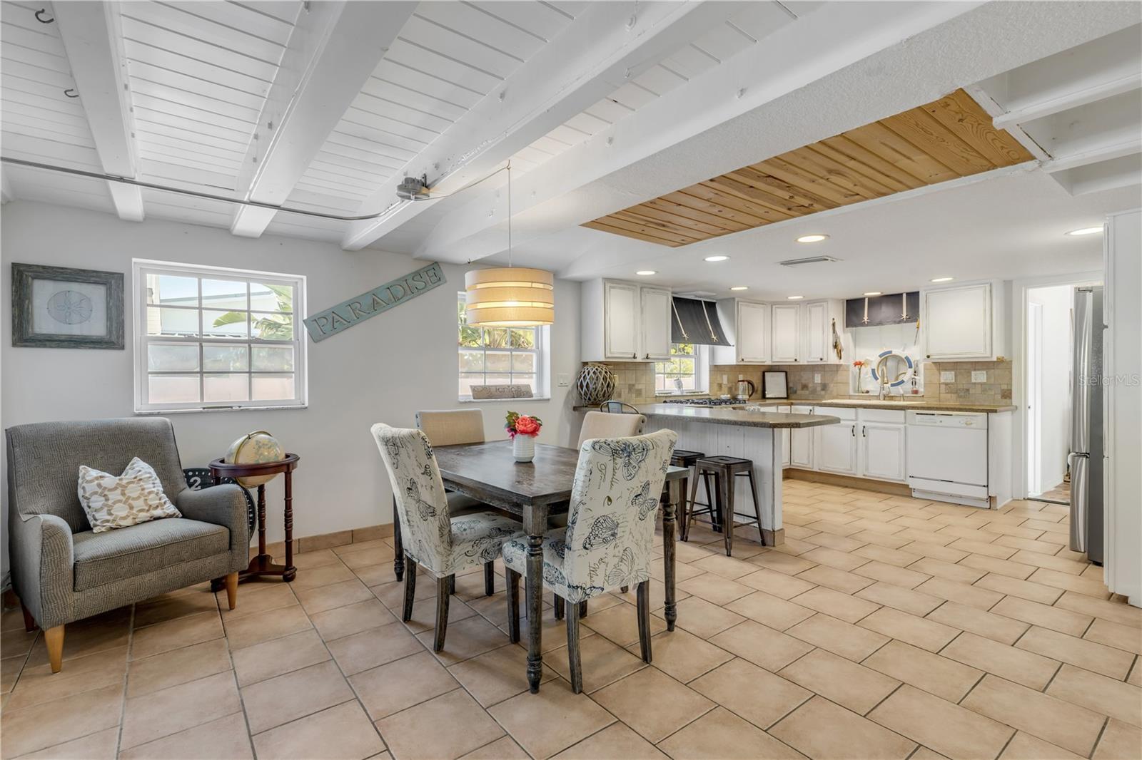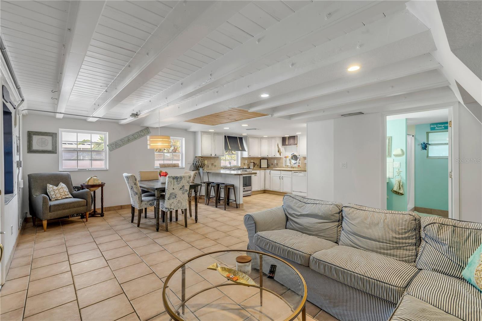This charming beachside bungalow offers an unbeatable location just steps to the iconic Flagler Avenue shopping district and a short stroll to the sandy shores of New Smyrna Beach. The property features two separate suites with private entrances, making it a unique and versatile find with rental income potential. The upper suite boasts a spacious teak deck, perfect for soaking in the ocean breeze. The lower suite includes two bedrooms, one bathroom, a spacious kitchen with a breakfast bar open to the living area creating an open floor plan. Convenient amenities are an outdoor shower with hot and cold water, a stainless steel sink, and a large storage area for beach toys and a golf cart. The pet-friendly, fully fenced yard includes two gated sections, and the property offers ample paved parking for plenty of company. The paved side area and covered front porch provide excellent spaces for entertaining or relaxing with friends and family. If you're looking for a home that embodies the ultimate beach lifestyle, this is a must-see!
