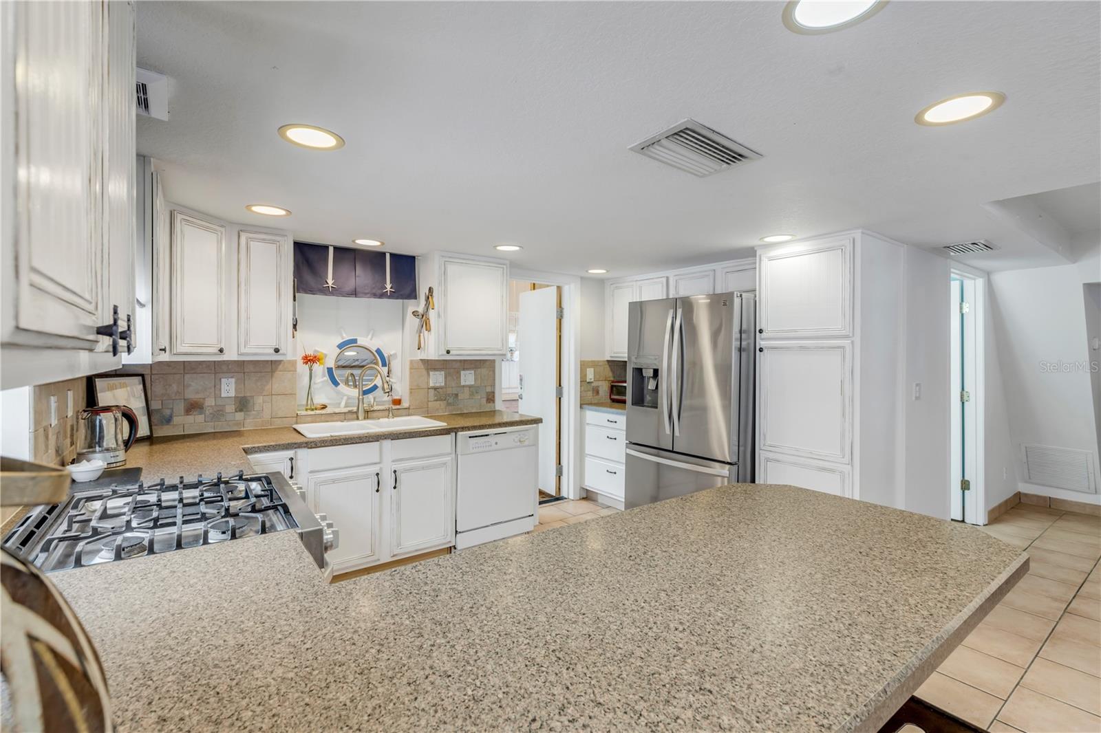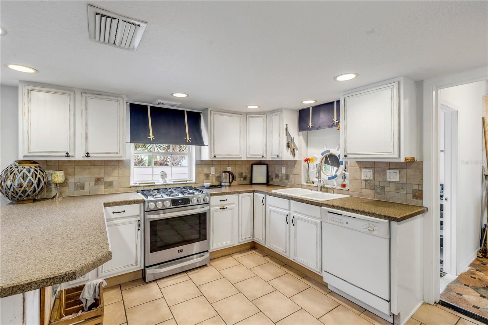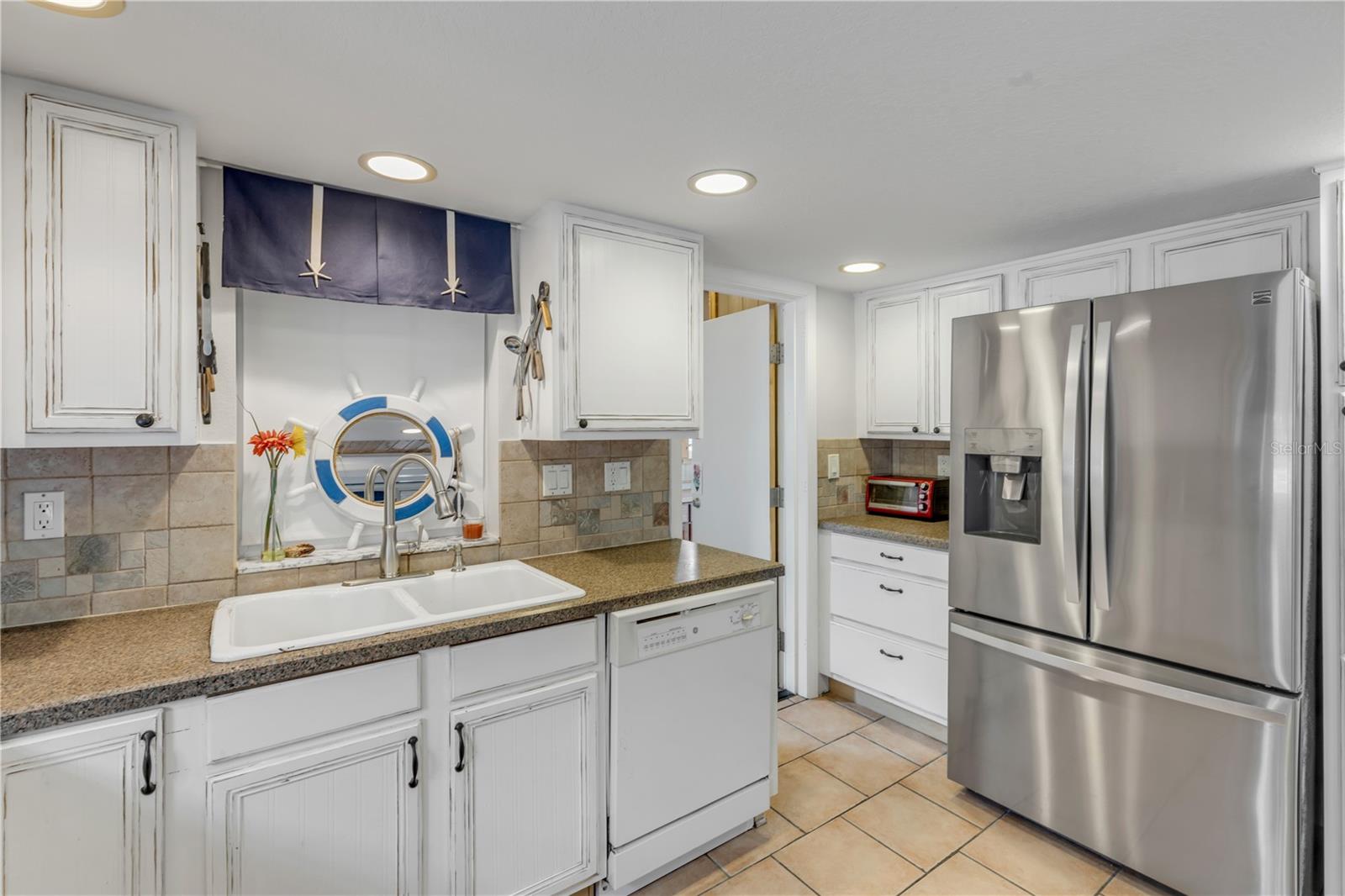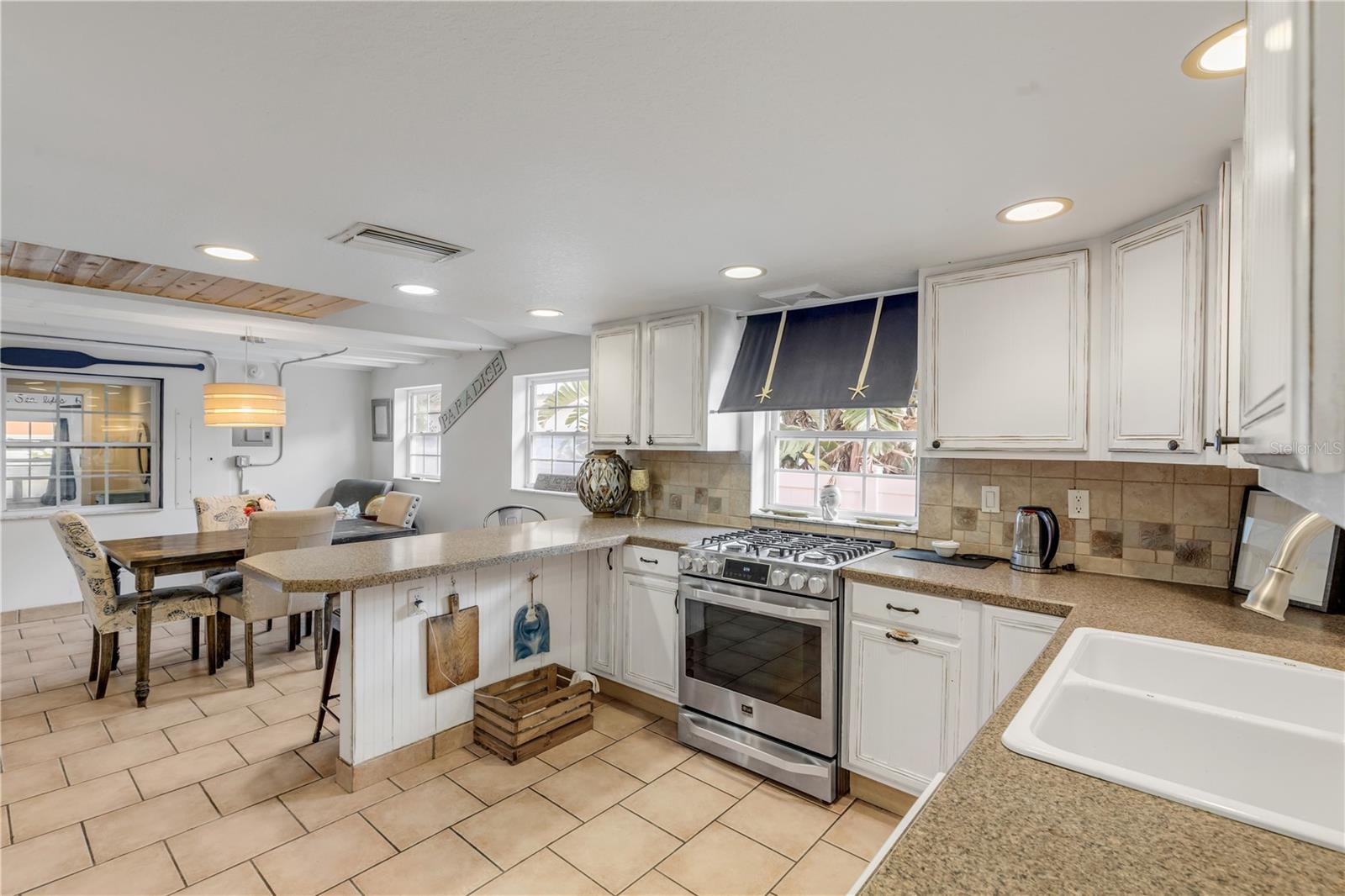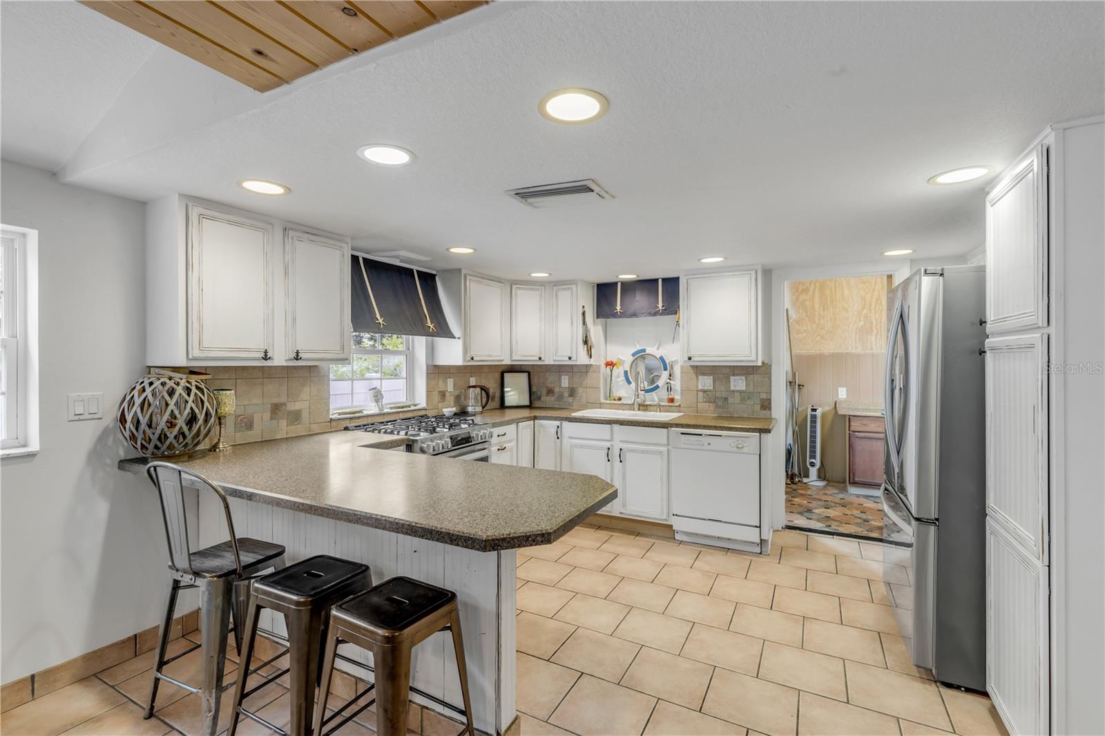 This charming beachside bungalow offers an unbeatable location just steps to the iconic Flagler Avenue shopping district and a short stroll to the sandy shores of New Smyrna Beach. The property features two separate suites with private entrances, making it a unique and versatile find with rental income potential. The upper suite boasts a spacious teak deck, perfect for soaking in the ocean breeze. The lower suite includes two bedrooms, one bathroom, a spacious kitchen with a breakfast bar open to the living area creating an open floor plan. Convenient amenities are an outdoor shower with hot and cold water, a stainless steel sink, and a large storage area for beach toys and a golf cart. The pet-friendly, fully fenced yard includes two gated sections, and the property offers ample paved parking for plenty of company. The paved side area and covered front porch provide excellent spaces for entertaining or relaxing with friends and family. If you're looking for a home that embodies the ultimate beach lifestyle, this is a must-see!
