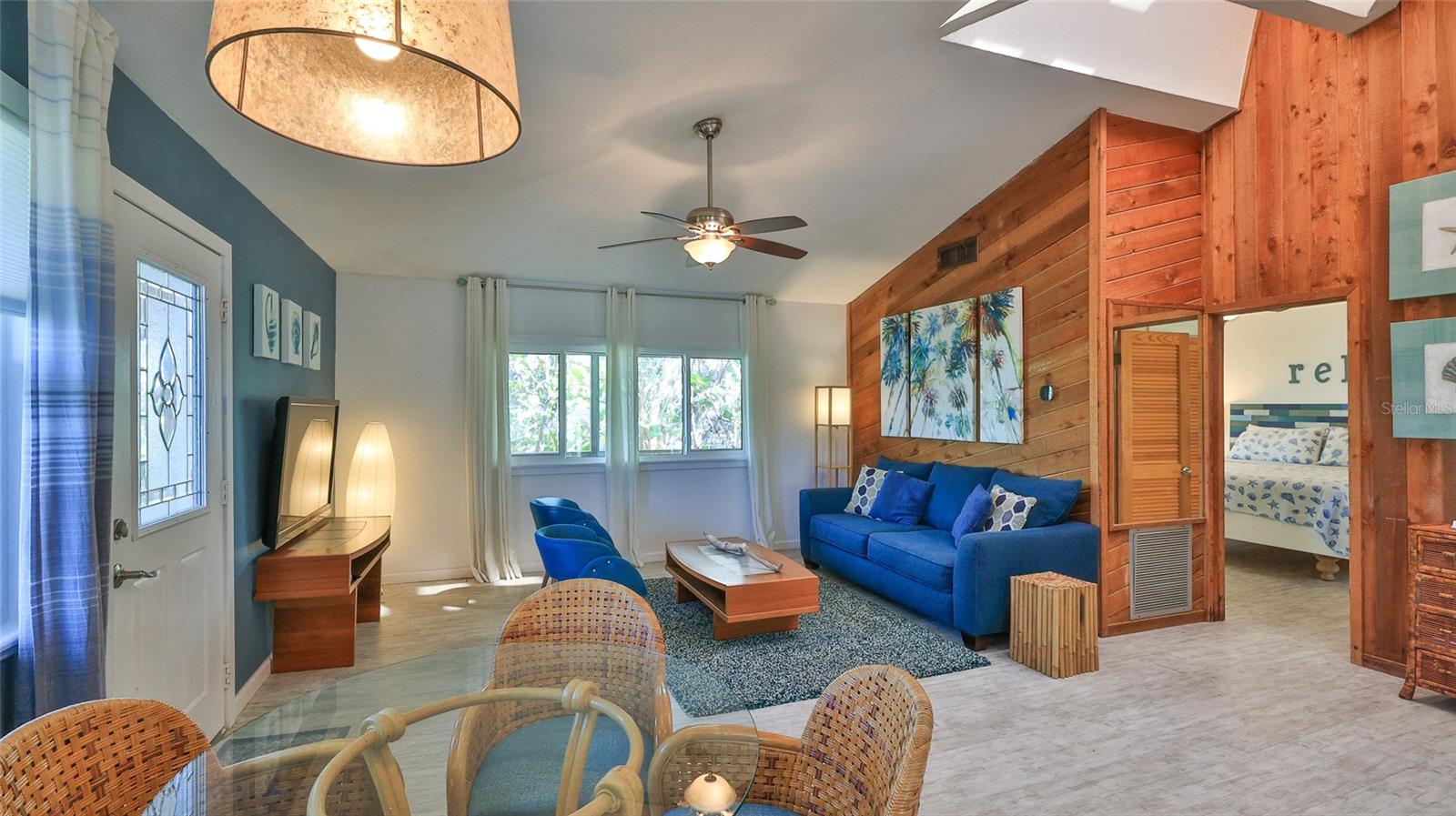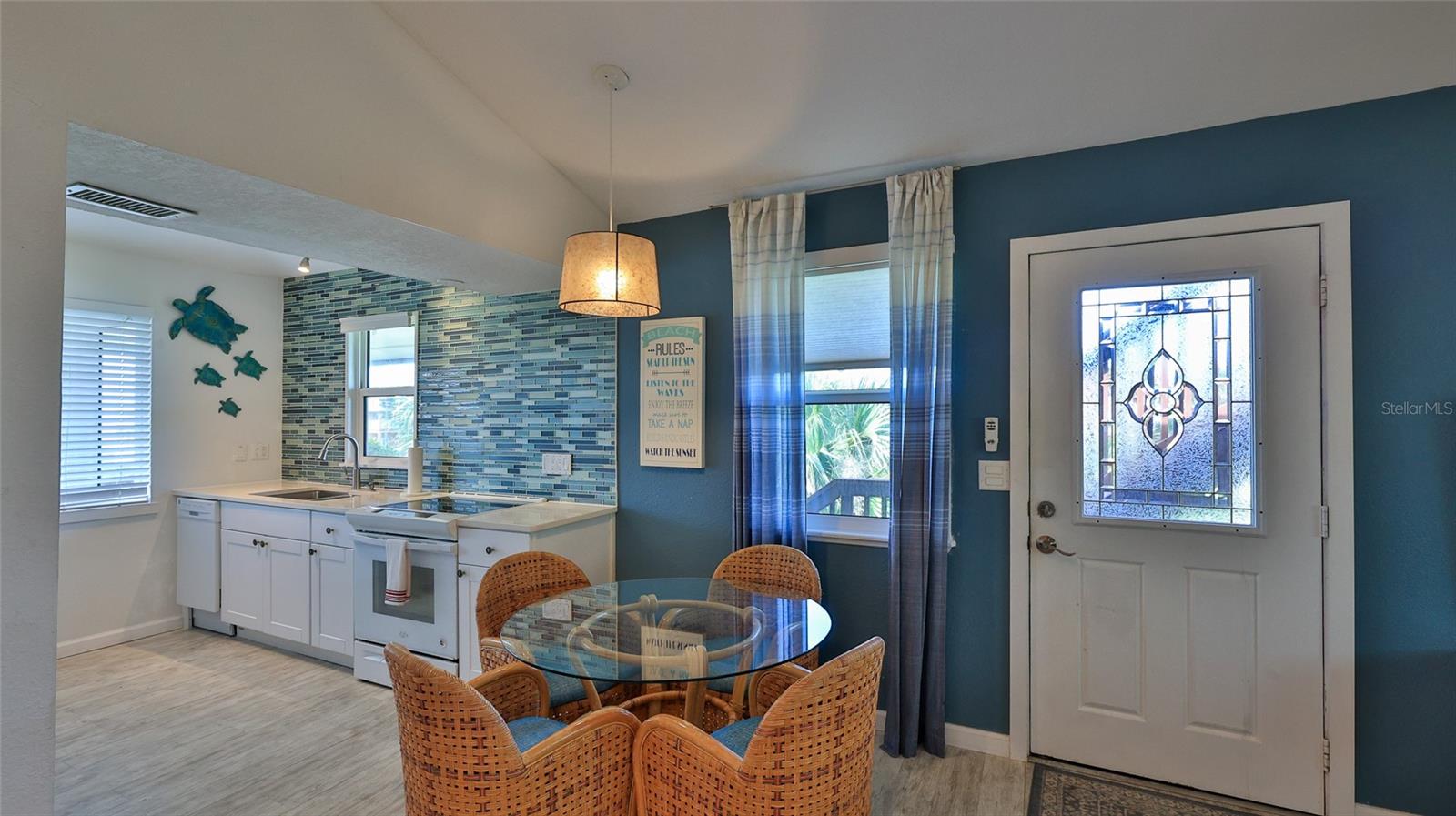 Bethune Beach living! Open Floor Plan with Coastal Charm: Bright, airy living spaces feature high-volume ceilings, a skylight, and chic wood-paneled accent walls, perfect for relaxing or entertaining. Brand-New Hurricane Windows & Sliding Doors: Fully Furnished & Move-In Ready: Sleek Updated Kitchen: Quartz countertops, a glass-top slide-in range, a dishwasher, and a refrigerator. Luxury Vinyl Plank Flooring: A modern, durable upgrade throughout the home. Outdoor Oasis: Multiple decks, including a roof deck/crow's nest, provide breathtaking views and ample space to unwind or host gatherings. Recent Upgrades That Set This Home Apart: Complete 2018 Renovation: Kitchen, bathrooms, flooring, decking, roof deck, and sliders. New Roof: Installed February 2024. New A/C System: 2020. Updated Electrical Panel: 2020. Laundry Upgrades: New washer (2020) and dryer (2022). Exterior Paint & Deck Sealing: Freshly completed in February 2024. Prime Bethune Beach Location: