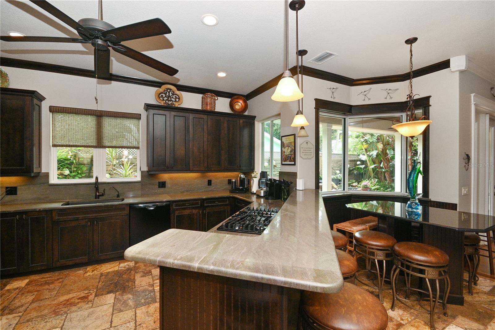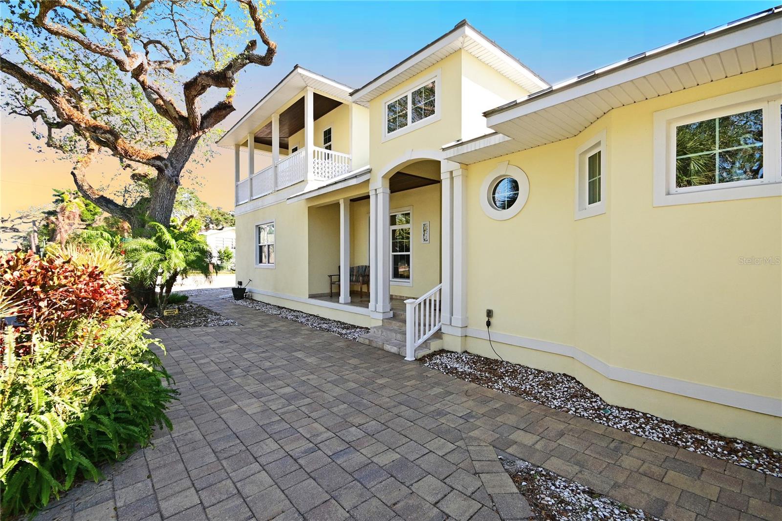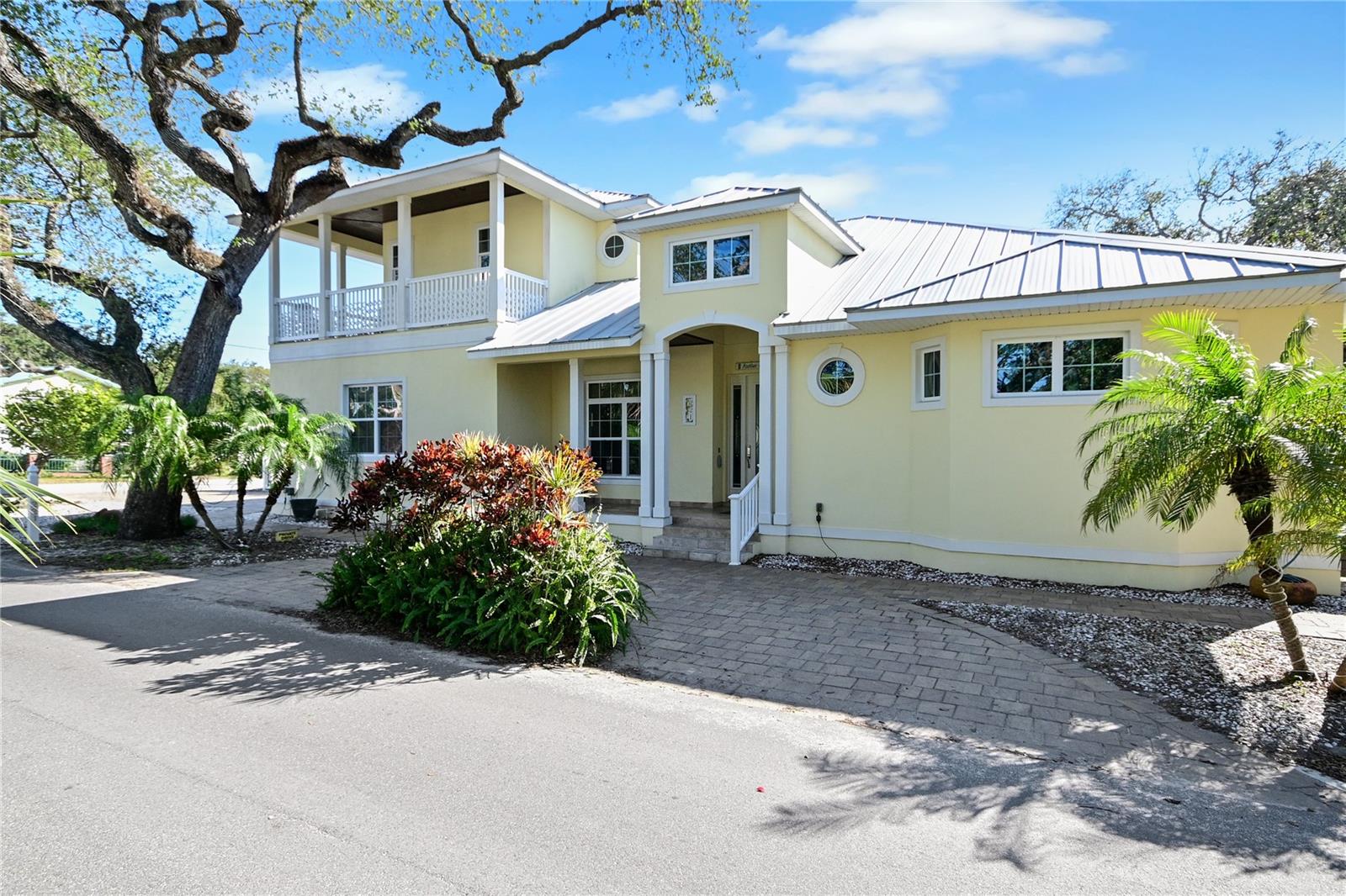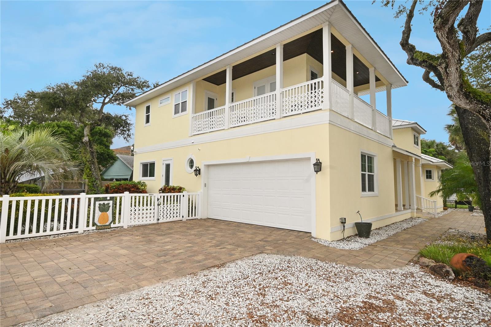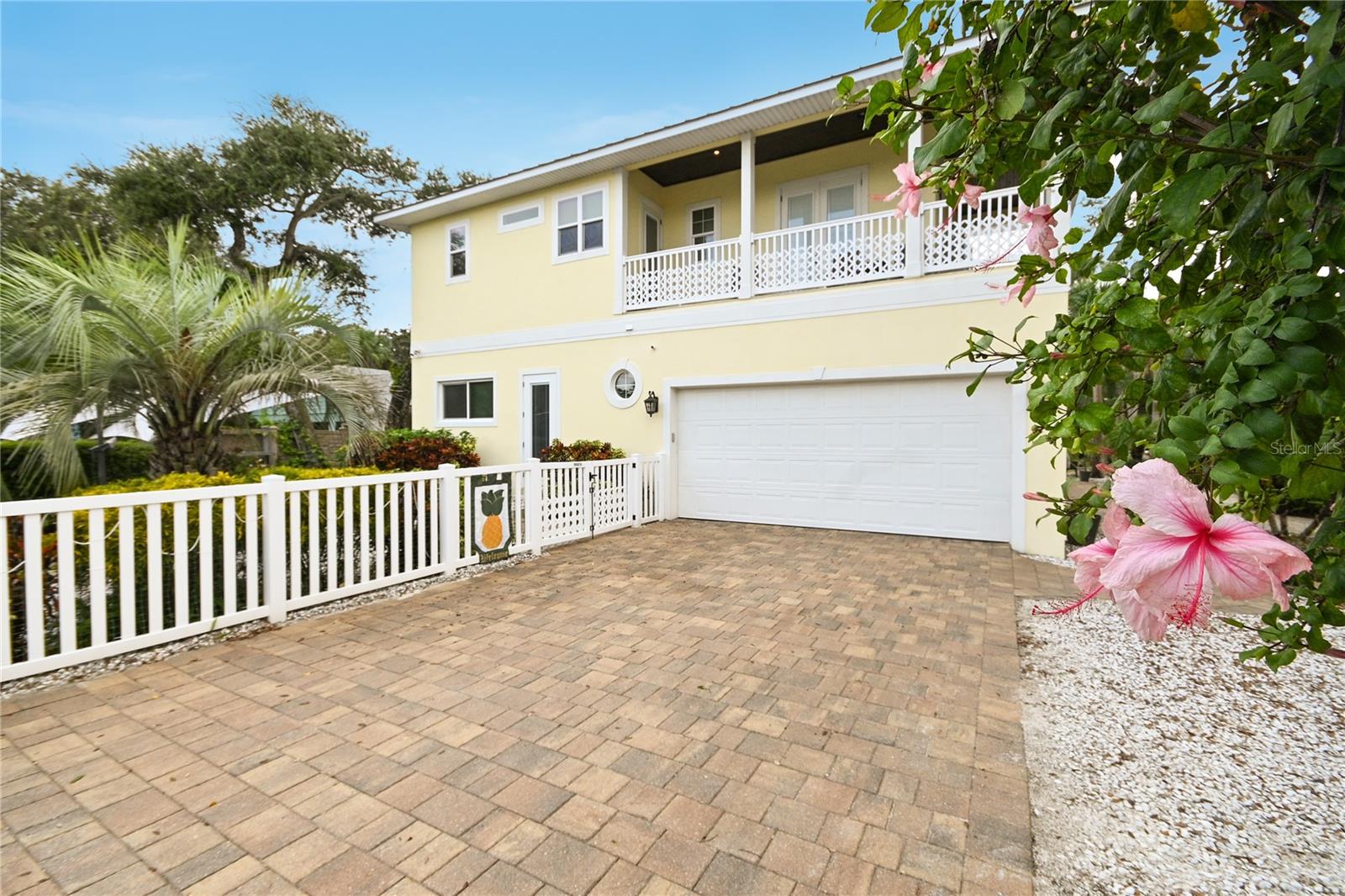 This truly custom Key West inspired 3-bedroom, 3.5-bath home is loaded with upgrades and now ready to be your home! Only 300-feet south of Flagler Avenue! Location is perfect for parking your car and forgetting all your stress. Walk, ride or golf cart to fine dining, boutique shopping, special events, live music & entertainment along with digging your toes into the sandy beach! Built in 2013 to above code standards gives peace of mind with high elevation (higher than standard), hurricane-rated windows/doors/garage, heavy grade metal roof, spray-in foam insulation for low electric bills and natural gas appliances. Both 17.2 SEER rated “whisper quiet” A/C systems are new in 2023 along with a gas water heater. The 1st floor starts at a front porch with travertine flooring that continues into a spacious great-room with custom built-in features, vaulted ceilings with tall interior doors, walnut wood flooring, crown molding and baseboards. Think large rooms, closets, walk-ins and storage space and this home does not disappoint! There is literally a closet, pantry or storage space in every room. The kitchen has level 5 granite counters from Brazil, convection oven, high-end cabinets, dual sink with Aquasana filter system, two separate pantries and wine rack. The 1st floor primary suite is huge with a private office, walk-in closet with custom racks and bathroom featuring a roman-style bathtub, separate vanities and a walk-in shower with multiple shower heads. Tastefully placed windows with custom treatments throughout the home provide the perfect balance of privacy and natural light. Indoor laundry room has extra storage space and a second refrigerator. The 2nd floor has another primary suite with a walk-in shower, wood and stone flooring, large closet and second home office. The 3rd bedroom is multi-functional with a separate bathroom. Both bedrooms access to the L-shaped balcony featuring a glimpse of Flagler Avenue and sunrise views. There is even a large walk-in climate controlled attic for more storage. Eight cars can be parked at this home between the garage and paver driveways, which were professionally sealed in July 2023. Garage features built-in shelving, high ceilings, two work tables and a window. Exterior features are designed for low-maintenance (no lawnmower needed), entertaining and privacy. You’ll never be more than a few feet away from an electrical or water outlet. A large covered lanai has a 20’ waterfall with six tons of Florida fieldstone rock professionally installed giving a stress-free atmosphere. Drip irrigation for plants. Side Yard has a fenced patio area concealed from the street by mature clusia plant hedge and should be plenty of room for a future pool if wanted. It’s perfect for a fire pit in the winter or picnic in the summer. The natural gas is plumbed to the kitchen range, dryer, outdoor grill and home is wired for a generator. Outdoor shower is great upon returning from the beach. Wire 3 fiber optic Internet service is available here! This one-of-a-kind home was featured in the New Smyrna Beach Holiday Tour of Homes. It is immaculately maintained, truly move-in ready and offers the perfect location for a vibrant beachside lifestyle.