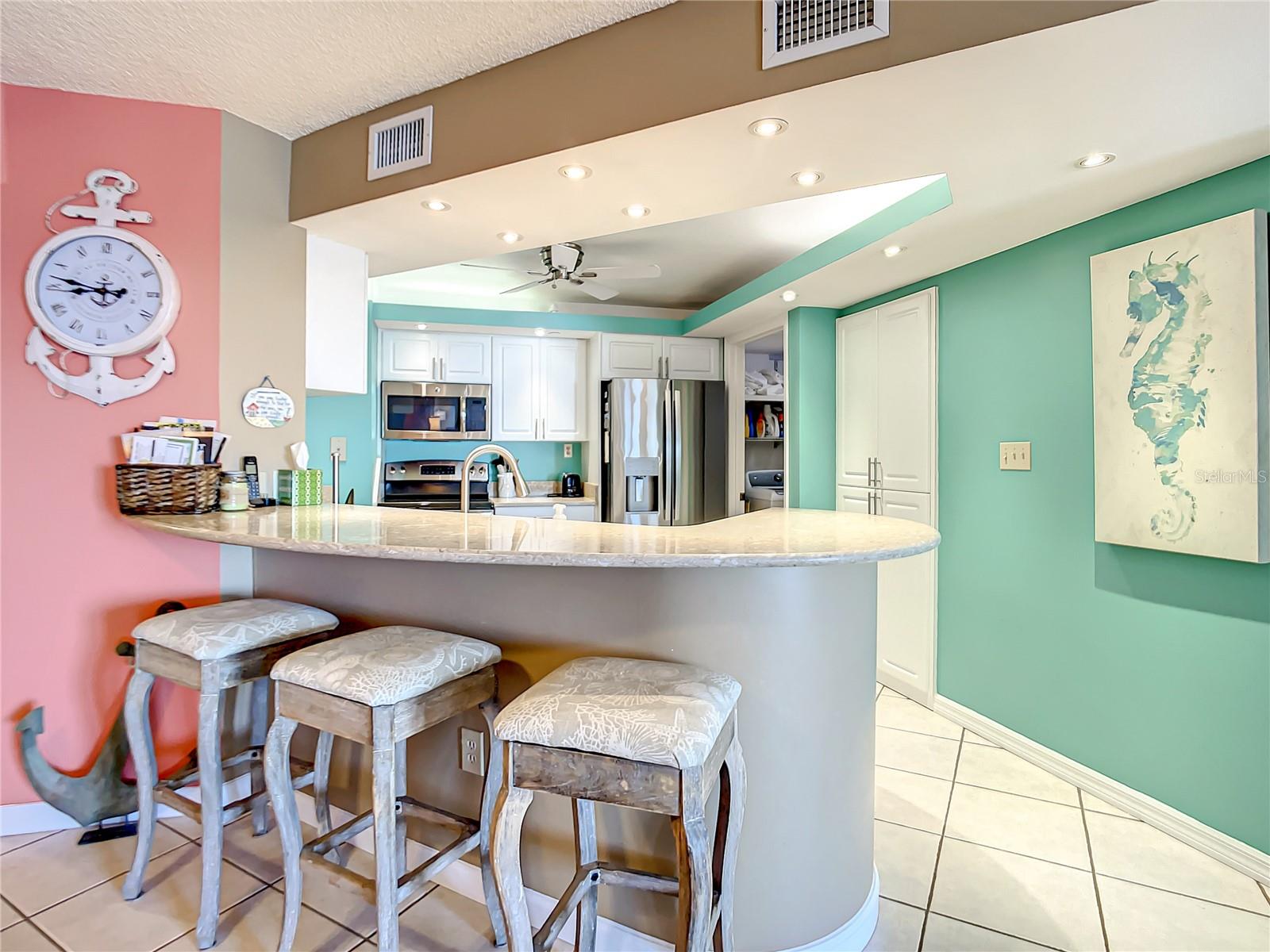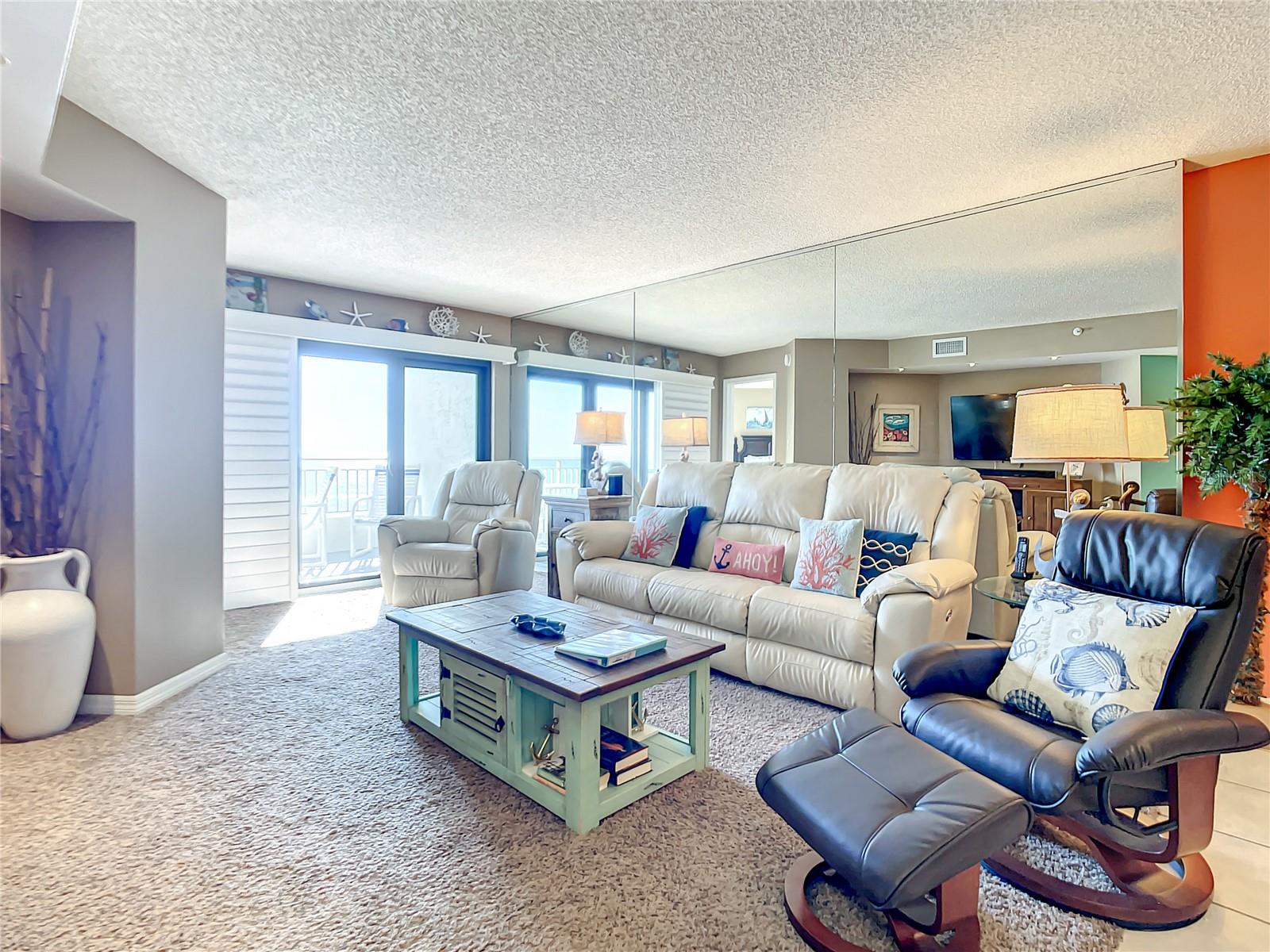 Step into your new direct ocean front beach getaway! Located on the no drive beach, this furnished 2 bedroom 2 bathroom condo at Seascape Towers is perfect for anyone looking for a full time residence or even just a weekend getaway with the ability to rent when it's not being utilized by friends and family. The first thing you notice when you walk in is how the view from the 4th floor perfectly reveals the coastline. UNBEATABLE VIEWS of the sunrise. The cabinets, sliding doors/windows, appliances, window treatments, bathrooms, etc. are updated! Seascape towers has a heated pool & hot tub, sauna, shuffleboard, 2 beach access ramps, a storage locker for owners, and underground parking. This is a turn key opportunity for you to enjoy the New Smyrna Beach way of life!