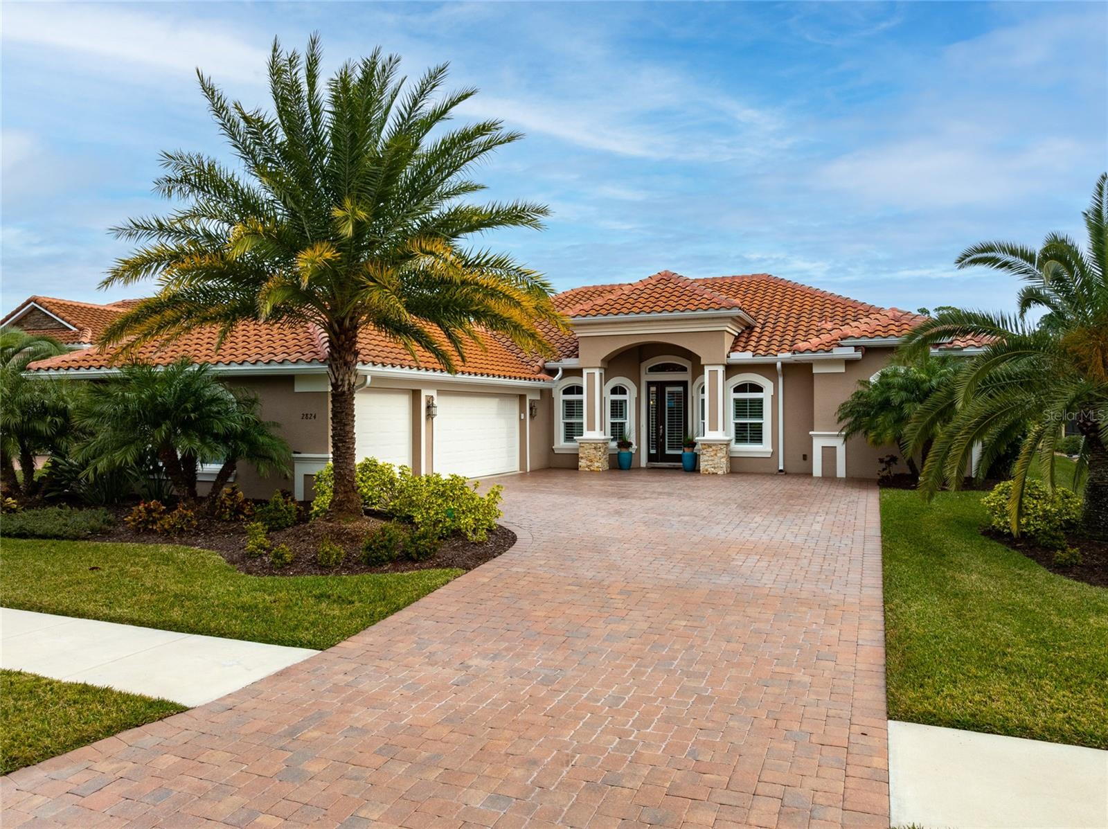 Modern elegance meets serene golf course views in this like-new residence built in 2021offering 3 spacious bedrooms, 2.5 baths a generous 2,240 square feet of living space on a 79 x 130 lot and a 3-car garage. Located in Portofino Reserve, a gated community within popular Venetian Bay. Once inside, the wide-open floor plan is accentuated by high ceilings perfect for both entertaining and everyday living. The heart of the home is the modern kitchen, featuring two islands, Quartz countertops, and convenient pull-out drawers. A pantry with shelving ensures ample storage, while Level 3 stone-tile floors add a touch of sophistication throughout. Sliding glass doors seamlessly connect the indoor and outdoor spaces, opening fully to reveal a large screened lanai, saltwater pool and hot tub, ideal for relaxation and enjoying the picturesque views of the golf course and the 11th green. Window treatments, including Plantation shutters, and ceiling fans enhance comfort and style. Experience the perfect blend of luxury and leisure at this exceptional property.