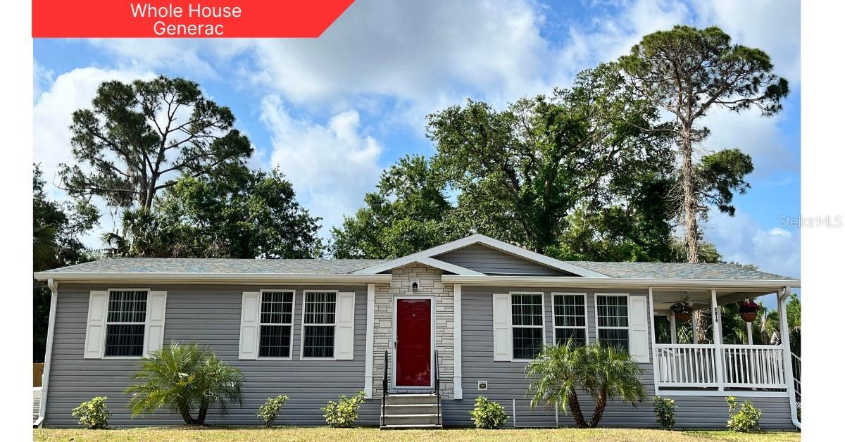 PRICE REDUCTION!!! Welcome to this pristine 3-bedroom, 2-bath MODULAR home....turnkey and ready to move in. Located on a quiet street, yet conveniently located within minutes of beaches, shops, restaurants, I-95 and SR 44. This home has only had 1 owner and has been well maintained. There is no HOA. Recent updates include a new roof with architectural shingles, new gutters, new exterior ceiling fans on the farmer porch and new interior ceiling fans in the kitchen and living room. It also has a new stove and microwave. Both bathrooms have new flooring. There is a new water heater as well. The windows are all double paned for quiet and savings on utility bills. The home also has a whole house Generac generator to provide full power during power outages. Included, also, is a ride-on lawn mower to care for the 15,000 square foot lot. There is also a 10'x12' storage shed for ample storage. Call now to make an appointment to see this beauty.