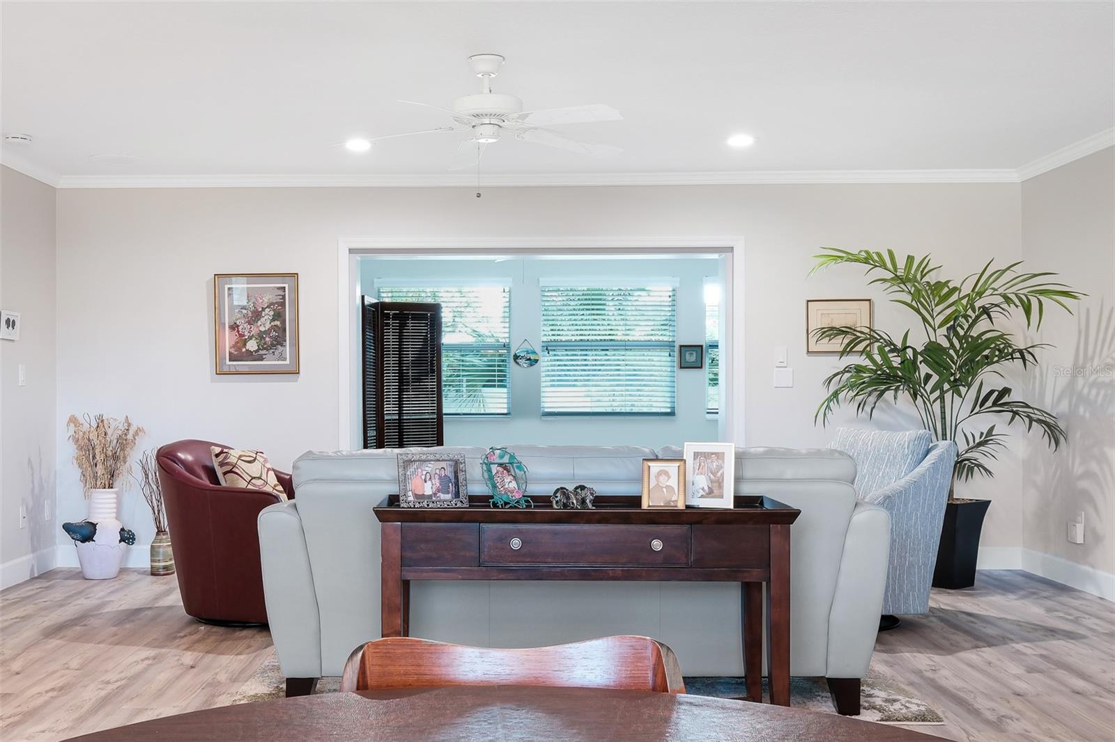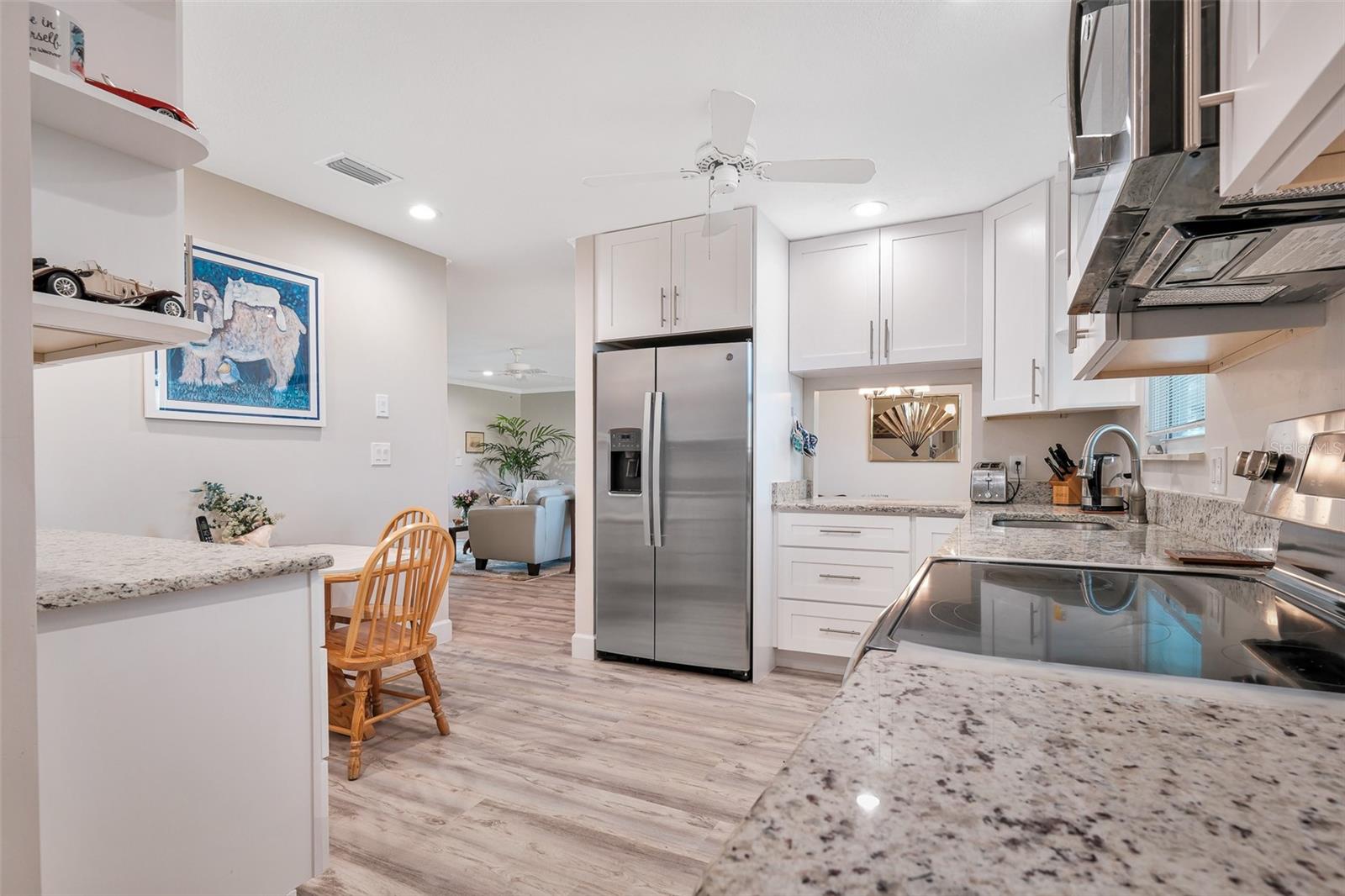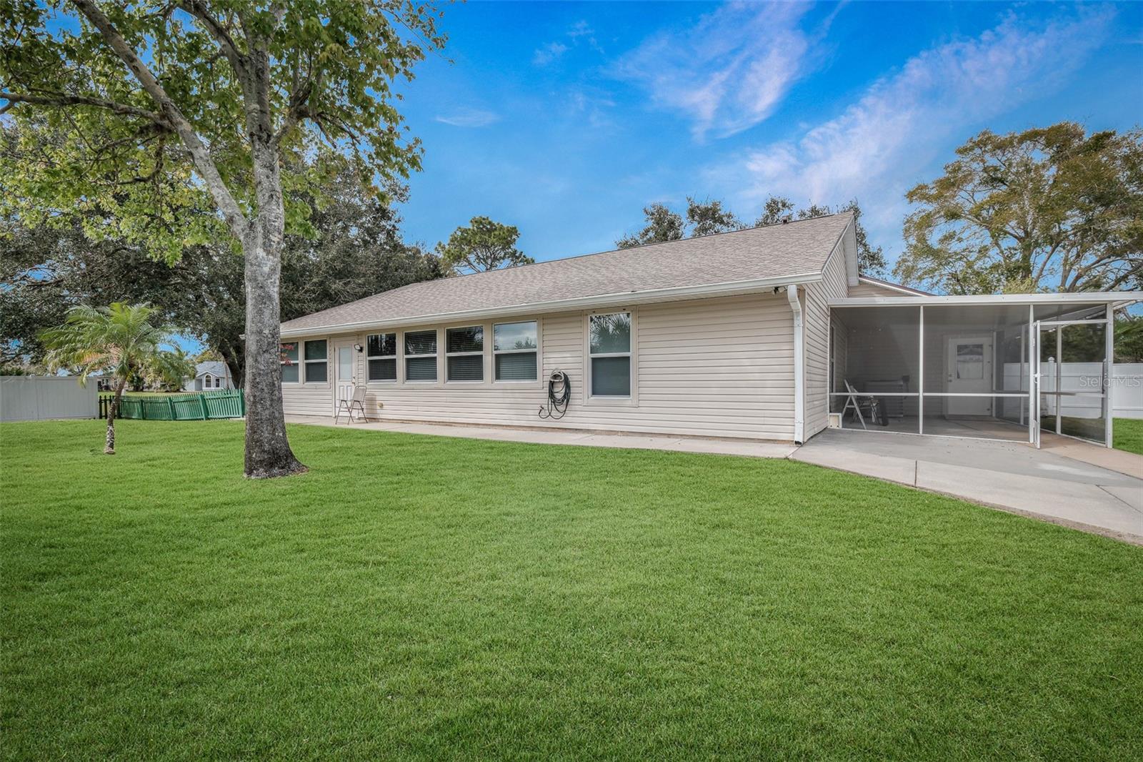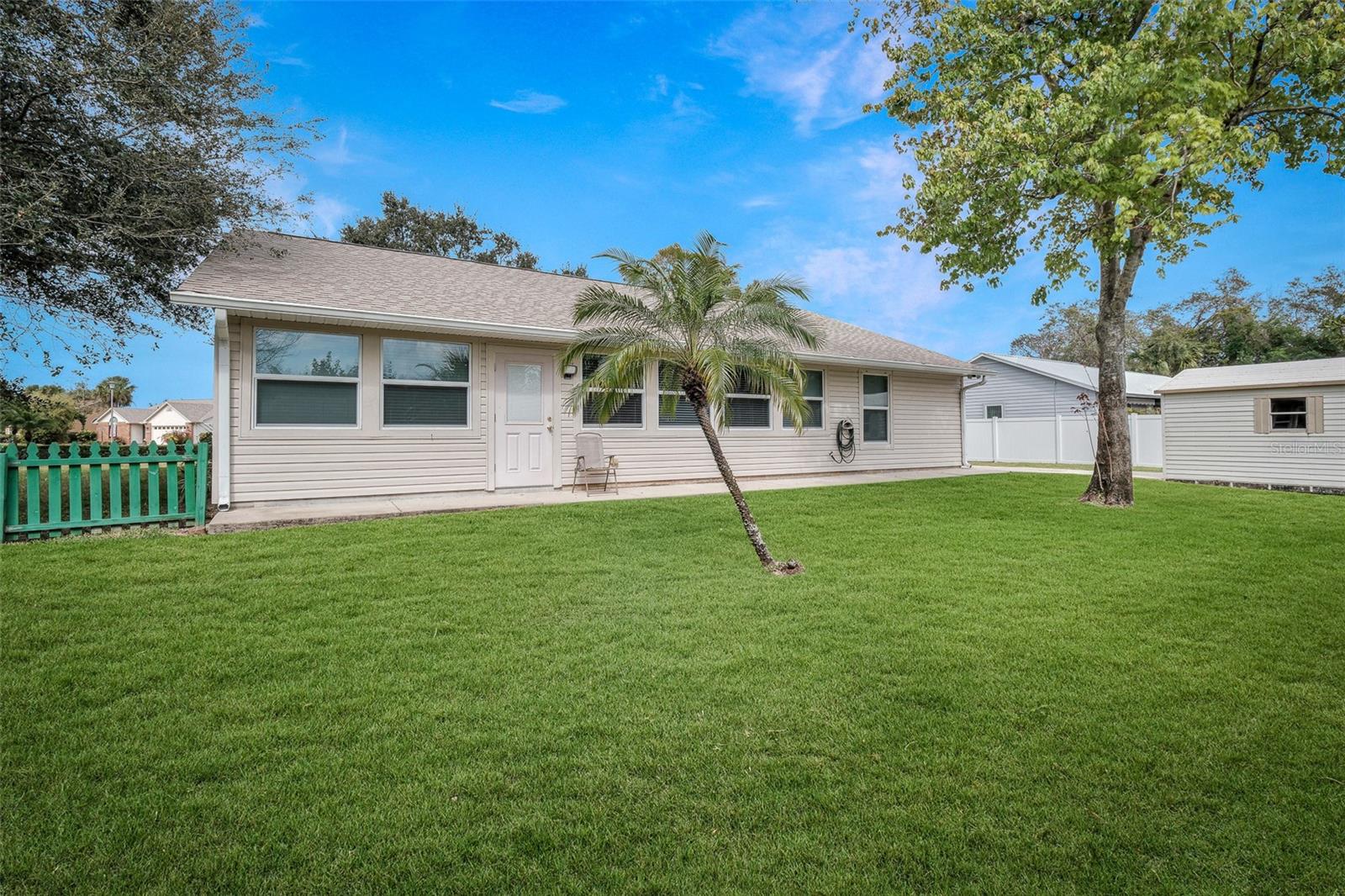 Beautifully remodeled home near the City golf course and an easy ride to downtown NSB restaurants, galleries and shops. Updates in 2023 include new LVP flooring, new cabinets and granite counters, new stainless appliances, new water heater, new roof and more. The family room has lots of windows overlooking the beautiful yard and lake and there’s cozy den space at the far corner. The laundry room is great functional space for pantry and crafts with lots of storage. There’s room in the kitchen for a small table as well as more formal dining space overlooking the tree lined front yard. Split bedroom plan affords lots of privacy. Den could be extra sleeping space when friends visit. There are double paned impact windows on all windows except the side light window at the front door. The lush yard is over a third of an acre and is irrigated with a well for the sprinkler system. Immaculate condition throughout. See to appreciate!