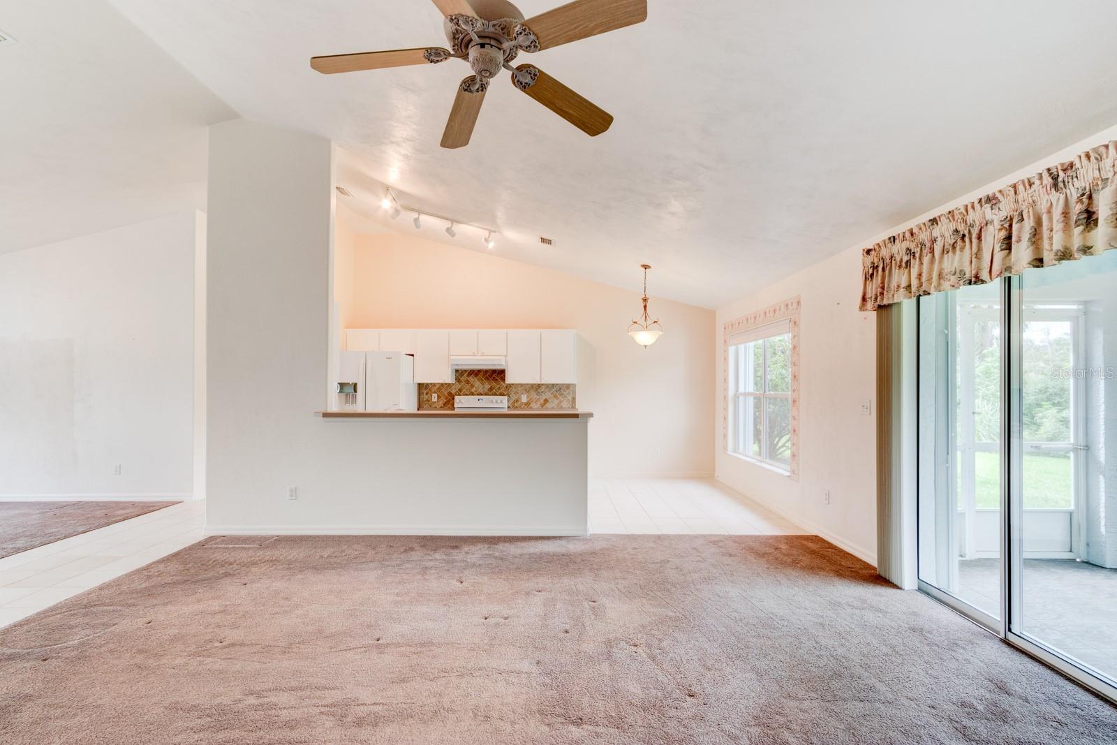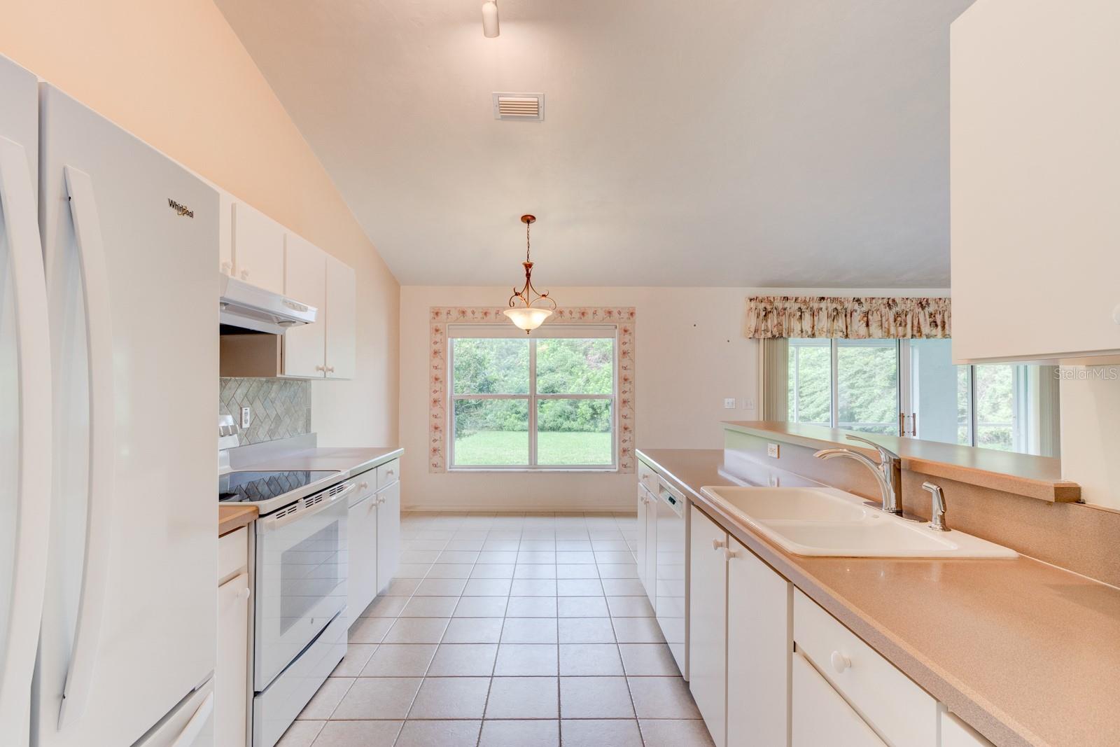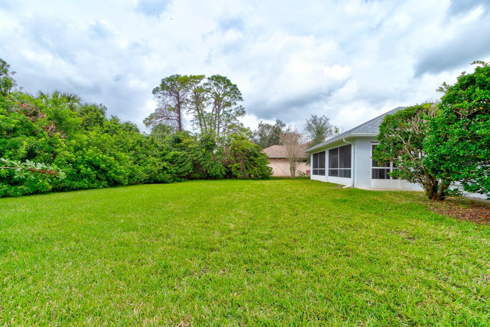 Inviting Home in the Desirable Golf Community of Turnbull Estates! This beautiful home welcomes you with an open floor plan, featuring distinct dining and living areas separated by plush carpeting. The spacious living room offers plenty of natural light and sliding glass doors that lead to a serene screened porch, ideal for relaxing. The kitchen is thoughtfully designed with a sink that overlooks the living room, paired with a convenient bar area for extra seating. A tile backsplash ties the cabinetry and countertops together perfectly, while a cozy breakfast nook offers a delightful view of the backyard—just the spot for enjoying your morning coffee. The primary bedroom is large enough for a king-sized bed and additional furnishings, complemented by a generous walk-in closet and a second smaller closet for extra storage. The ensuite bath is a retreat in itself, featuring a garden tub, a vanity with a sink, and a separate vanity to get ready for a new day. Your guests will appreciate the second bedroom, which includes sliding glass doors that lead out to the screened porch, offering a peaceful setting for their mornings. An inside laundry room with a laundry sink adds convenience, ensuring laundry chores stay comfortable, without having to go out to a hot garage. For peace of mind during storm season, the home is equipped with accordion-style hurricane shutters and a natural gas full-house generator. Golf enthusiasts will love the proximity to The Preserve at Turnbull Bay, a challenging 18-hole, 6,600-yard course that winds through a nature preserve. The golf course offers an idyllic setting, right within the Turnbull Bay Estates community.