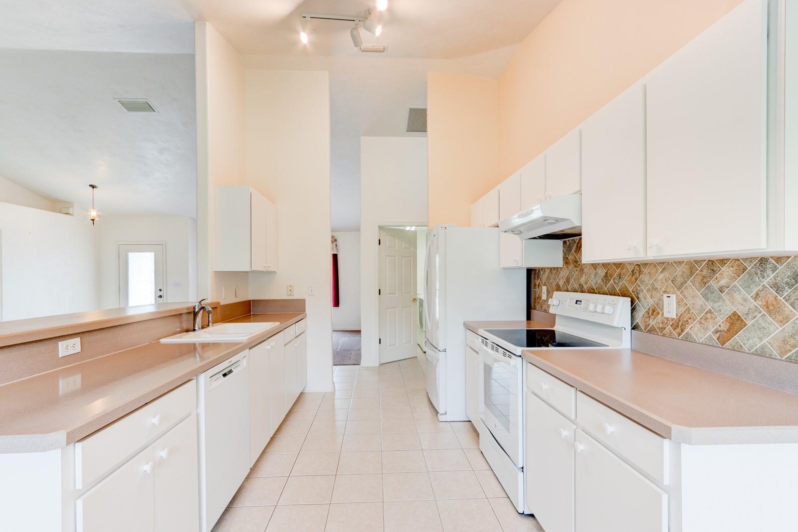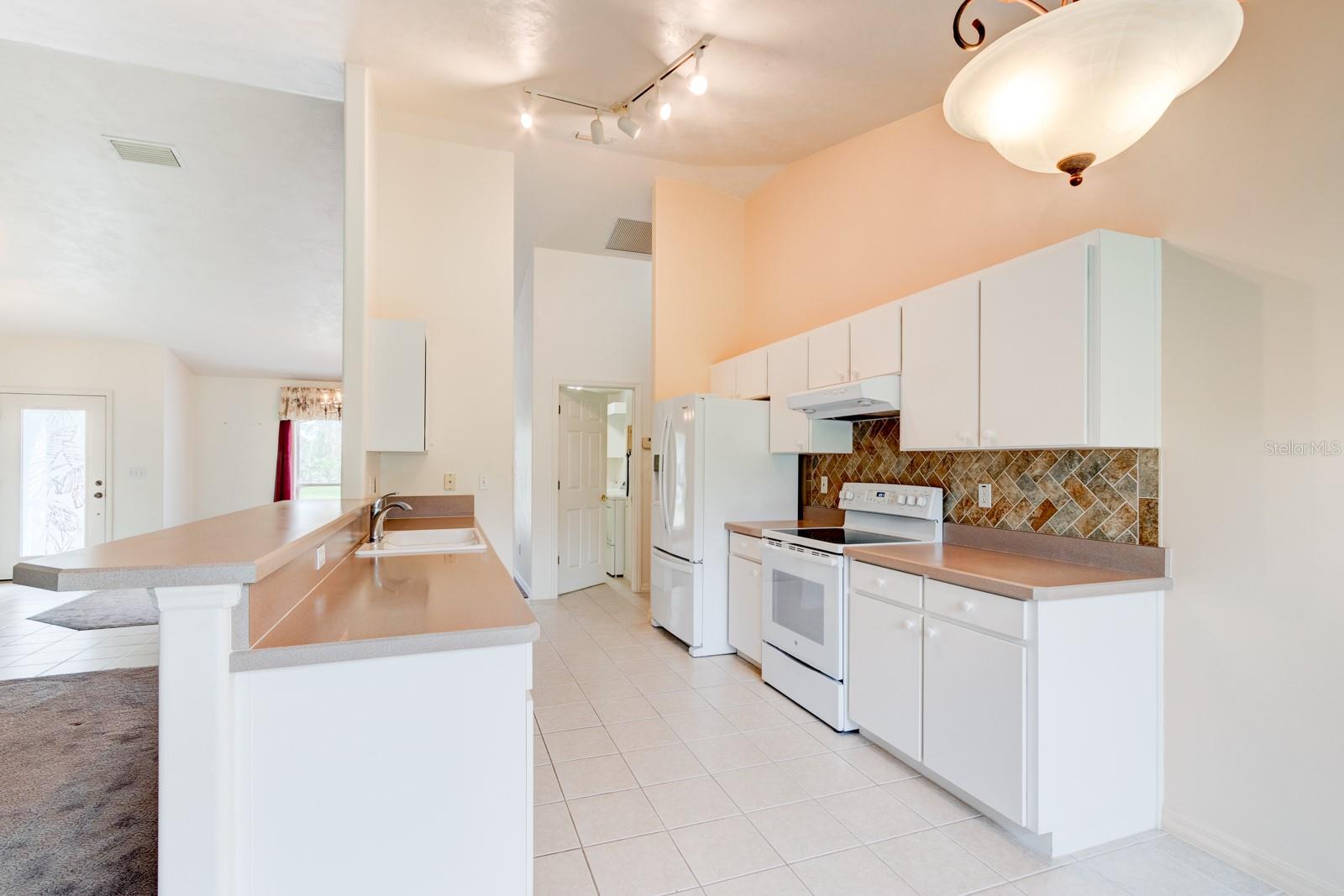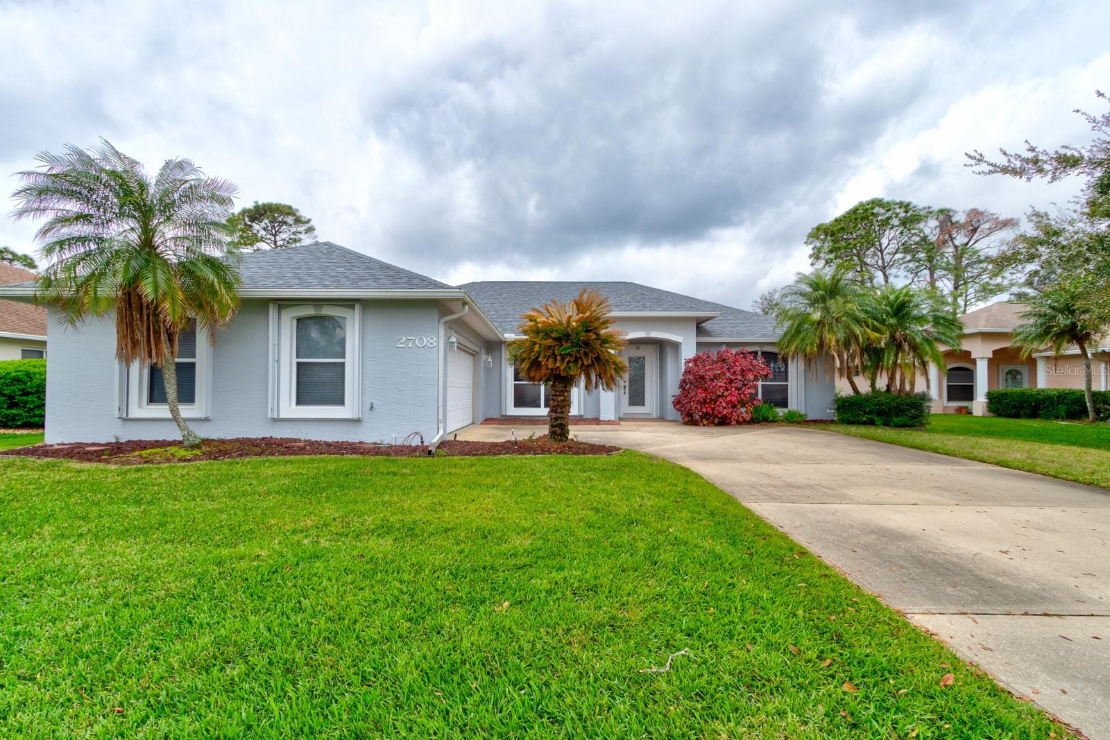 Inviting Home in the Desirable Golf Community of Turnbull Estates! This beautiful home welcomes you with an open floor plan, featuring distinct dining and living areas separated by plush carpeting. The spacious living room offers plenty of natural light and sliding glass doors that lead to a serene screened porch, ideal for relaxing. The kitchen is thoughtfully designed with a sink that overlooks the living room, paired with a convenient bar area for extra seating. A tile backsplash ties the cabinetry and countertops together perfectly, while a cozy breakfast nook offers a delightful view of the backyard—just the spot for enjoying your morning coffee. The primary bedroom is large enough for a king-sized bed and additional furnishings, complemented by a generous walk-in closet and a second smaller closet for extra storage. The ensuite bath is a retreat in itself, featuring a garden tub, a vanity with a sink, and a separate vanity to get ready for a new day. Your guests will appreciate the second bedroom, which includes sliding glass doors that lead out to the screened porch, offering a peaceful setting for their mornings. An inside laundry room with a laundry sink adds convenience, ensuring laundry chores stay comfortable, without having to go out to a hot garage. For peace of mind during storm season, the home is equipped with accordion-style hurricane shutters and a natural gas full-house generator. Golf enthusiasts will love the proximity to The Preserve at Turnbull Bay, a challenging 18-hole, 6,600-yard course that winds through a nature preserve. The golf course offers an idyllic setting, right within the Turnbull Bay Estates community.
