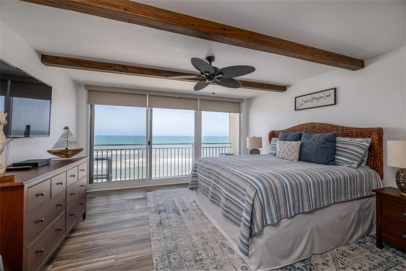 Welcome to this Coastal Living 5th-floor Corner/End Unit at The Pelican, a Direct Oceanfront 2-story Townhome offering 2 bedrooms and 2.5 baths with breathtaking, unobstructed Views of the Ocean and Beach and a very private balcony. Step inside to be greeted by Panoramic Vistas from both the Living Area and Primary Bedroom, where Spectacular Sunrises set the tone for Luxurious Coastal Living. SELLER WILL CONTRIBUTE TO A BUY DOWN ON INTEREST RATE FOR BUYER! Completely Renovated and Fully Furnished as shown, this home boasts High-End Finishes including Custom Cabinetry, Quartz Countertops, and Refinished Ceilings with Recessed Lighting. Plantation Shutters on all west-facing Windows, perfectly frame the Expansive Views. A Circuit Breaker Panel with surge suppression and Wind-Rated Impact Windows and Sliding Doors add modern convenience and Peace of Mind. Both En-Suite Bedrooms are thoughtfully positioned upstairs, ensuring Privacy and a serene Retreat from the Main Living Areas. Convenience of Washer/Dryer and TWO owner closets in the unit. ABOUT THE PELICAN, the Complex has passed ALL Milestones and is in Great Shape! In 2022, the entire complex underwent extensive renovations, including concrete restoration, balconies and railings, windows, roof, deck coatings, waterproofing, exterior paint, pool furniture, and a rebuilt seawall, offering peace of mind and lasting value. This tropical resort-style property features two oceanfront pools set among paver sun decks, ample lounge seating, two shuffleboard courts, gas grilling stations, and a private gated beach walkover. Whether you're seeking a full-time residence, a seasonal escape, or a smart investment, The Pelican offers weekly rentals, is well-managed, and pet-friendly (up to two pets, 80 lbs total). Enjoy unmatched convenience with nearby favorites like The Bakers Table, SoNapa Grille, Nautilus Fitness, salons, and Publix, plus a short ride to Flagler Avenue's bistros, wine bars, art galleries, and live music. From sunrise to rocket launches, the views from this fully furnished, move-in-ready condo are truly unforgettable. Bring your swimsuit and toothbrush...your Florida lifestyle awaits. All information contained herein deemed to be accurate but to be verified by purchaser. Be sure to check out our video tour and call your LOCAL Realtor to schedule your showing today.