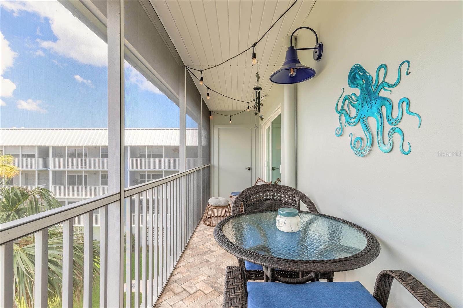 This stunning penthouse offers three primary suites, each with a full bathroom and a split-bedroom layout for privacy. One suite features breathtaking waterfront views, while another has a private entrance. Spanning 2,120 sq. ft., this residence blends modern luxury with timeless charm. Keyless entry door leading into a spacious open-concept living area. Spectacular views from living room, you can even see the Ponce inlet lighthouse. Elegant finishes include tile flooring, crown molding, plantation shutters, solid wood shaker doors, and hurricane-impact windows. The chef’s kitchen boasts Brazilian granite countertops, hickory wood backsplash, touch-activated faucet, stainless steel appliances, and a beverage center. The wood-burning fireplace includes a Dimplex electric insert, and custom built-ins add stylish storage. A tiled, screened-in terrace with market lights offers the perfect outdoor retreat. Resort-style amenities include a heated pool, BBQ grills, putting green, bocce, shuffleboard, clubhouse, gym, fishing dock, and boat slips. Located in the waterfront loop with direct Intracoastal access, this home is just minutes from Flagler Ave., the beach, restaurants, shops, and entertainment. A short drive to Daytona, Kennedy Space Center, Disney, golf, and airports, this penthouse is a rare find for luxury coastal living. All information is intended to be accurate, however not guaranteed.
