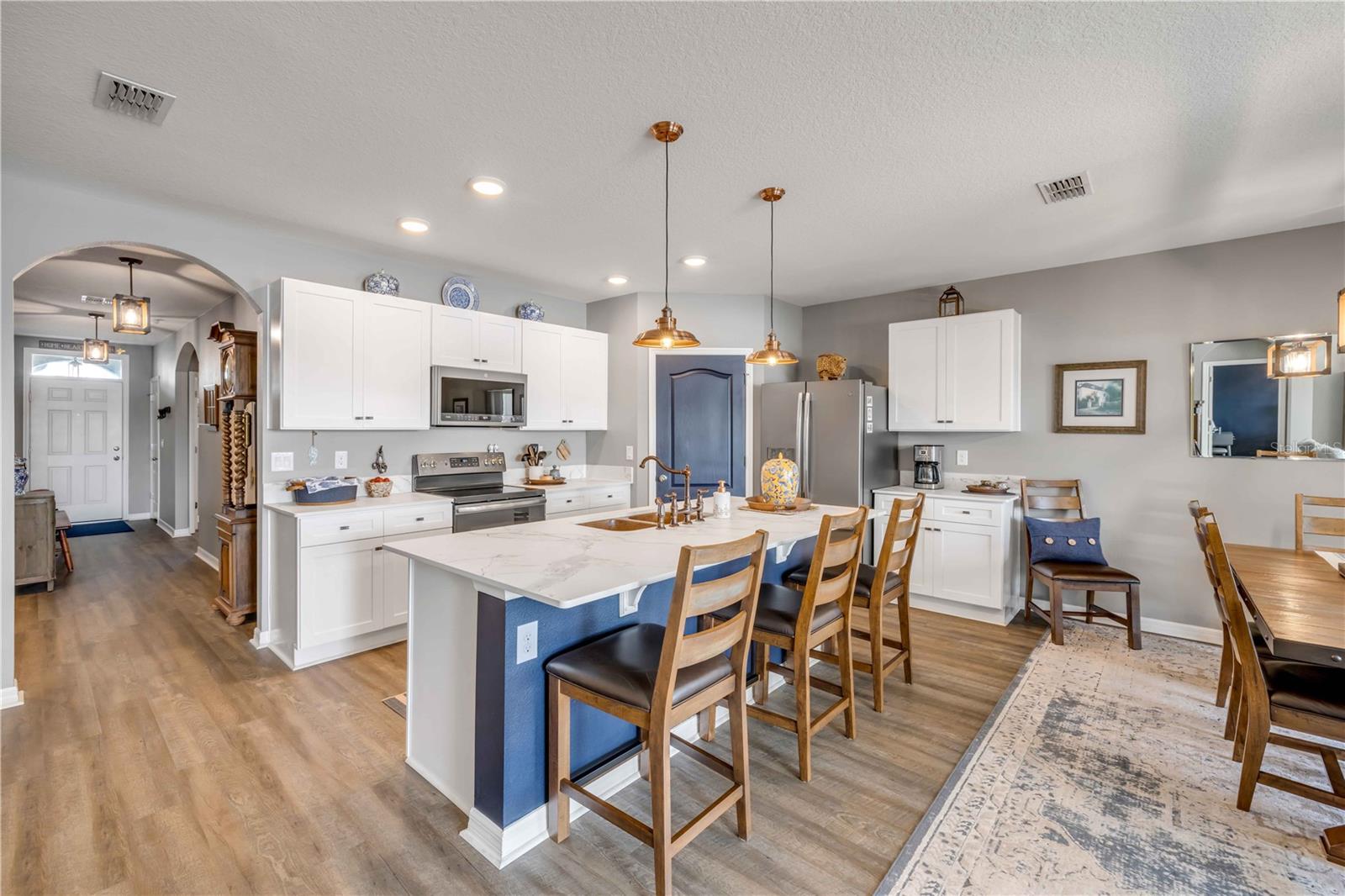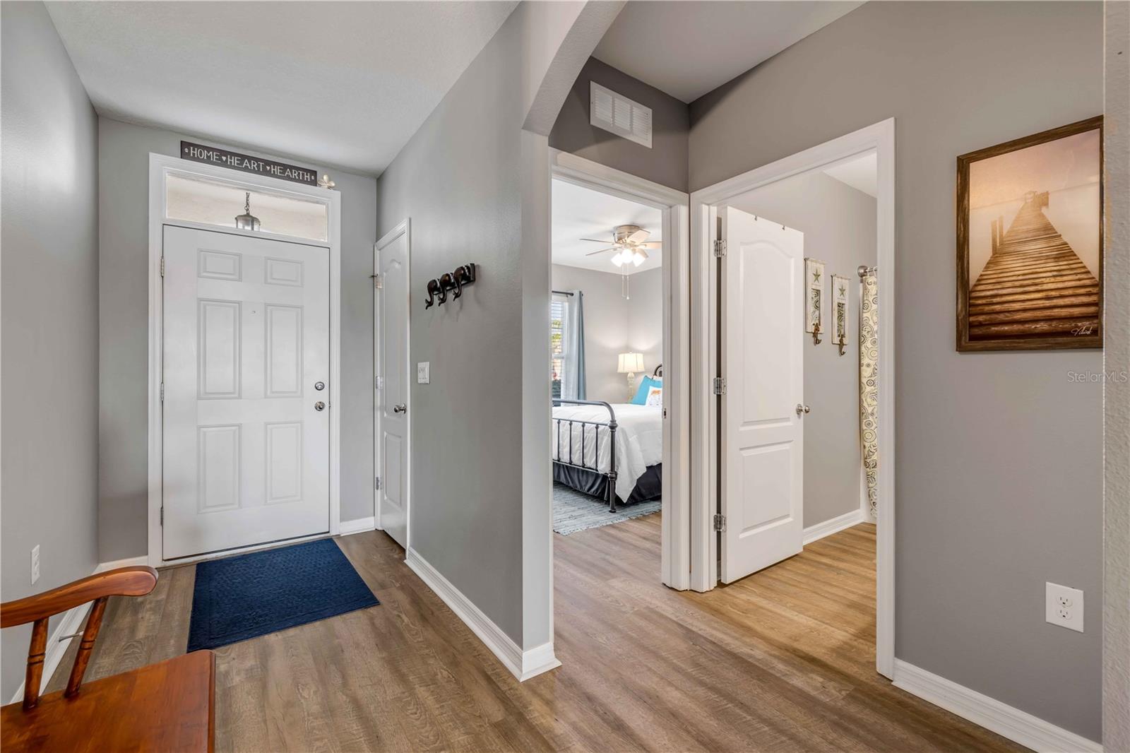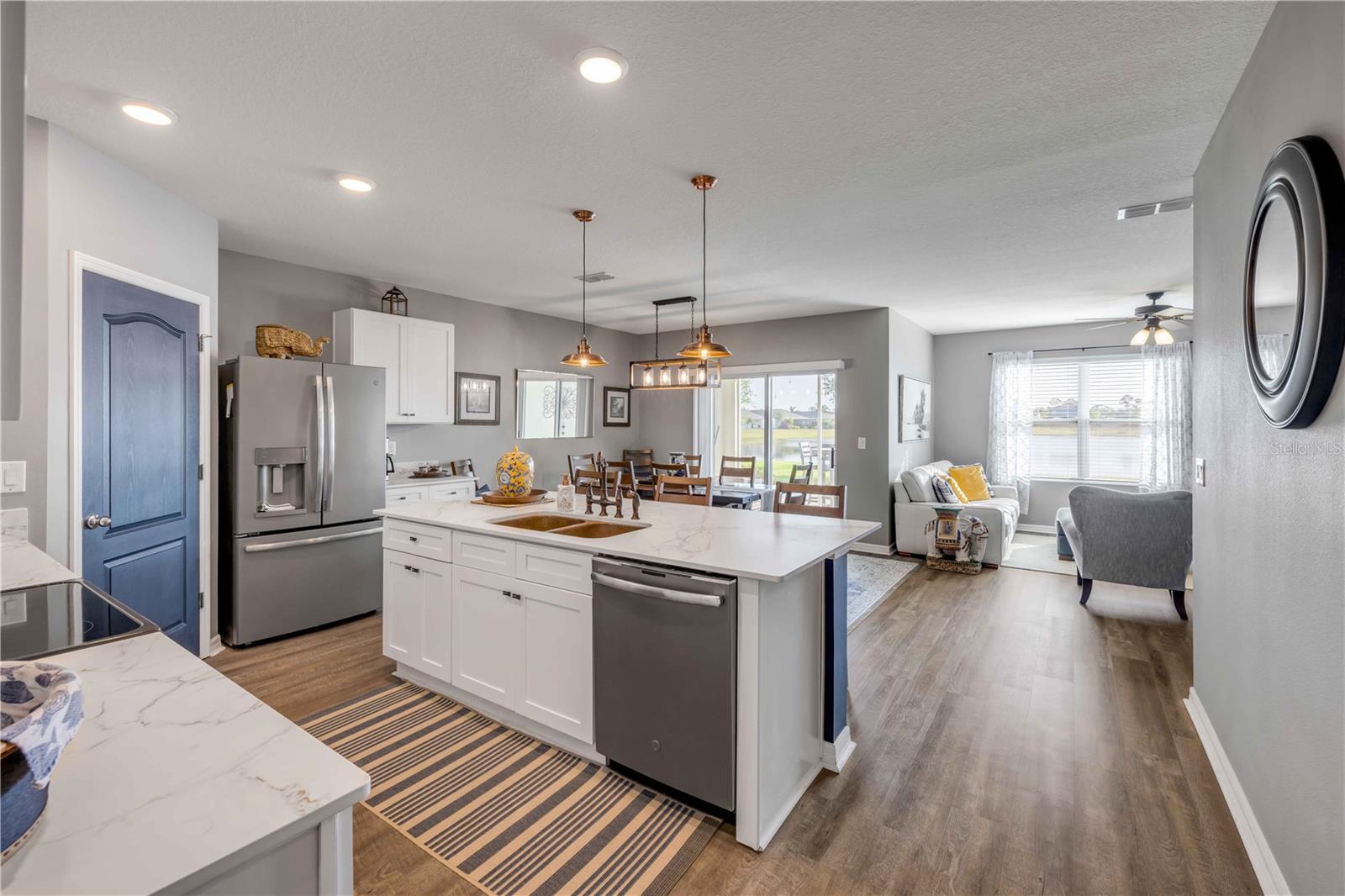 Welcome to your beautifully upgraded beach home! Relax and take a breath. Before you even enter your home, you will be greeted by a lovely yard with upgraded landscaping. You will continue to be impressed as you walk through your home, appreciate the upgrades and relax on your covered, screen-enclosed, back patio with a water view! Your future home features 4 bedrooms, 2 baths and an open floorplan with plentiful natural lighting. The kitchen features a large island, spacious corner pantry, and Dekton countertops. The primary bedroom includes an en-suite bath and a walk-in closet. This backyard oasis includes added brick pavers and an upgraded landscape selection. The yard is irrigated in the front, sides and back. This home was built by DR Horton in 2018. Coastal Woods has sidewalks throughout, a community pool, 2 Pickle Ball Courts, Two Tot Lots and a field. Only a short drive to the famous New Smyrna Beach with both Drive-on and no-drive beaches! Enjoy a combination of tourist and small-town entertainment. NSB hosts farmers markets, parades, holiday and art celebrations, car shows and live entertainment. Flagler Ave. and Canal Street have a variety of Restaurants and shopping. Venetian Bay’s public Golf Course is nearby and popular. Call today to schedule your showing.
