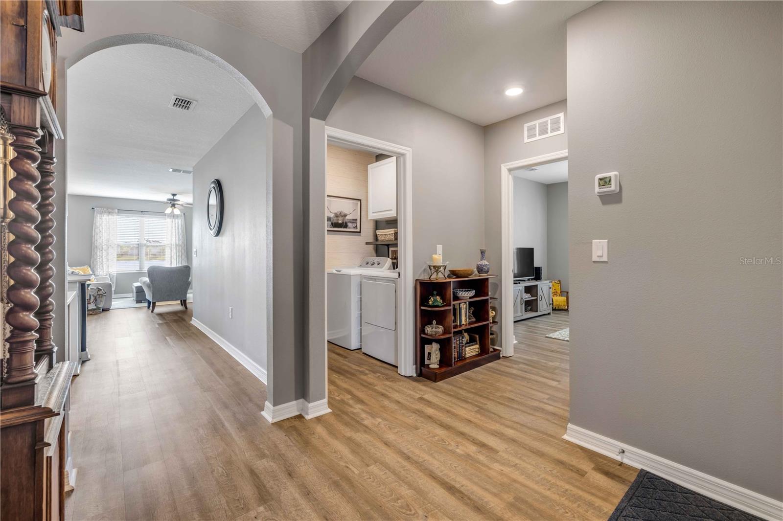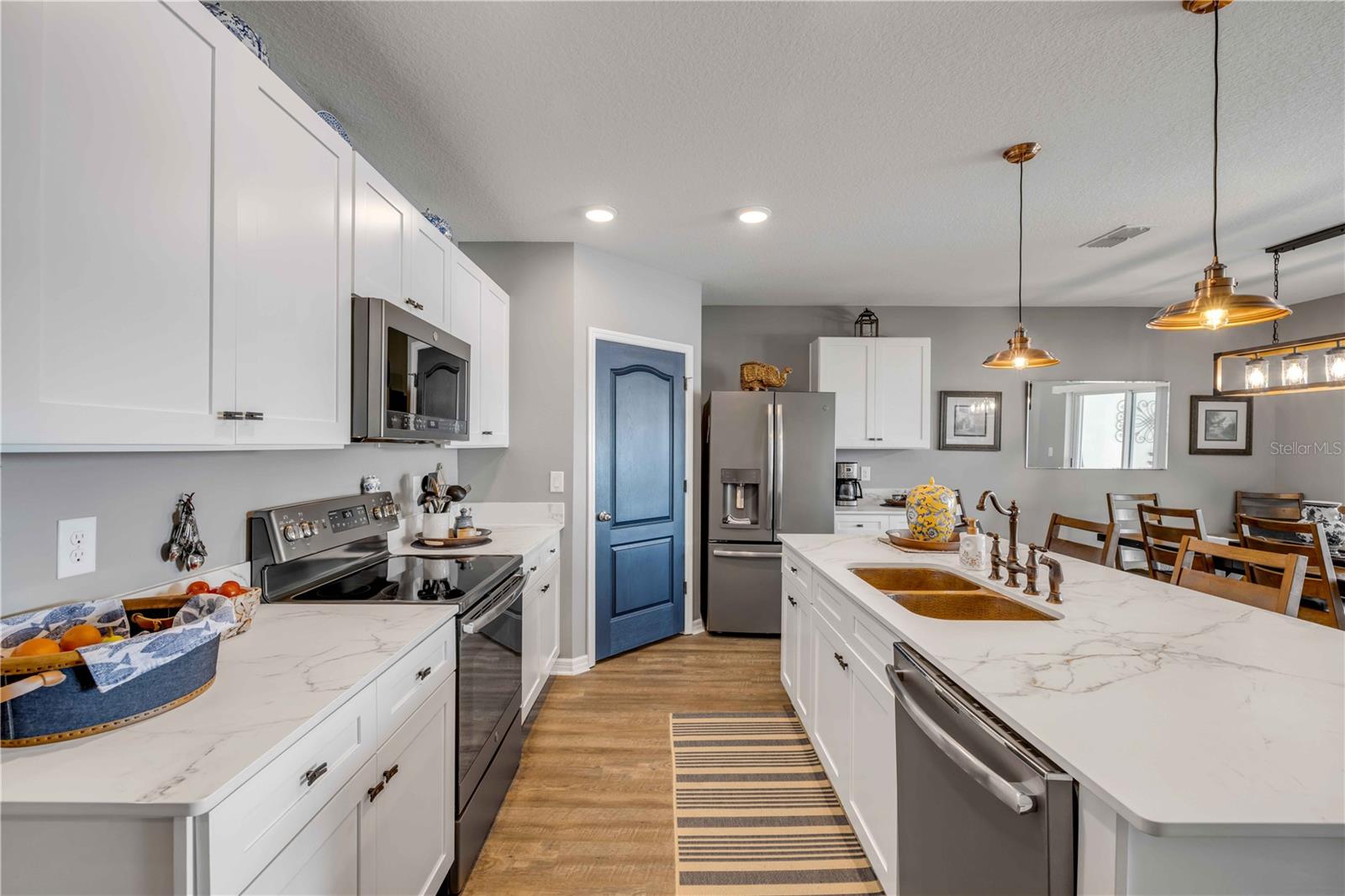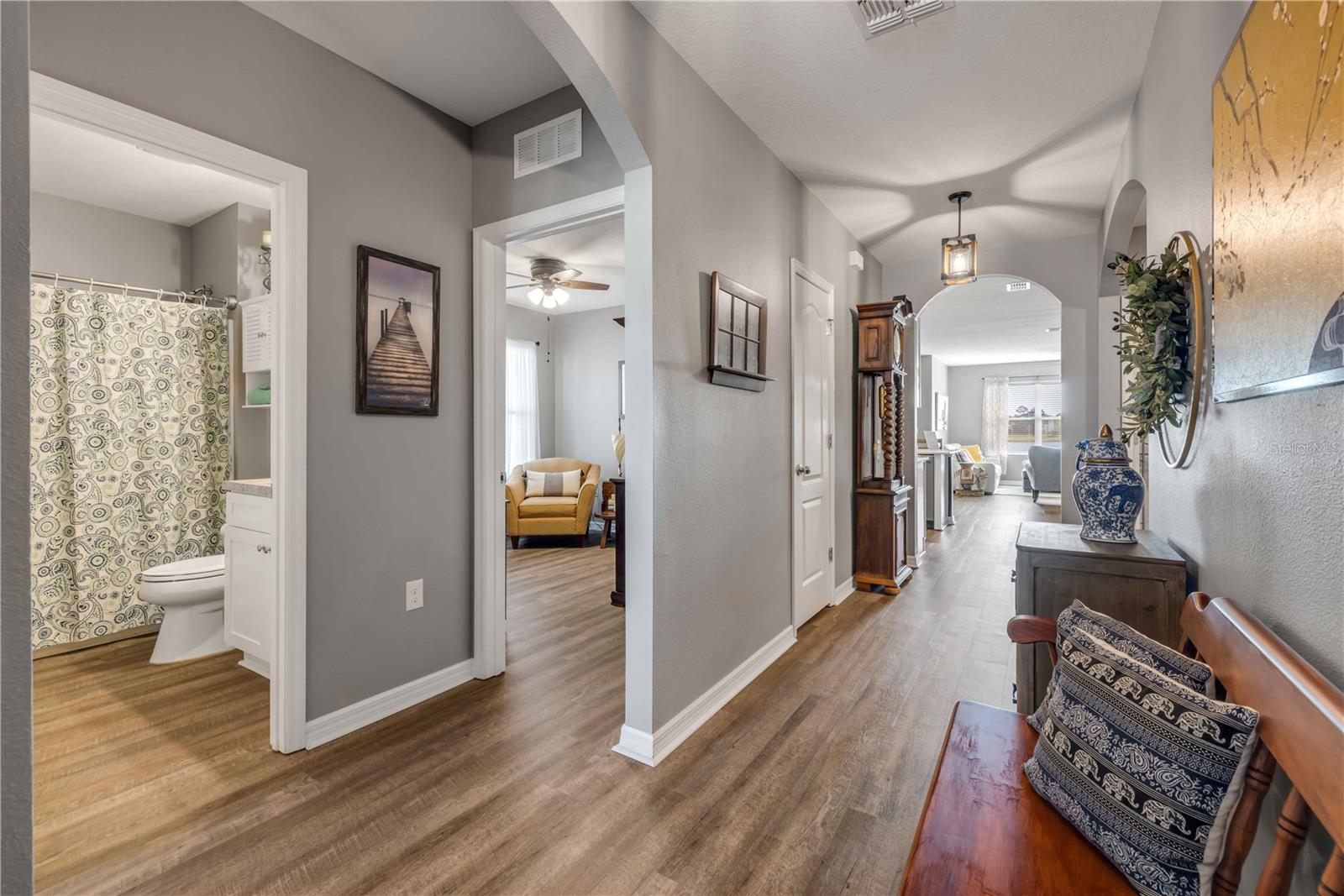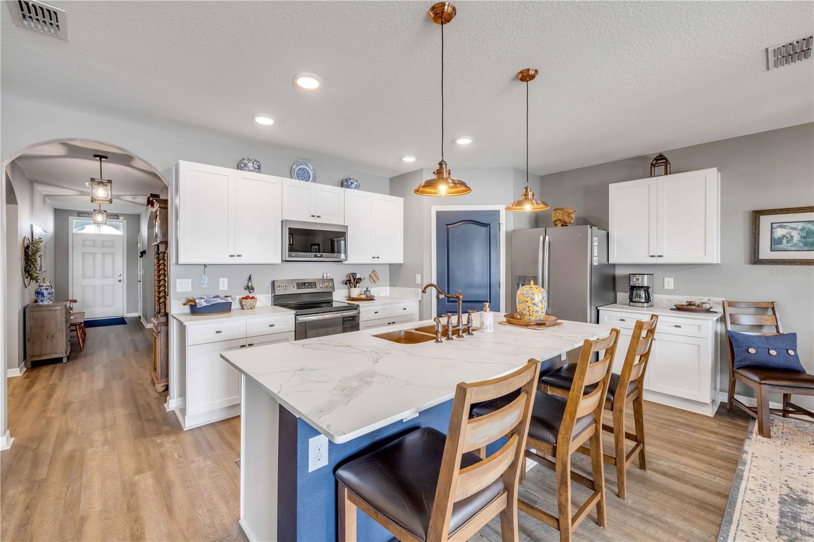 Welcome to your beautifully upgraded beach home! Relax and take a breath. Before you even enter your home, you will be greeted by a lovely yard with upgraded landscaping. You will continue to be impressed as you walk through your home, appreciate the upgrades and relax on your covered, screen-enclosed, back patio with a water view! Your future home features 4 bedrooms, 2 baths and an open floorplan with plentiful natural lighting. The kitchen features a large island, spacious corner pantry, and Dekton countertops. The primary bedroom includes an en-suite bath and a walk-in closet. This backyard oasis includes added brick pavers and an upgraded landscape selection. The yard is irrigated in the front, sides and back. This home was built by DR Horton in 2018. Coastal Woods has sidewalks throughout, a community pool, 2 Pickle Ball Courts, Two Tot Lots and a field. Only a short drive to the famous New Smyrna Beach with both Drive-on and no-drive beaches! Enjoy a combination of tourist and small-town entertainment. NSB hosts farmers markets, parades, holiday and art celebrations, car shows and live entertainment. Flagler Ave. and Canal Street have a variety of Restaurants and shopping. Venetian Bay’s public Golf Course is nearby and popular. Call today to schedule your showing.
