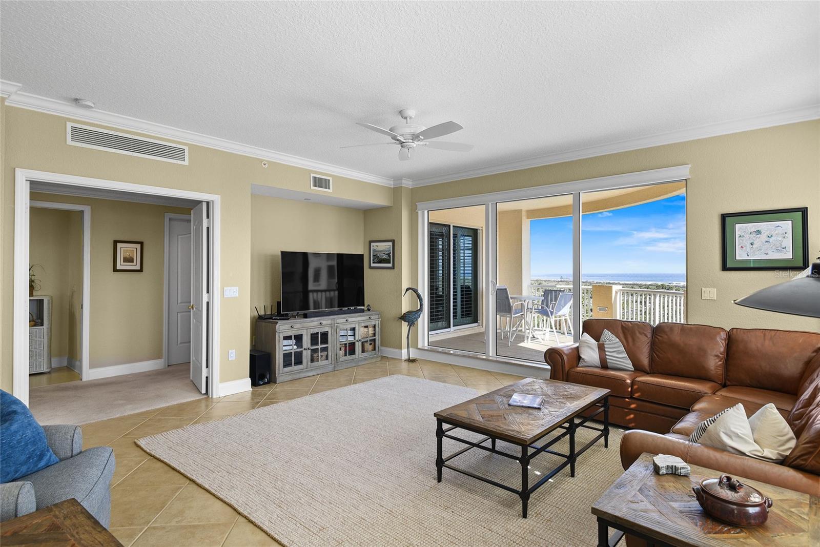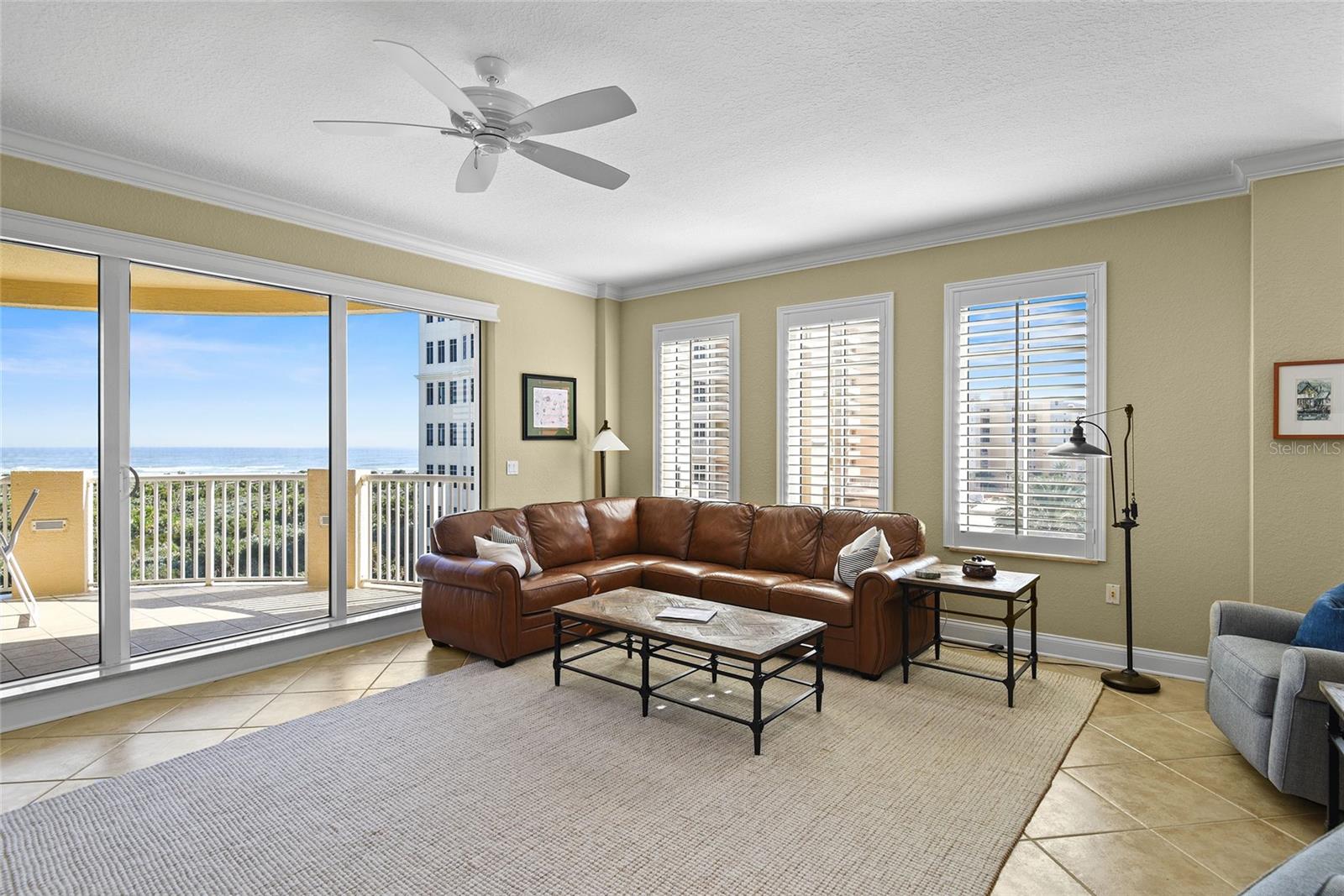 Impeccable 6th Floor Corner Unit with Stunning Ocean Views in the highly sought after Karpathos building of Minorca. Welcome to luxury living in this bright and spacious 6th-floor corner unit, offering breathtaking panoramic views of the Atlantic Ocean, the beach, and Ponce Inlet. This residence provides a serene coastal atmosphere with direct beach access, a private pool, and top-tier amenities. Step inside to an open and airy living space, where floor-to-ceiling sliding glass doors flood the interior with natural light and seamlessly blend indoor and outdoor living. Two oversized balconies offer the perfect setting to enjoy morning coffee with an ocean breeze or an evening sunset overlooking the coastline. The gourmet kitchen is designed for both style and function, featuring stainless steel appliances, granite countertops, and direct access to one of the balconies. The open-concept living and dining area is ideal for entertaining, with plantation shutters, crown molding, and elegant tile flooring adding to the refined ambiance. This expansive unit features four bedrooms and three full bathrooms. The primary suite is a true retreat, boasting private balcony access, a spa-like en suite bathroom with dual sinks, a soaking tub, a large walk-in shower, and a generous walk-in closet. Two guest bedrooms each have their own en suite bathrooms, ensuring comfort and privacy for family or visitors. The fourth bedroom offers versatility as a guest room, office, or den, while one of the guest bedrooms also enjoys direct balcony access. Additional features include an assigned underground parking space with ample guest parking, as well as a private storage room for beach gear and recreational items. Residents have access to a private pool, a fitness center, tennis courts, and direct beach access, making this home a rare and desirable opportunity to enjoy the best of coastal living.