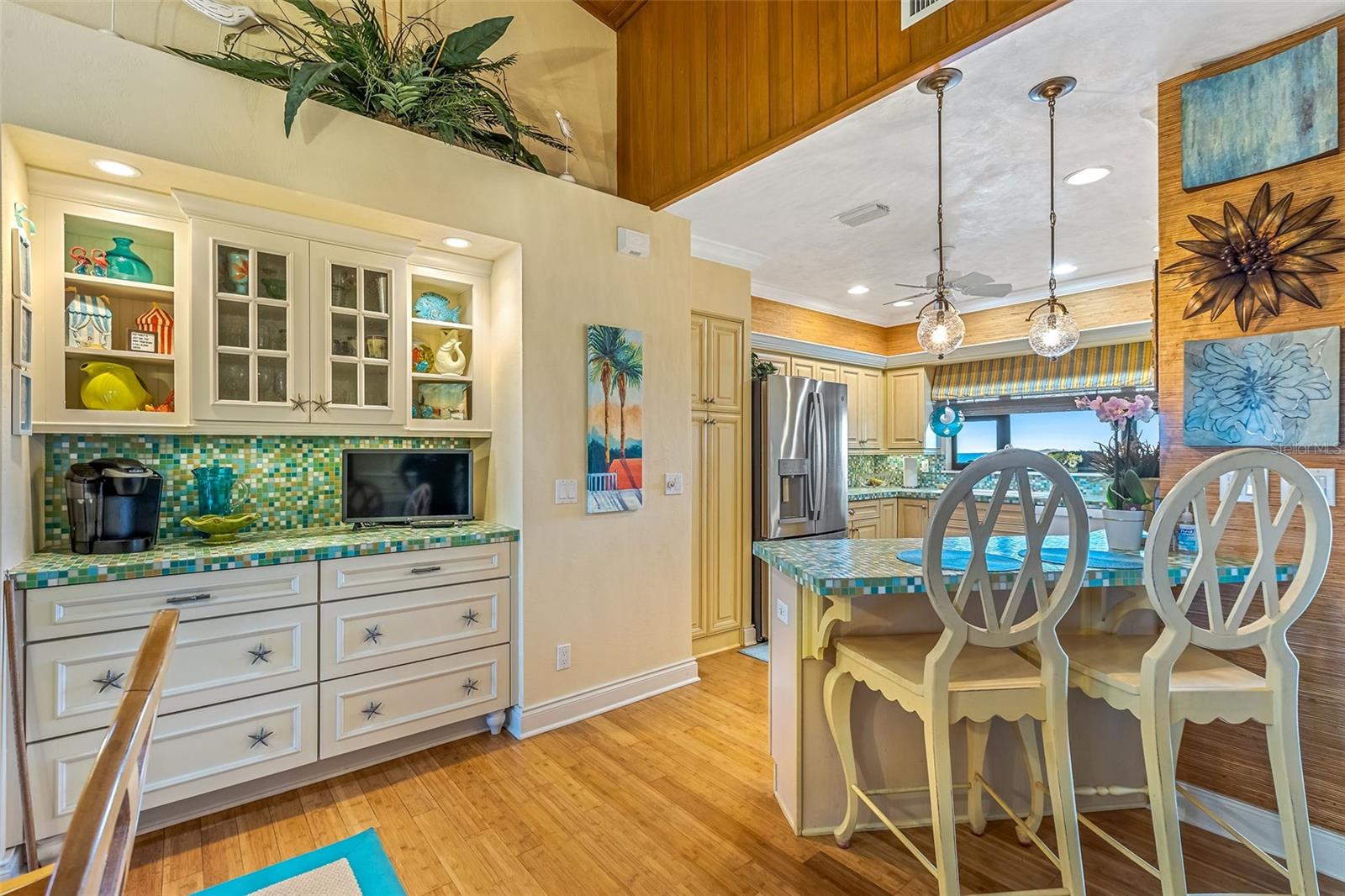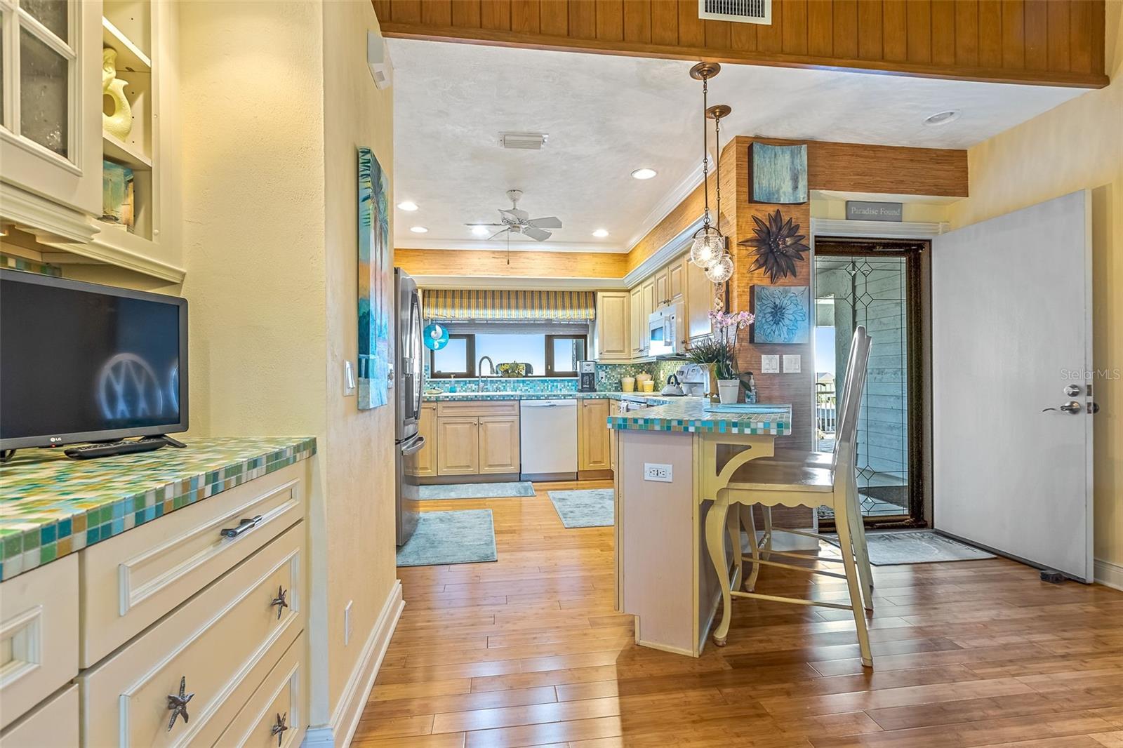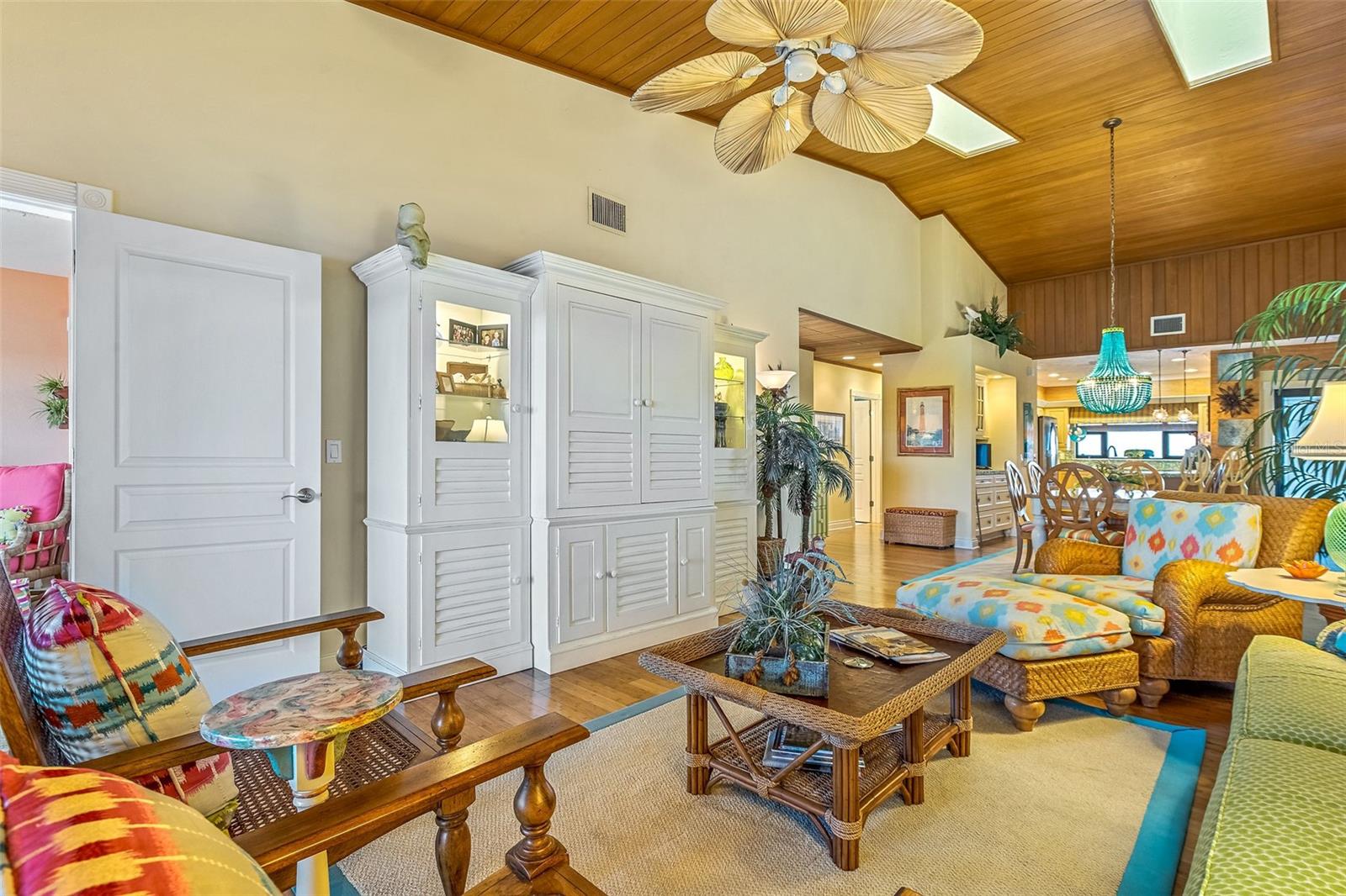 Stunning Riverfront Condo – Fully Furnished, Move-In Ready! This beautifully appointed condo offers serene river views and a wealth of custom features, perfect for those seeking both luxury and convenience. Ideally located with easy access to the No-Drive beach, it also includes a fully deeded garage. This condo combines comfort, style, and an unbeatable location, making it the perfect place to call home. This property is truly a rare find. Fully furnished with professional décor, spacious split plan offering privacy with a large, open concept living area, high ceilings & tray ceilings enhance the living areas and bedroom with elevated charm, Bamboo and tile Flooring adds elegant, durable, and easy to maintain flooring in the living areas and carpeting in the bedrooms offering added warmth and comfort. Updated bath & shower featuring modern finishes and stylish details. Screened porch with ceiling fan offering stunning river views, ideal for outdoor relaxation and sunset views. French doors lead to den/office area off owner's suite, which brings in the brightness of the outdoors and more sunset views. Something extra special is that this condo has attic access which provides a lot of extra storage space. Second Bedroom is very spacious with has amazing views of the ocean. Newer doors to patio for added energy efficiency and ease of access. Indirect lighting in kitchen adding a subtle, ambient lighting that adds a modern touch, Butler's pantry for extra storage and prep space for the kitchen, custom cabinetry thoughtfully designed for both style and function, includes two corner lazy Susan for easy access and storage. Custom ceiling finishes adds elegance and character to every room. Financially sound & well-managed HOA ensures peace of mind and well-maintained common areas. Club amenities include large pool, club house, kayak storage, private boat docks, dry boat storage and private concrete boat launch ramp. River front boardwalk. Short walk to no drive beach, approx. 500 feet. One mile to the Canaveral National Seashore. Located right in the middle of the Florida's finest natural recreational areas, you can enjoy boating, fishing, clamming, oystering, crabbing and shrimping. Enjoy the best of both worlds, ocean and river. Limit for a boat is 22'.