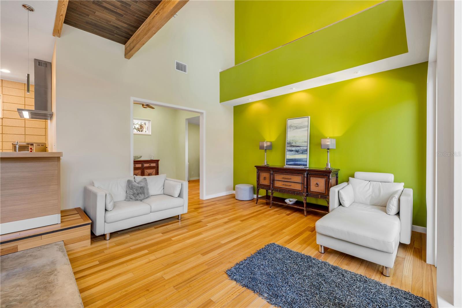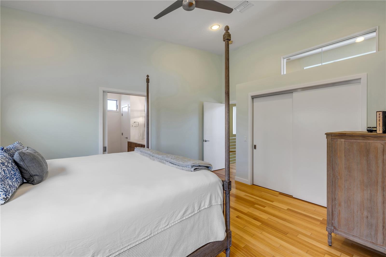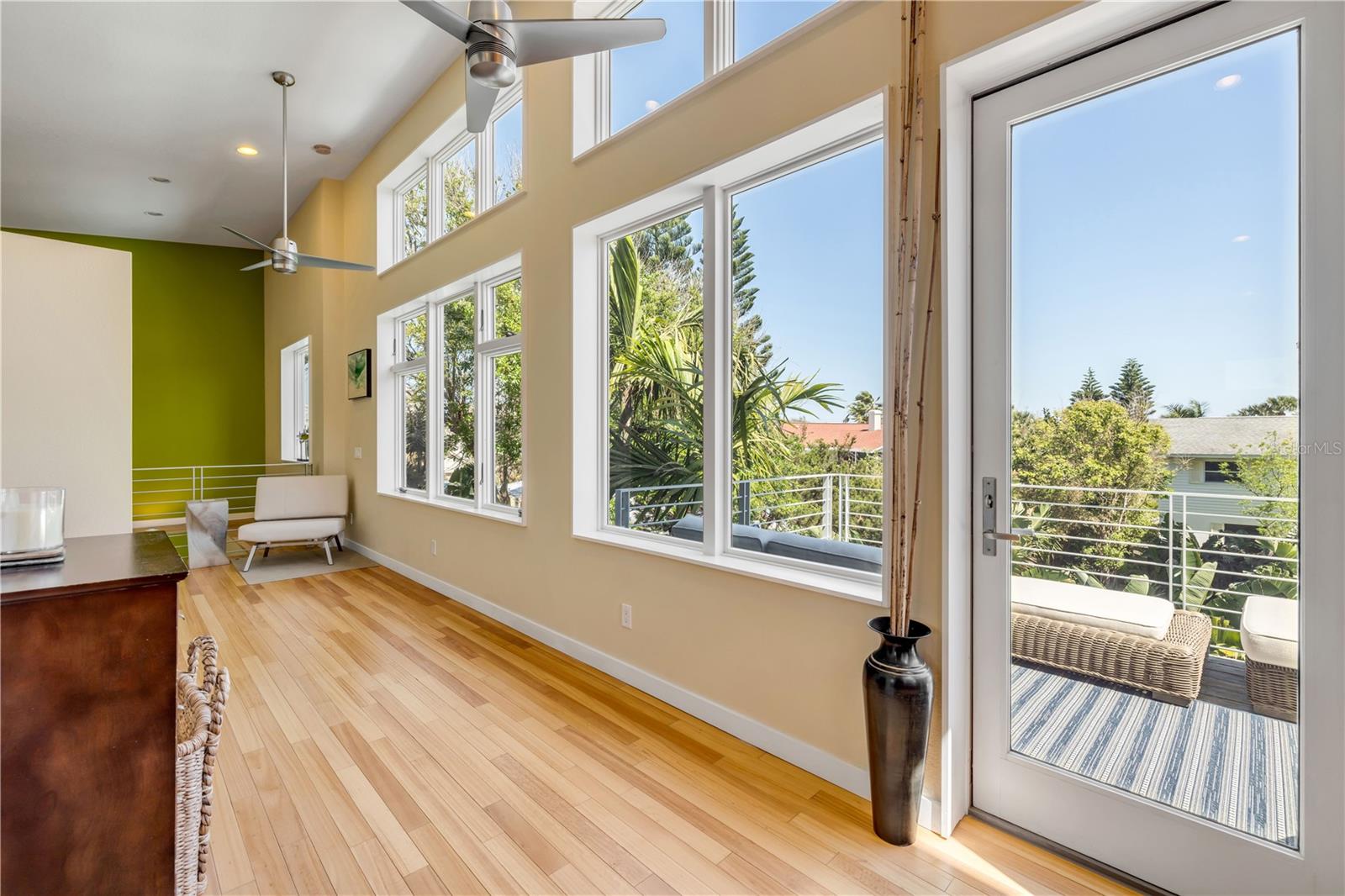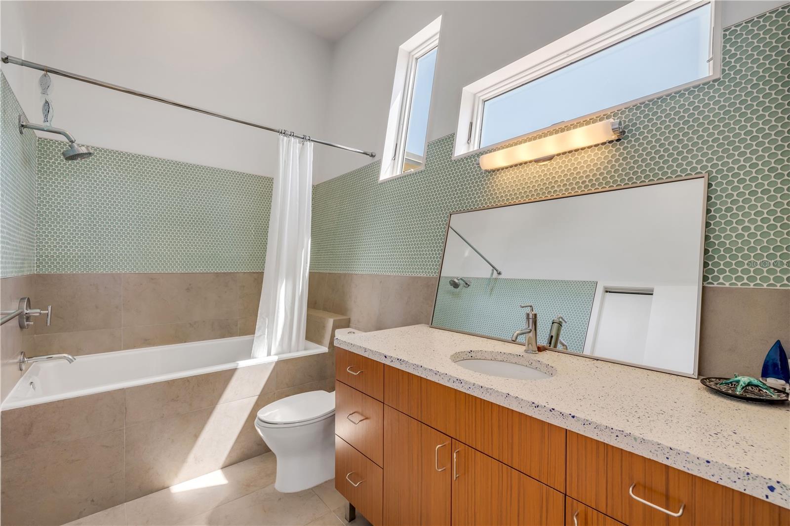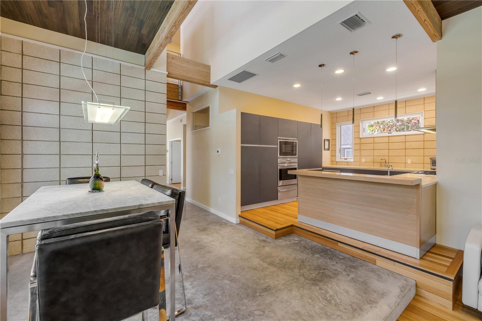 North Beach gated 3Br, 3 Ba contemporary pool home. Nestled between the Intracoastal Waterway and New Smyrna’s Beach this home exudes curb appeal and is just steps to the beach and dune walk-over. Once through the gated driveway, lush tropical landscaping welcomes you. This custom home features polished concrete and Eucalyptus wood floors, and 25’ ceilings. The first floor bedroom is accessed through double doors in the foyer and adjacent to the bedroom you will find a full bathroom with floor to ceiling decorative tile. The gourmet kitchen features Italian Valcucine cabinets, stainless steel Wolf and Miele appliances, quartz countertops, two sinks and a spacious walk-in pantry. The dining room features exposed concrete block walls with views out to the pool. The grand living space adjoins the pool and the Media room. The second floor walk-ways overlook the main floor leading to a luxurious primary suite with both walk-in and built-in closets. Primary bathroom offers dual sinks, dual shower heads and quartz countertops. Bedroom 2 with en-suite, features glass countertops and a polished concrete tub. The 2nd floor laundry room with deep stainless steel utility tub is conveniently located. Two-story garage/guest house has additional bonus space suitable for workshop, mother-in-law suite or additional living space. A 40’ lap pool, covered patio, fire pit and outdoor shower enhance outdoor living. This home has newer Pac-Clad Roof and siding, whole house Generac natural gas generator, two yr 2022 A/C units & tankless hot water heater, Anderson hurricane rated windows, and Ring brand security cameras. Beach Access, Smyrna Dunes Park with dog beach and fishing pier are minutes away. Flagler Avenue’s shops, restaurants and entertainment are 1.5 miles away, a leisurely bike ride. No flood insurance required.