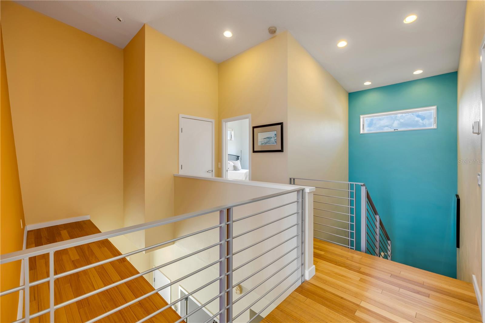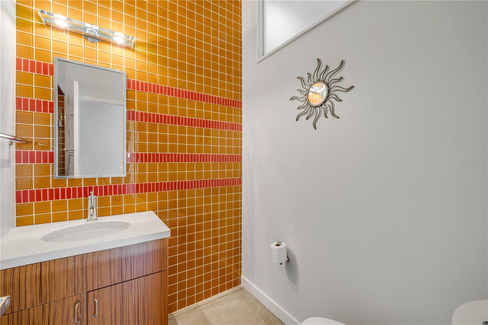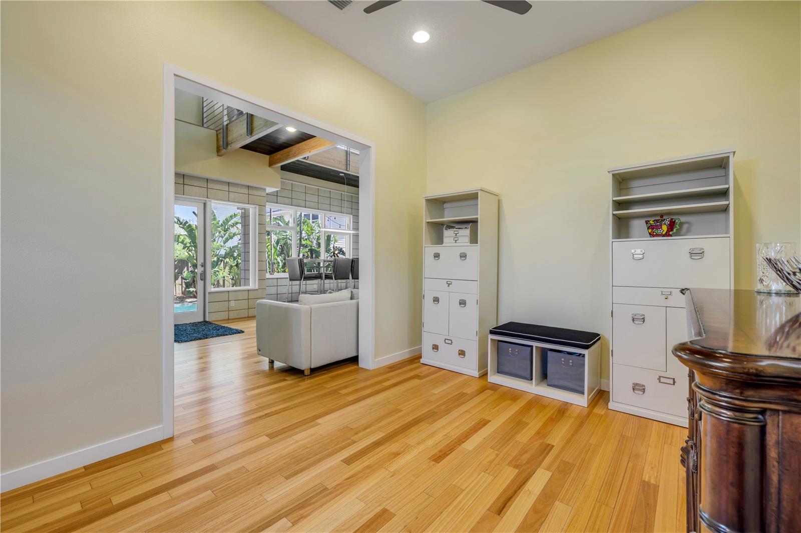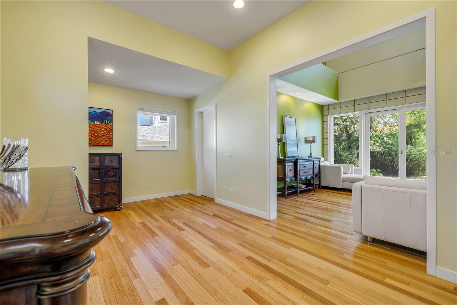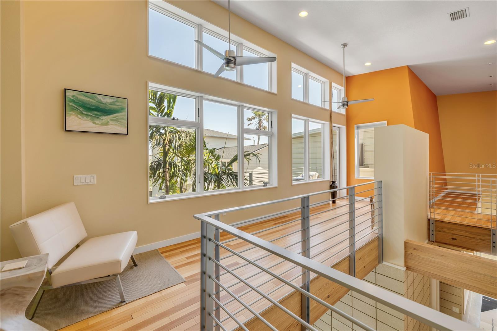 North Beach gated 3Br, 3 Ba contemporary pool home. Nestled between the Intracoastal Waterway and New Smyrna’s Beach this home exudes curb appeal and is just steps to the beach and dune walk-over. Once through the gated driveway, lush tropical landscaping welcomes you. This custom home features polished concrete and Eucalyptus wood floors, and 25’ ceilings. The first floor bedroom is accessed through double doors in the foyer and adjacent to the bedroom you will find a full bathroom with floor to ceiling decorative tile. The gourmet kitchen features Italian Valcucine cabinets, stainless steel Wolf and Miele appliances, quartz countertops, two sinks and a spacious walk-in pantry. The dining room features exposed concrete block walls with views out to the pool. The grand living space adjoins the pool and the Media room. The second floor walk-ways overlook the main floor leading to a luxurious primary suite with both walk-in and built-in closets. Primary bathroom offers dual sinks, dual shower heads and quartz countertops. Bedroom 2 with en-suite, features glass countertops and a polished concrete tub. The 2nd floor laundry room with deep stainless steel utility tub is conveniently located. Two-story garage/guest house has additional bonus space suitable for workshop, mother-in-law suite or additional living space. A 40’ lap pool, covered patio, fire pit and outdoor shower enhance outdoor living. This home has newer Pac-Clad Roof and siding, whole house Generac natural gas generator, two yr 2022 A/C units & tankless hot water heater, Anderson hurricane rated windows, and Ring brand security cameras. Beach Access, Smyrna Dunes Park with dog beach and fishing pier are minutes away. Flagler Avenue’s shops, restaurants and entertainment are 1.5 miles away, a leisurely bike ride. No flood insurance required.