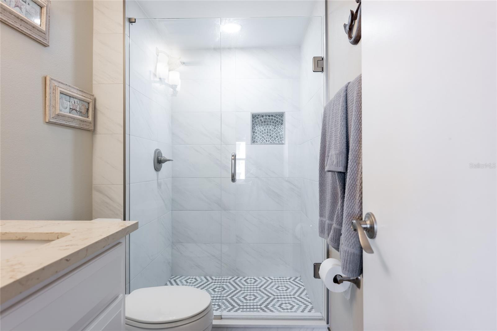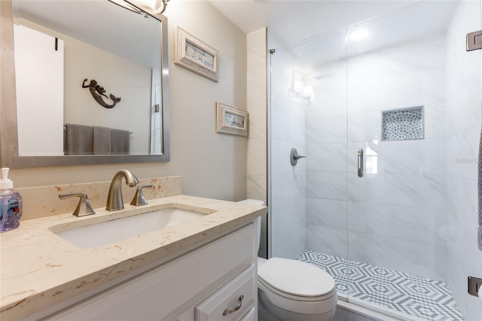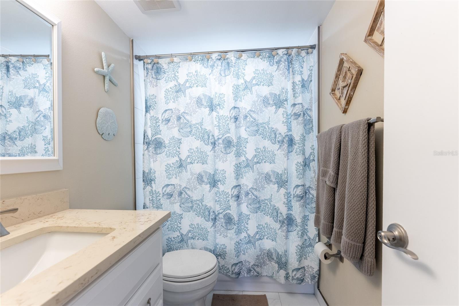 The living is easy in this impressive 2 bedroom 2 bathroom condo with an ocean view. From the moment you walk through the door you will be blow away with the eye-catching updates throughout the condo. The recently-renovated gourmet kitchen will inspire your inner chef with its spacious quartz counters, a multitude of cabinet storage, and a great built in desk area. Other special highlights include the guest and master bathrooms have recently been remodeled, wood-look ceramic floors in the living areas, LPV flooring in the bedrooms, additional storage space outside, and so much more! A brand new (10/24) AC unit will help give the new owner extra comfort. With a prime location on the no-drive beach in New Smyrna, a handful of lush golf courses, one of a kind shops, and locally owned restaurants nearby, this condominium has all that you could ever desire and more! *All measurements are intended to be accurate, buyer is to verify*