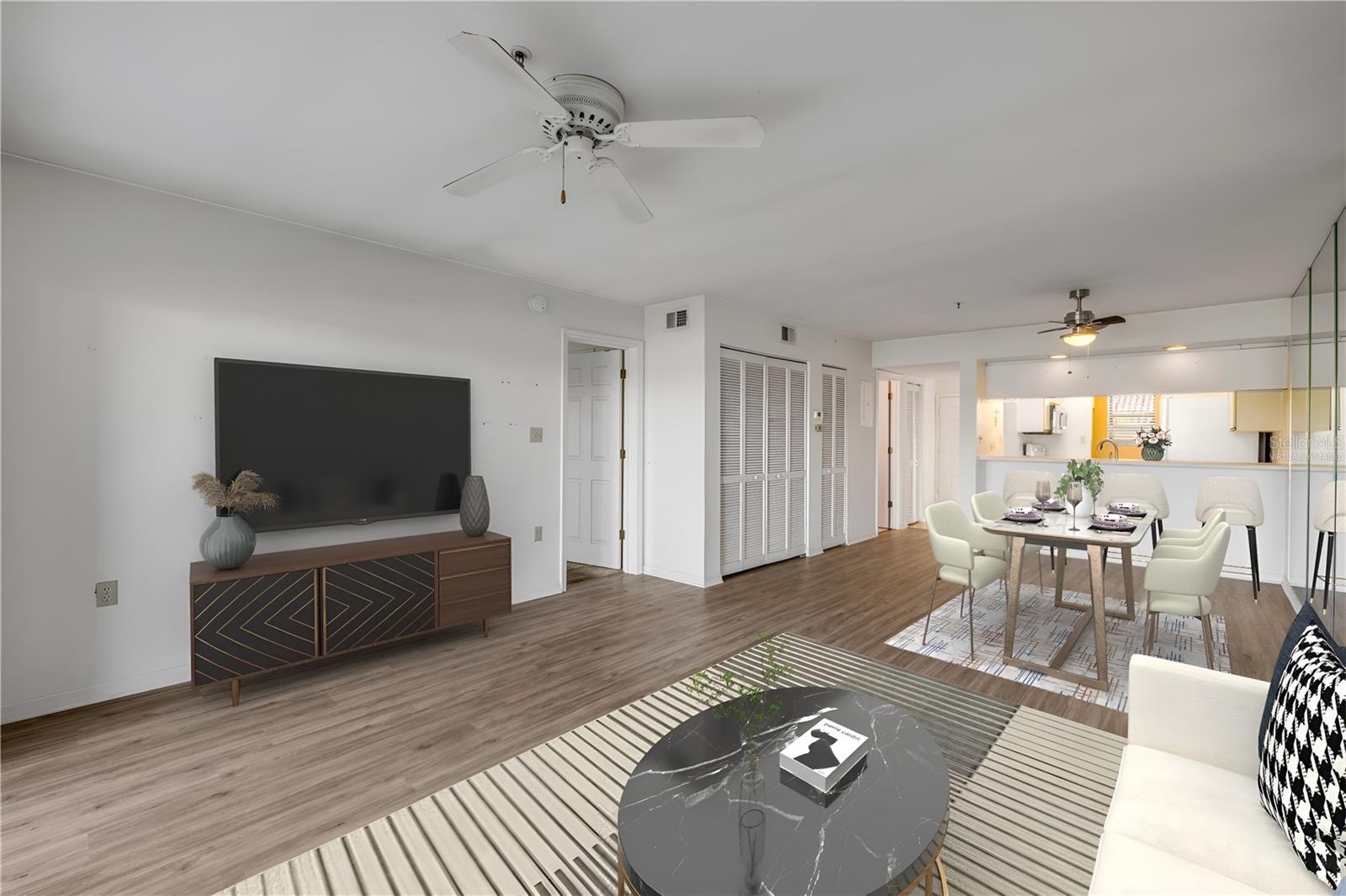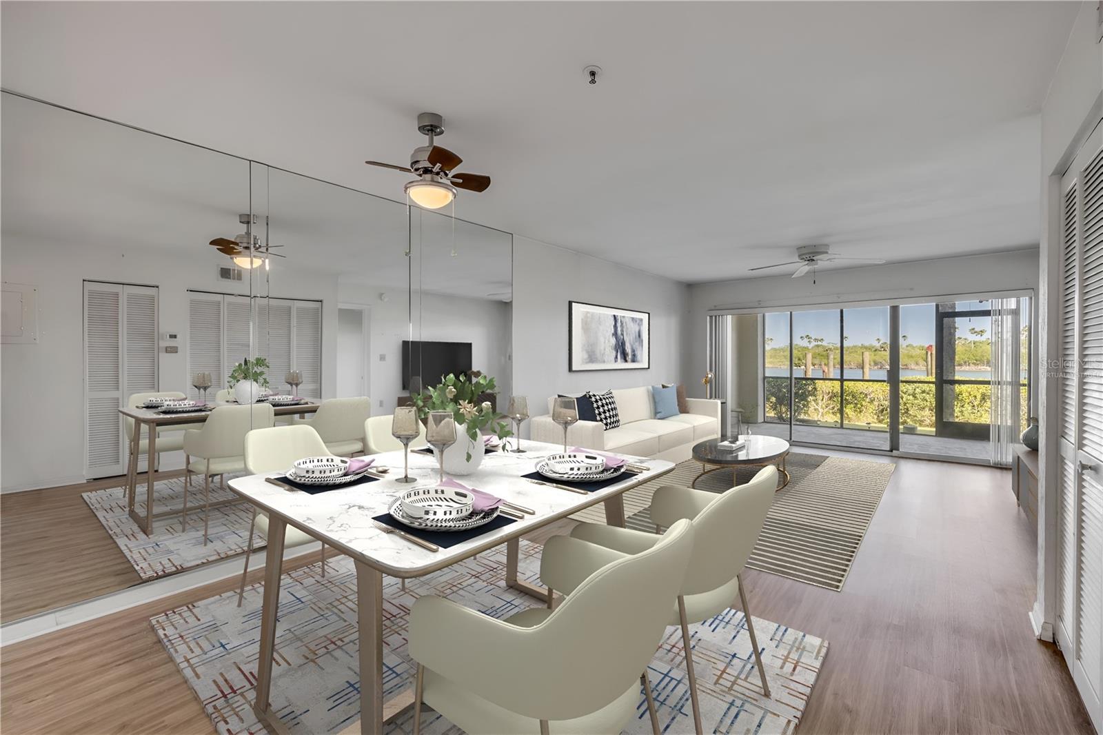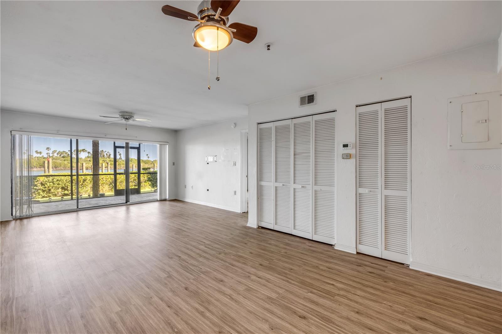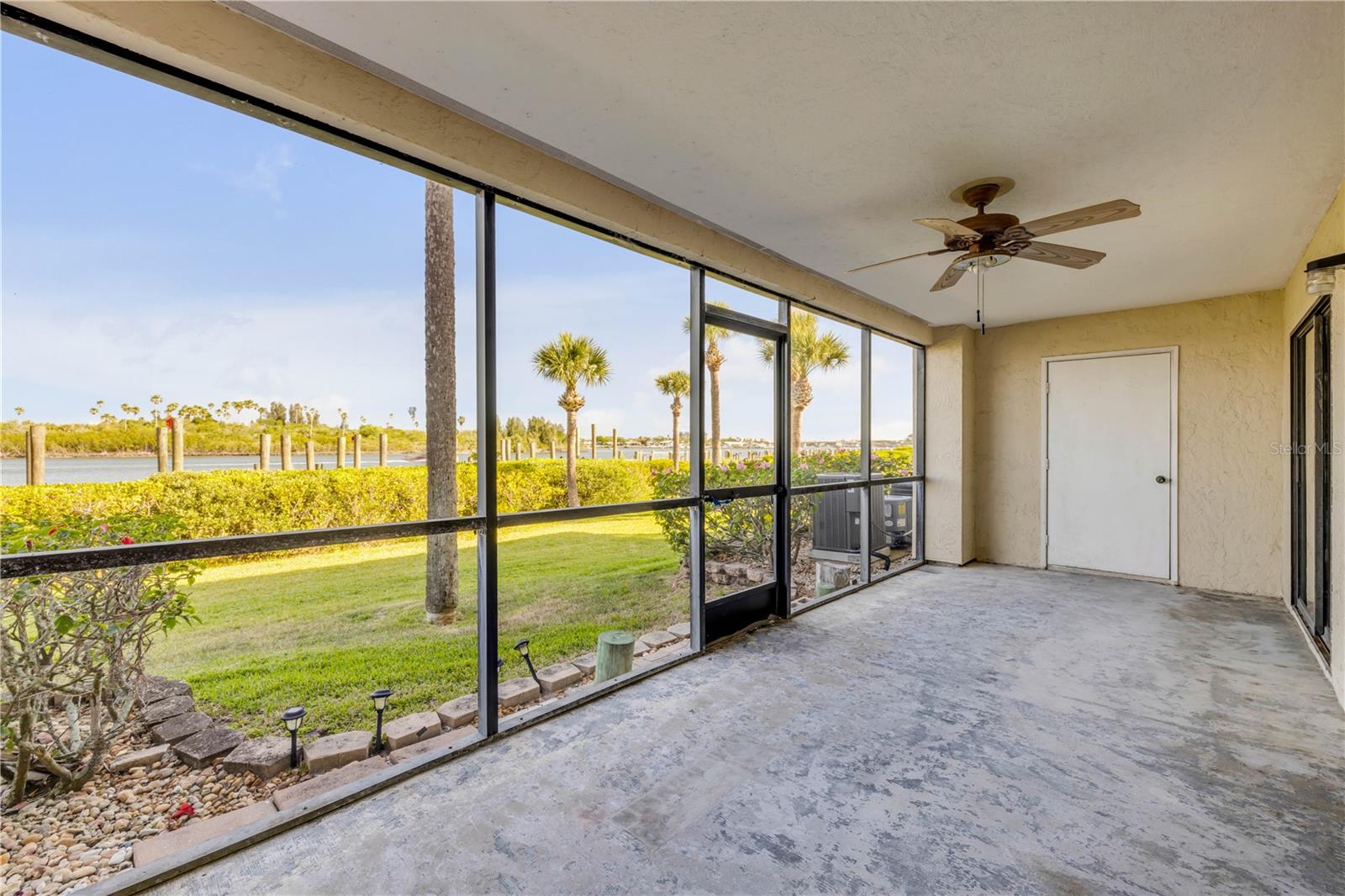 Intracoastal front condo in Bouchelle Island with water views and the Coastal Lifestyle you’ve been dreaming of located in the heart of New Smyrna Beach. This first-floor, 2-bedroom, 2-bath condo in the highly desirable Bouchelle Island community is the perfect blend of comfort, convenience, and coastal charm—ideal for full-time living or a vacation getaway. Being on the first floor means easy access—no stairs, no elevator waits—making it especially convenient for pet owners or anyone who just enjoys the ease of coming and going. The screened-in porch offers stunning views of the Intracoastal and passing boats, perfect for relaxing with your morning coffee or unwinding at sunset. Inside, the unit features a spacious living area with newer vinyl floors and 2 large bedrooms, each with their own en-suite bath. Newer AC and HW system. This unit is ready for its makeover. One of the standout features? A one-car garage, which is extremely limited and highly sought-after in this community. Bouchelle Island is known for its active, resort-style lifestyle. Residents enjoy access to a private boat ramp and boat storage, waitlist access for boat slips on the water, two heated pools, tennis and pickle-ball courts, clubhouses and a community gym, a scenic walkway along the river, a fun pitch and putt golf course and more. Plus, you're just minutes from Flagler Avenue, the beach, and some of the best dining, shopping and entertainment New Smyrna Beach has to offer. If you’re looking for laid-back coastal living with all the amenities, this is the one.