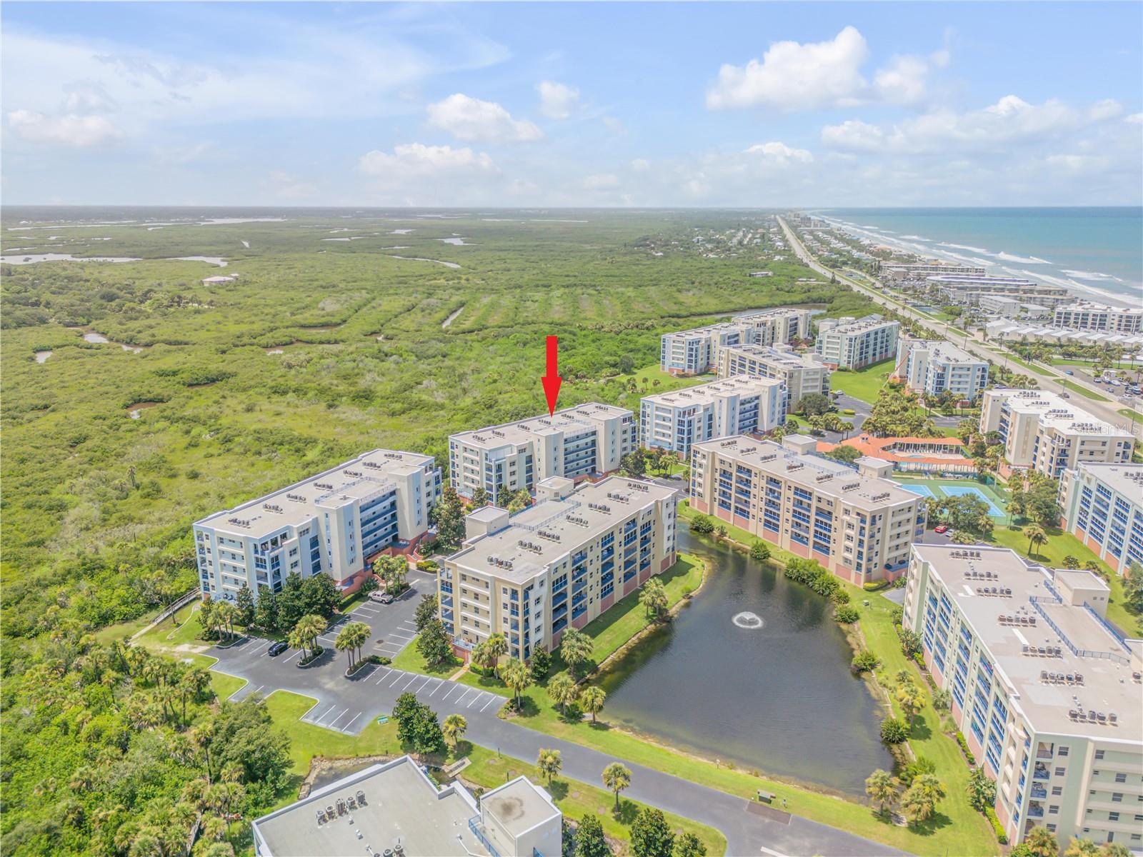 Experience the best of coastal living in this beautifully furnished 2 bedroom, 2 bathroom condo in the sought-after Ocean Walk community of New Smyrna Beach. Overlooking the tranquil Indian River Lagoon Estuary, this spacious unit offers fresh paint, tasteful décor, and a new instant-heat water heater—ready for you to move right in! Enjoy an open floor plan with a split-bedroom design, a well-appointed kitchen with breakfast bar, laundry room, and a bright living/dining area that opens to a 20’ balcony—perfect for watching stunning sunsets. The primary suite boasts balcony access, a walk-in closet, and a large ensuite bath with dual vanities, garden tub, and separate shower. Ocean Walk is a resort-style, gated community featuring two clubhouses, two heated pools, spas, saunas, fitness centers, tennis, bocce, shuffleboard, basketball, a BBQ area, theater room, nature trails, under-building parking, and storage. Just a short walk to private beach access and minutes from vibrant Flagler Avenue and historic Canal Street. Pet-friendly and short-term rental approved—perfect for full-time living or income potential. Building 9 has completed its SIRS and reserves study with no assessments required. Your beach lifestyle starts here!