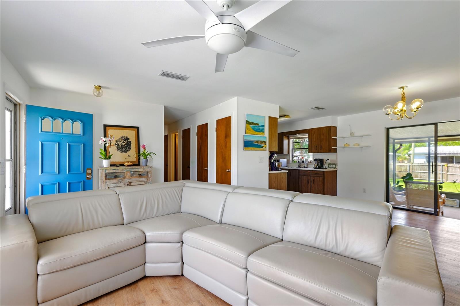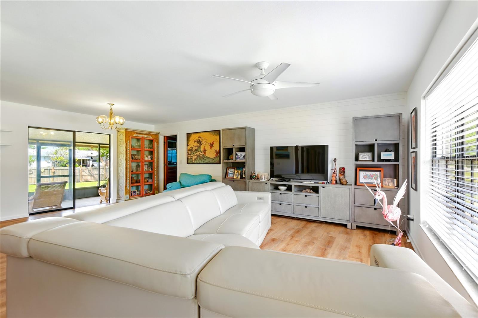 Never flooded! This beautifully maintained 3-bedroom, 2-bath home sits on an oversized 134’ x 130’ lot in Islesboro. The interior features luxury vinyl plank flooring throughout, fresh paint, and charming shiplap accents in the living room and master bedroom. The kitchen offers tile flooring, a brand-new flat-top stove, refrigerator, microwave, dishwasher, disposal, and a pantry. The master suite includes a walk-in closet and updated bath with walk-in shower. Additional updates include a 2020 Bryant A/C, newer ceiling fan and coffered ceiling in bedroom 2, and the guest bath has a new toilet and faucet. Roof is approximately 8 years old. Relax in the screened-in patio overlooking the west-facing backyard. Exterior has been freshly painted. The home also offers a 2-car garage with laundry (new GE Profile washer and 1-year-old Hot Point dryer), a detached 10x12 shed, and full fencing on all three sides. Conveniently located near the Swoope Boat Ramp, US-1, and Turnbull Bay—perfect for outdoor enthusiasts and commuters alike.
