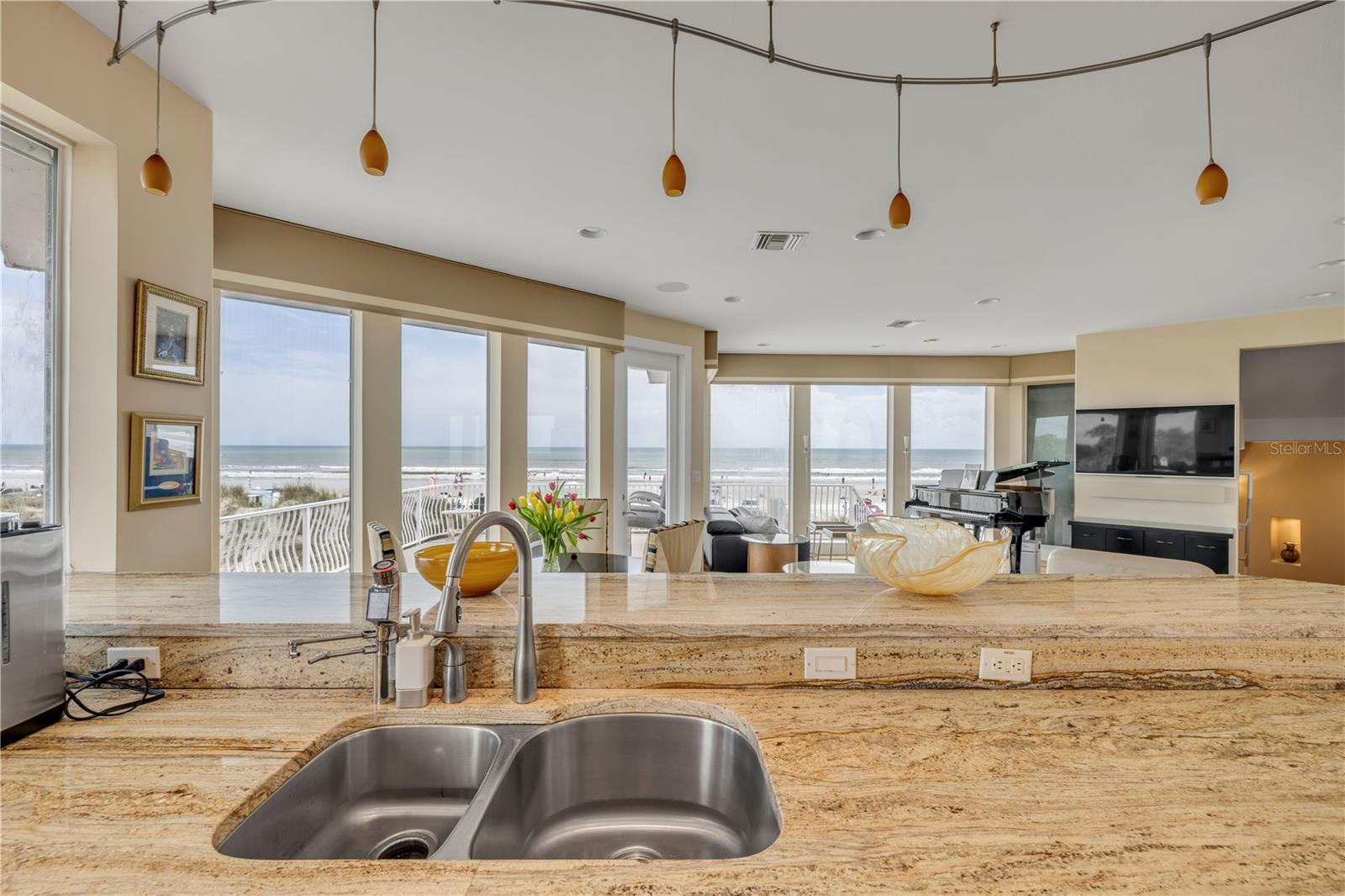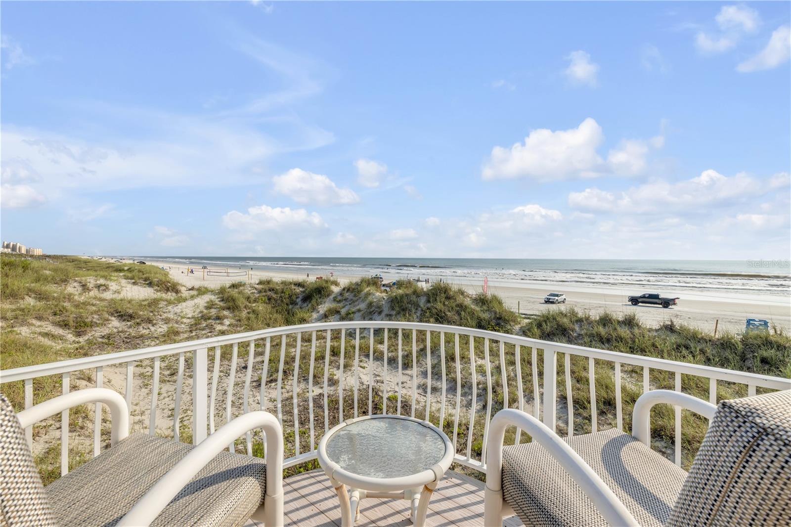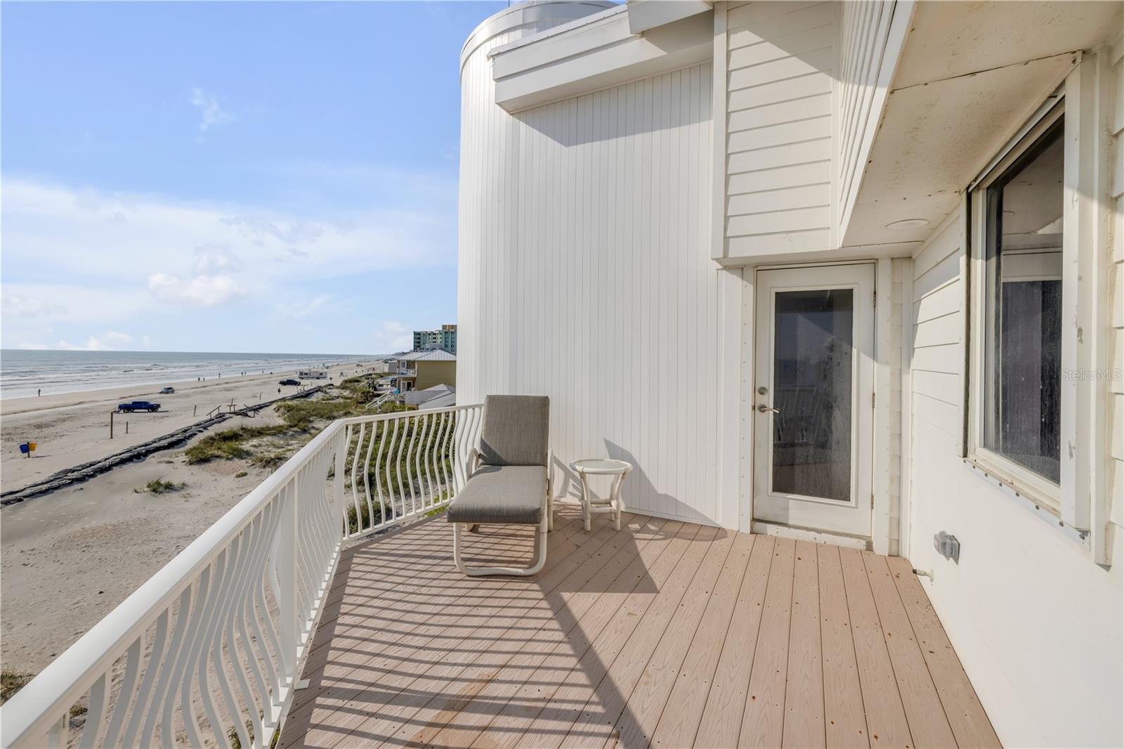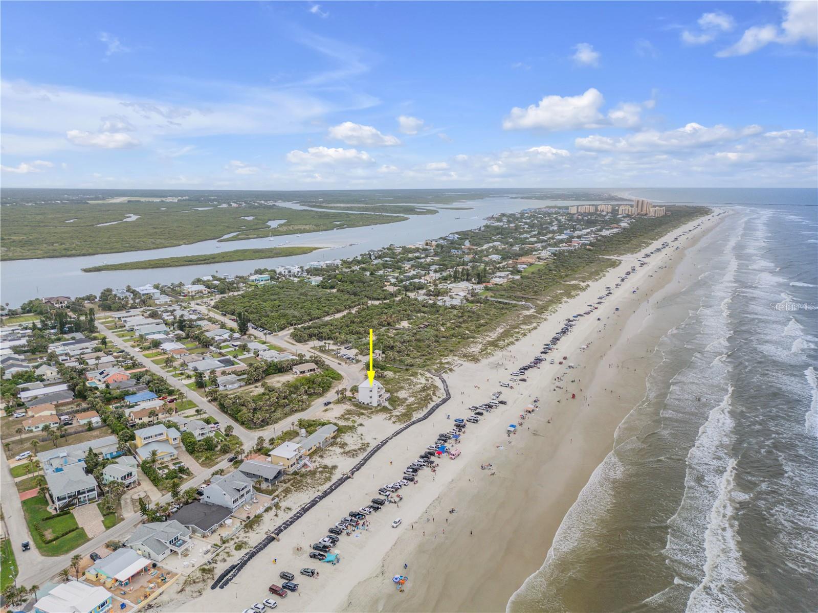 Direct Oceanfront Home. This 3-bed, 3-bath breathtaking contemporary beach home with an oversized 2-car garage is on a corner lot, giving it the appearance of a private island retreat. Designed by Bruce Krall, this iconic 3-story concrete pier fortress offers uninterrupted views of the ocean, sunrises, and surf from walls of windows and multiple balconies. With east-west doors open, enjoy constant ocean breezes that make every day feel like a vacation. The home features Rolladen storm shutters (regularly maintained) and a new 2024 roof. The ground level includes garage parking, laundry, utility sink, storage, outdoor patios, and space for a dog run. A turret stairwell leads to the open-concept second floor with sweeping ocean views. A chef's kitchen with bamboo cabinetry, glass backsplash, honey-toned granite, Sub-Zero fridge/freezer, Fisher & Paykel dishwashers, dual ovens, warming drawers, and a 5-burner gas range, walk-out to a patio ready for a gas grill. One full bedroom and bath complete this level. The top floor features a spacious oversized ocean front primary suite with vaulted ceilings, built-ins, walk-in closet, a primary bath with dual glass sinks, soaking tub, and separate shower. A third ensuite bedroom is located at the southwest corner of the 3rd floor. Private beach walkover and a short stroll to Flagler Avenue’s shops and dining. This is exceptional oceanfront living.