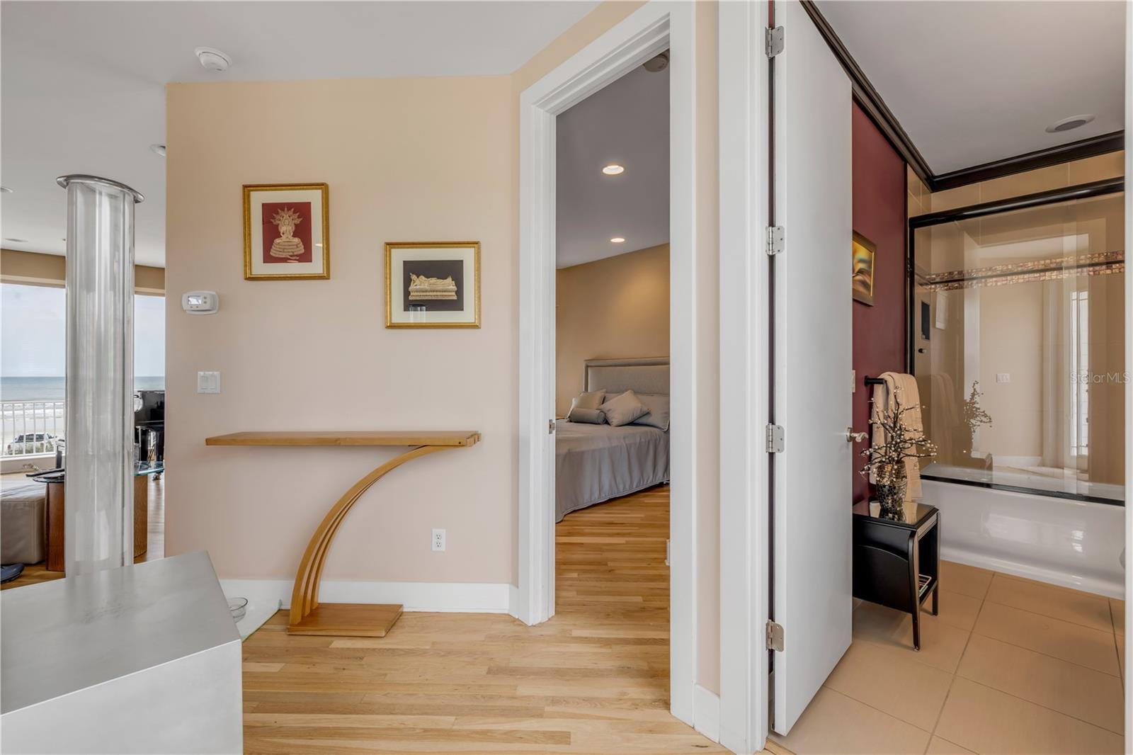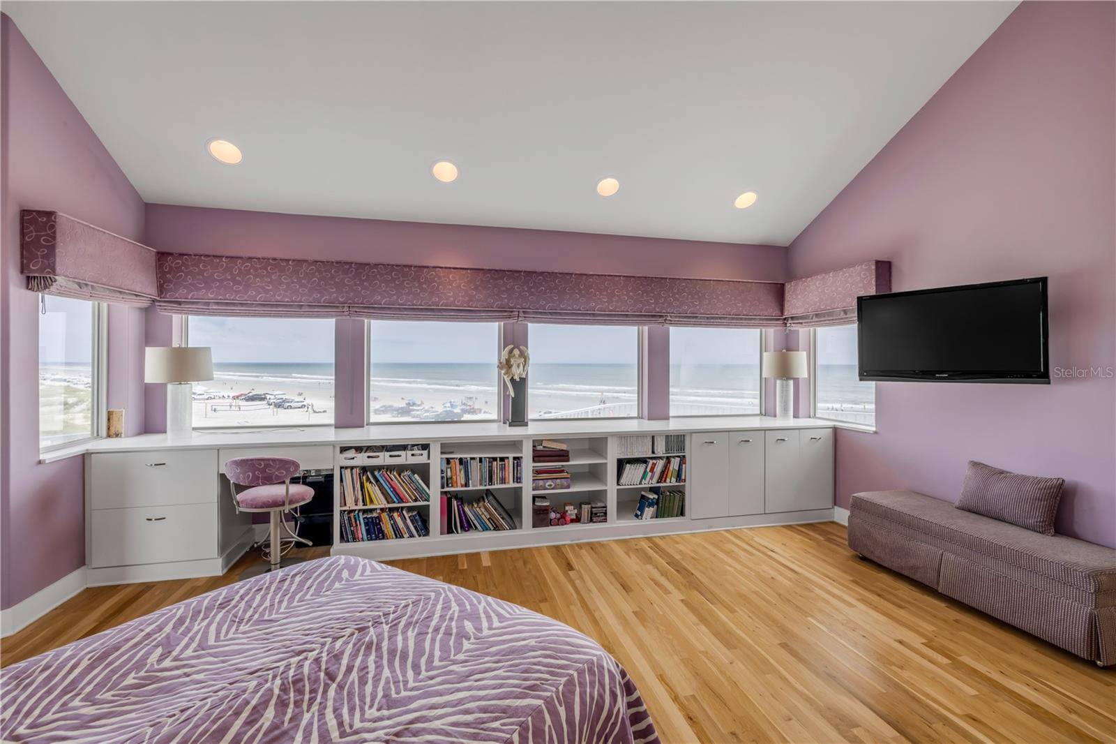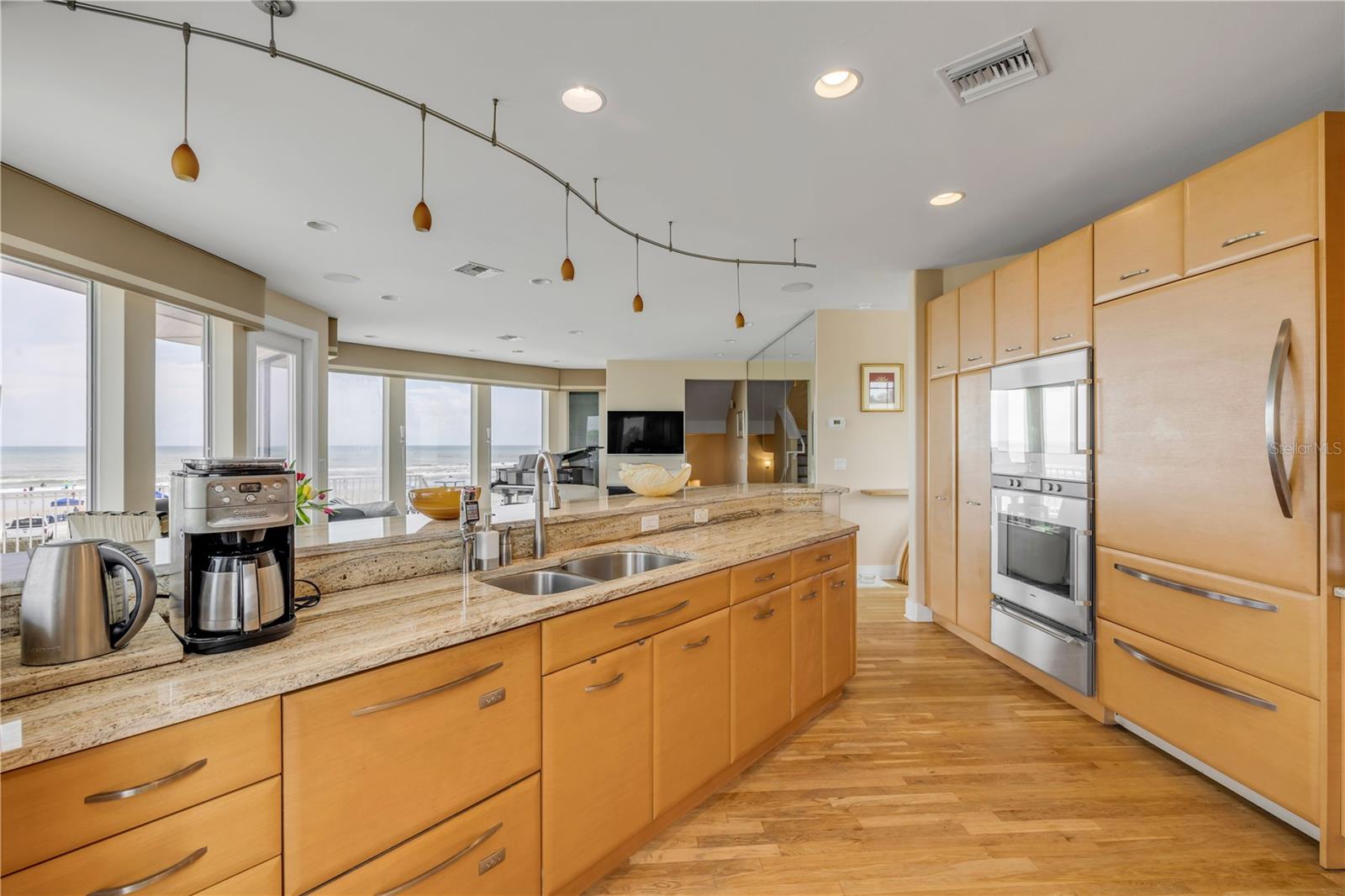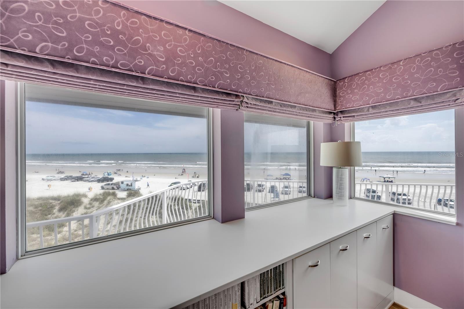 Direct Oceanfront Home. This 3-bed, 3-bath breathtaking contemporary beach home with an oversized 2-car garage is on a corner lot, giving it the appearance of a private island retreat. Designed by Bruce Krall, this iconic 3-story concrete pier fortress offers uninterrupted views of the ocean, sunrises, and surf from walls of windows and multiple balconies. With east-west doors open, enjoy constant ocean breezes that make every day feel like a vacation. The home features Rolladen storm shutters (regularly maintained) and a new 2024 roof. The ground level includes garage parking, laundry, utility sink, storage, outdoor patios, and space for a dog run. A turret stairwell leads to the open-concept second floor with sweeping ocean views. A chef's kitchen with bamboo cabinetry, glass backsplash, honey-toned granite, Sub-Zero fridge/freezer, Fisher & Paykel dishwashers, dual ovens, warming drawers, and a 5-burner gas range, walk-out to a patio ready for a gas grill. One full bedroom and bath complete this level. The top floor features a spacious oversized ocean front primary suite with vaulted ceilings, built-ins, walk-in closet, a primary bath with dual glass sinks, soaking tub, and separate shower. A third ensuite bedroom is located at the southwest corner of the 3rd floor. Private beach walkover and a short stroll to Flagler Avenue’s shops and dining. This is exceptional oceanfront living.
