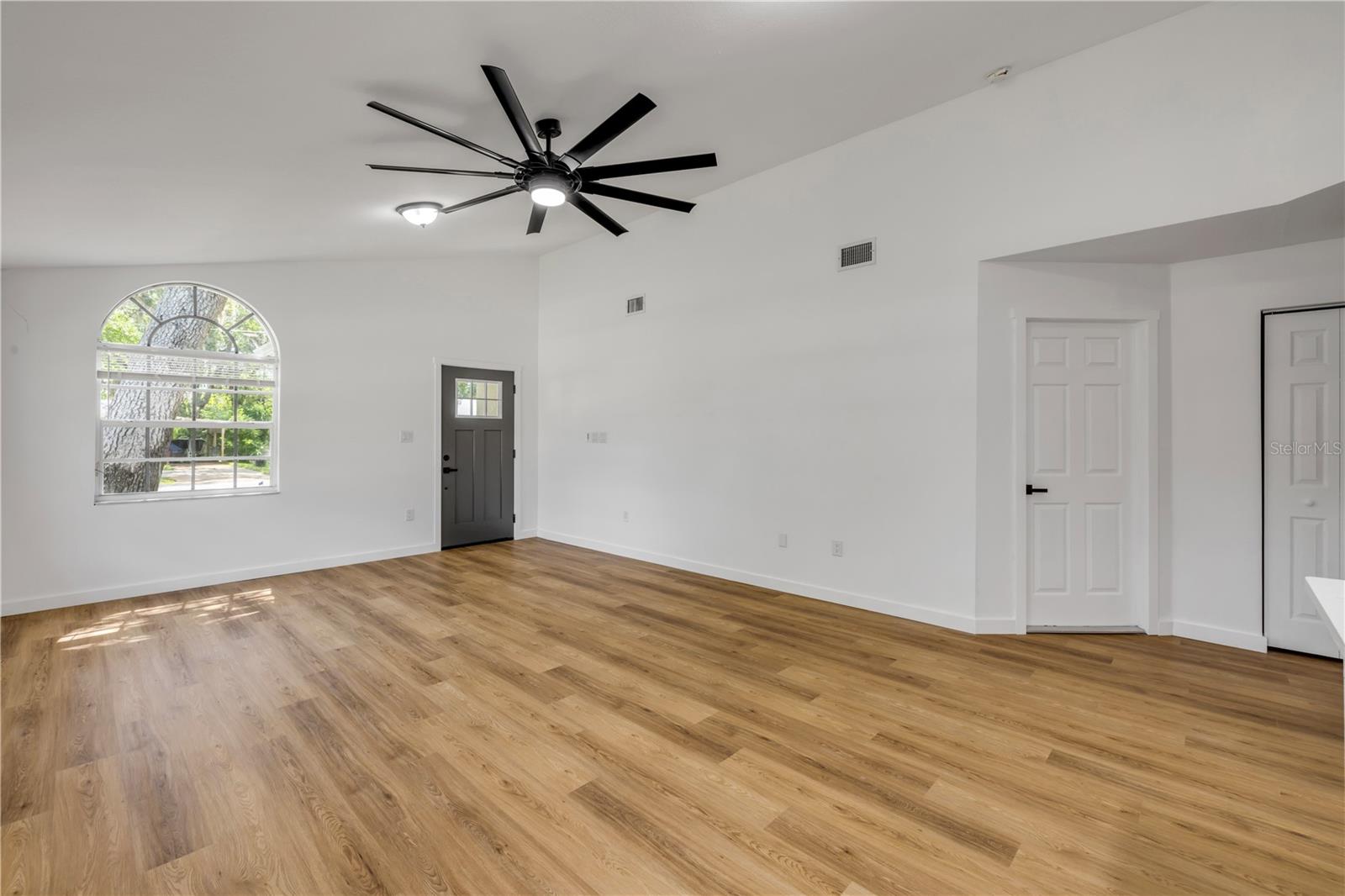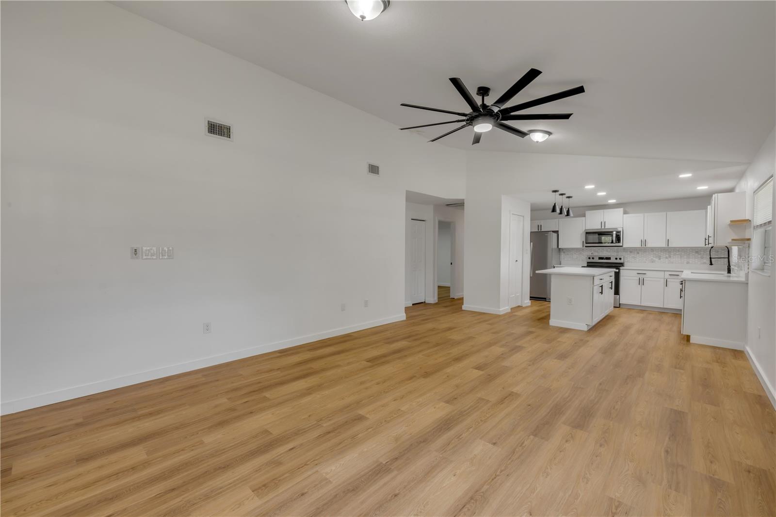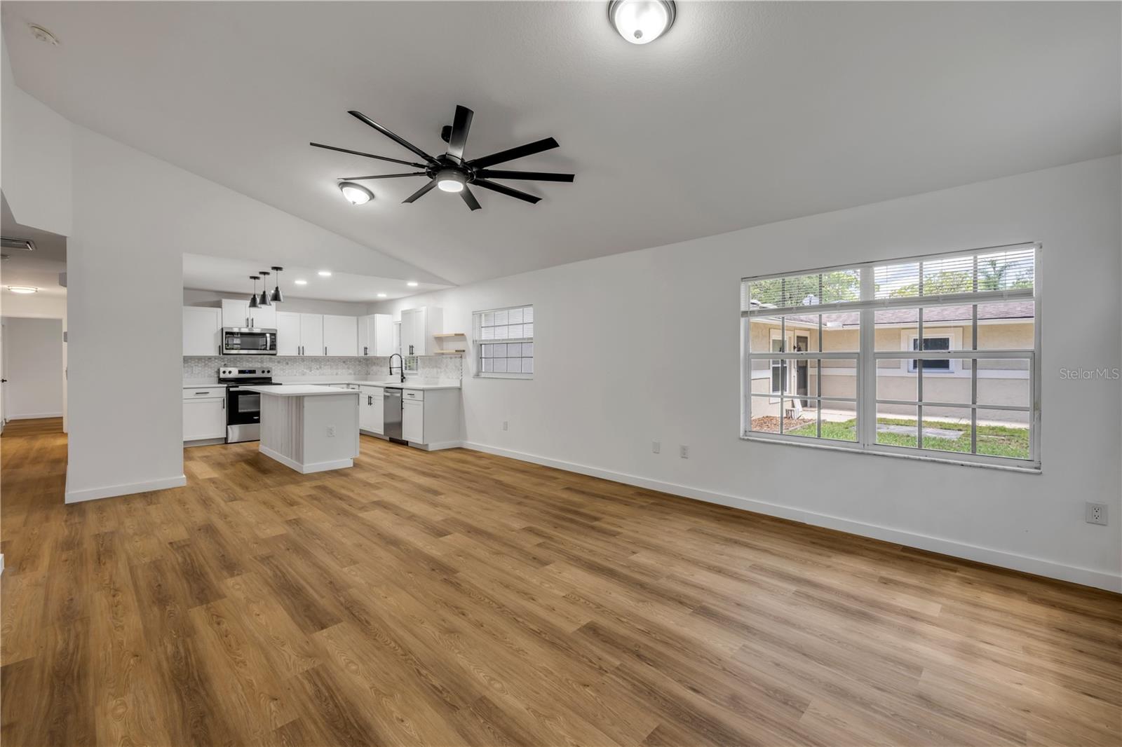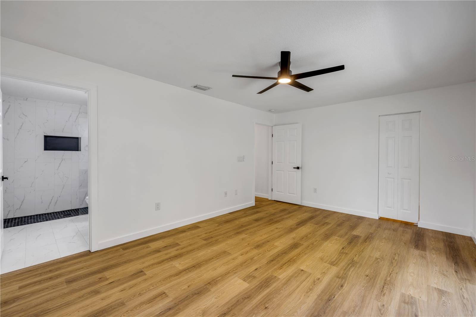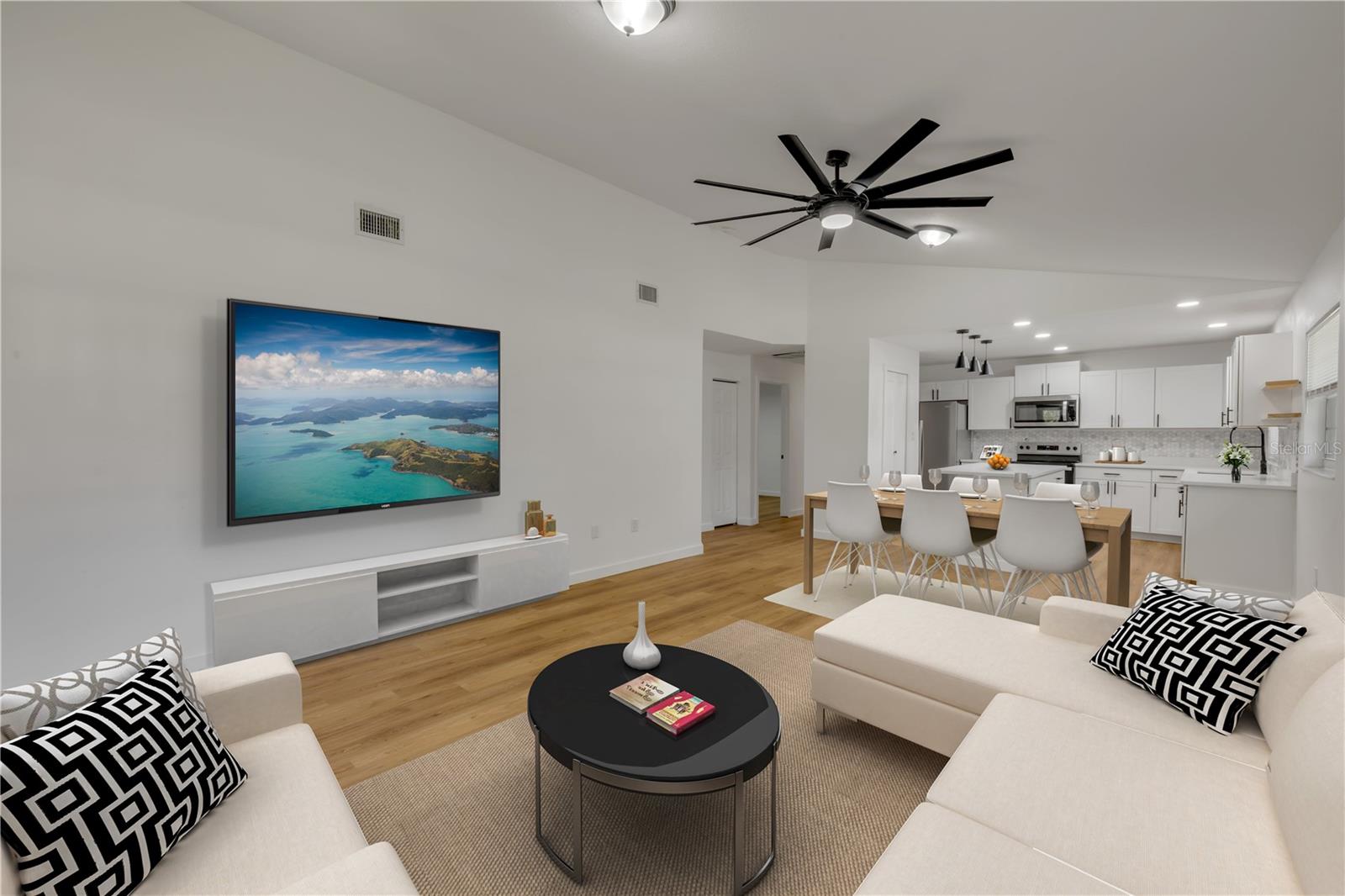 One or more photo(s) has been virtually staged. NO FLOODING HISTORY and located in a top-rated school zone! Situated in the sought-after New Smyrna Beach High district, this turnkey and stylish 3-bedroom, 2-bathroom, 2-car garage concrete block home has been thoughtfully renovated for modern living. Step inside to an open, airy layout filled with natural light and on-trend finishes that blend comfort and design. The kitchen shines with white shaker cabinets, brand-new stainless steel appliances, a stunning marble backsplash, and a spacious pantry. The primary suite is a peaceful retreat with a walk-in closet and a beautifully updated en-suite bathroom featuring a sleek walk-in shower. A second bedroom also includes a walk-in closet—rare for homes this size. Enjoy the durability and beauty of luxury vinyl plank flooring throughout—perfect for kids, pets, and easy upkeep. Major updates include 2024 roof and 2023 water heater, offering peace of mind for years to come. With no prior flood issues, a smart split-bedroom layout, clean modern finishes, and move-in-ready condition, this home checks all the boxes. Schedule your showing today and see why this home stands out in the heart of New Smyrna.