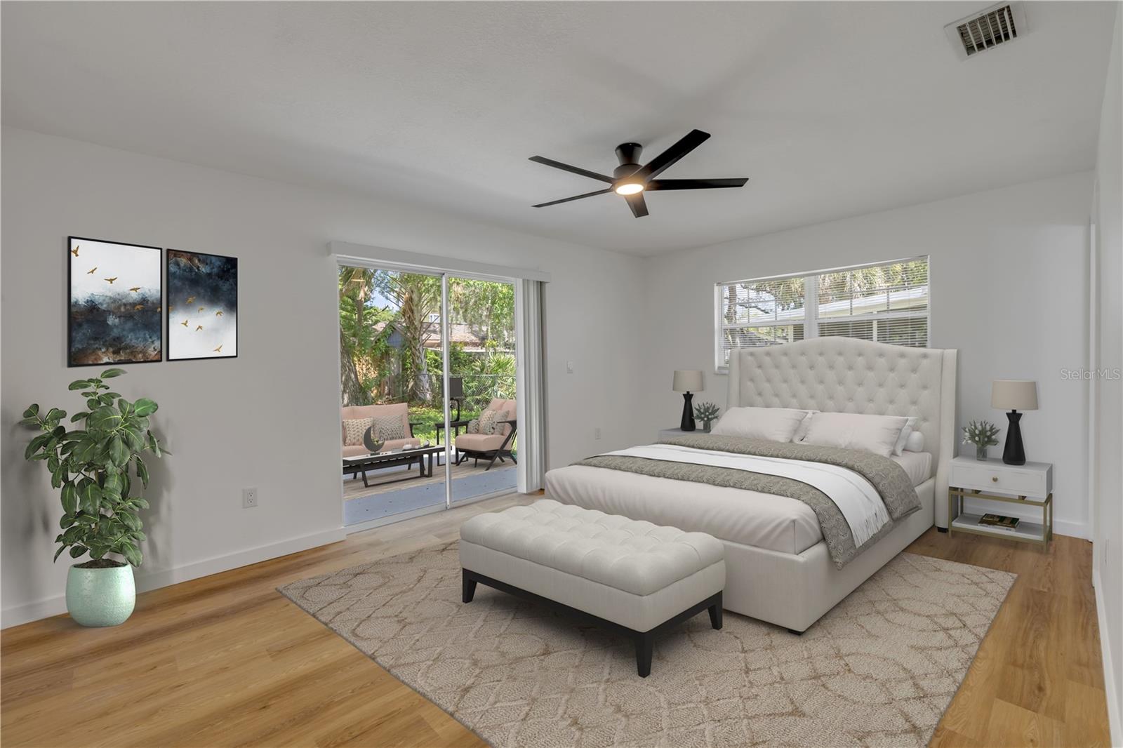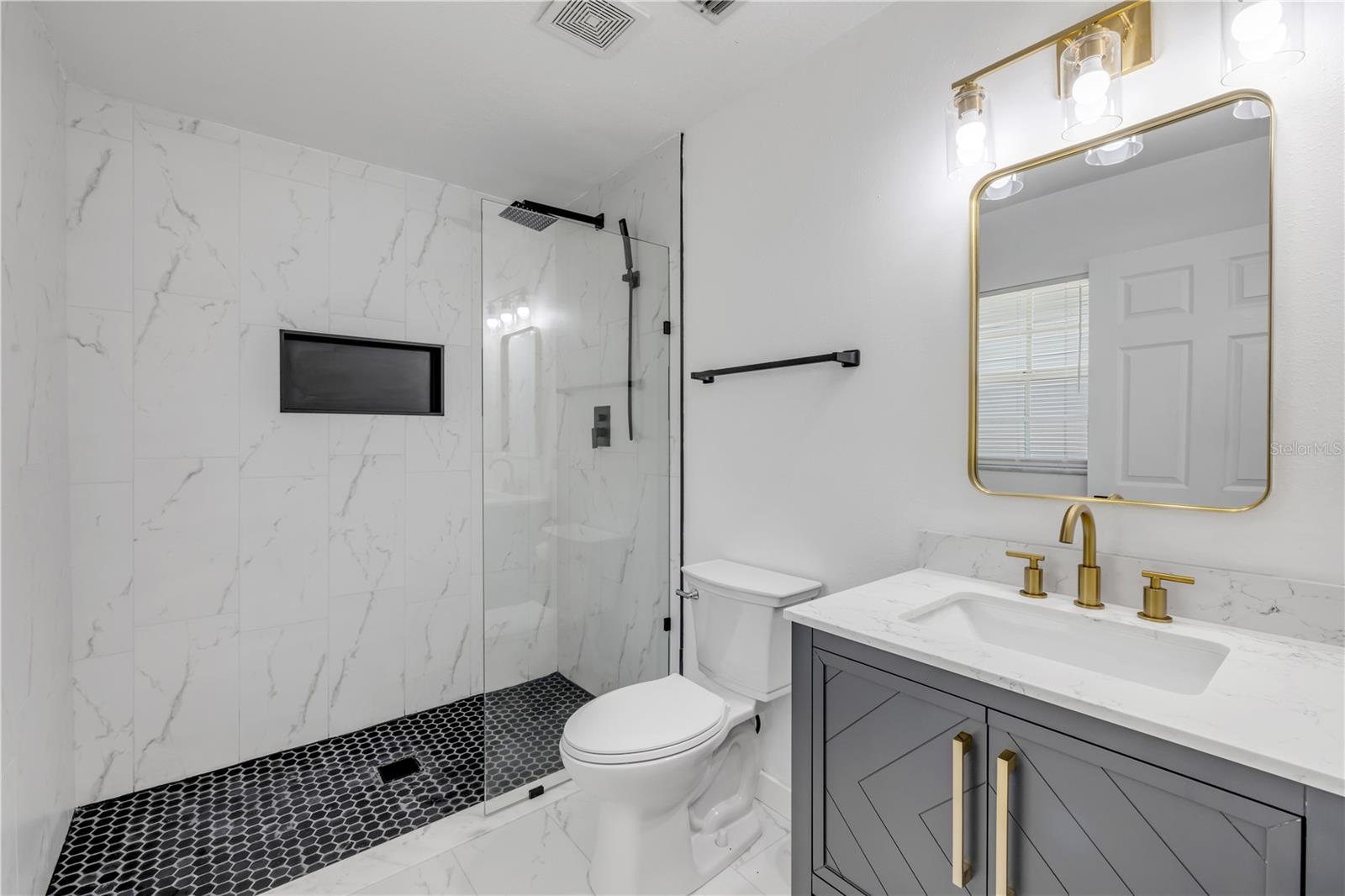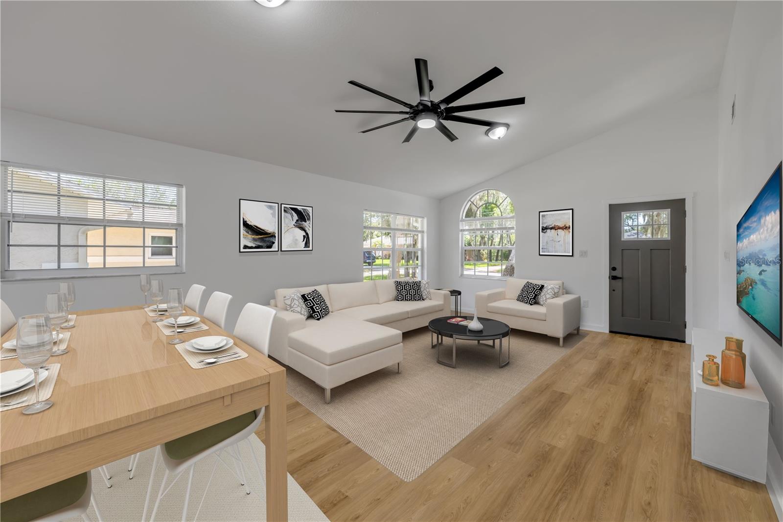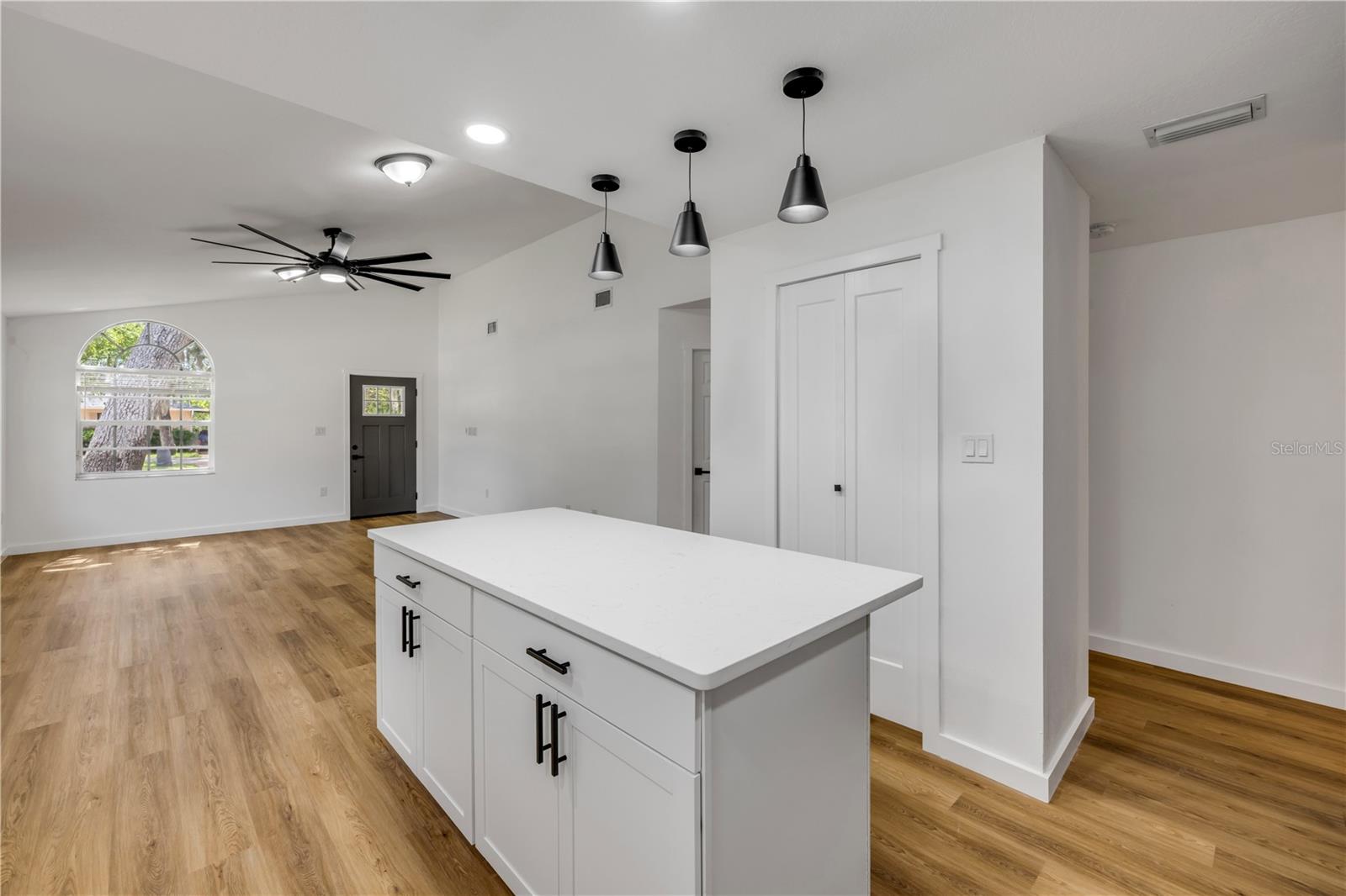 One or more photo(s) has been virtually staged. NO FLOODING HISTORY and located in a top-rated school zone! Situated in the sought-after New Smyrna Beach High district, this turnkey and stylish 3-bedroom, 2-bathroom, 2-car garage concrete block home has been thoughtfully renovated for modern living. Step inside to an open, airy layout filled with natural light and on-trend finishes that blend comfort and design. The kitchen shines with white shaker cabinets, brand-new stainless steel appliances, a stunning marble backsplash, and a spacious pantry. The primary suite is a peaceful retreat with a walk-in closet and a beautifully updated en-suite bathroom featuring a sleek walk-in shower. A second bedroom also includes a walk-in closet—rare for homes this size. Enjoy the durability and beauty of luxury vinyl plank flooring throughout—perfect for kids, pets, and easy upkeep. Major updates include 2024 roof and 2023 water heater, offering peace of mind for years to come. With no prior flood issues, a smart split-bedroom layout, clean modern finishes, and move-in-ready condition, this home checks all the boxes. Schedule your showing today and see why this home stands out in the heart of New Smyrna.