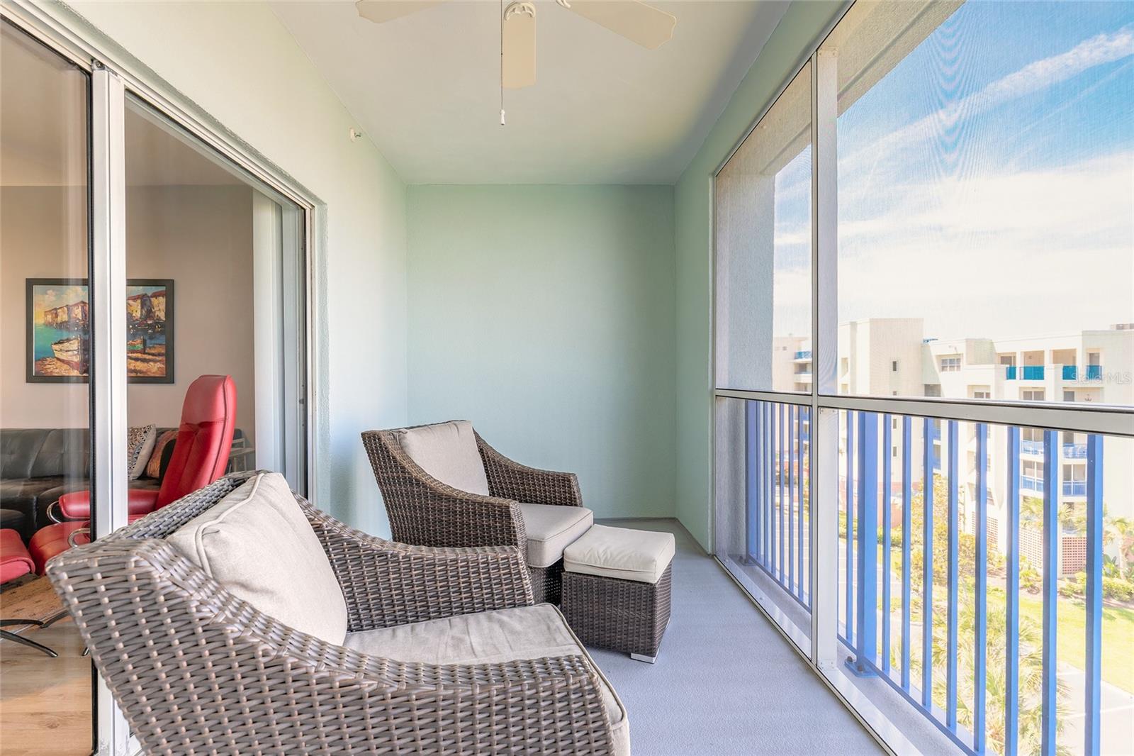 Experience the ocean views from the top floor! Beachside living at its best from this beautifully furnished 2-bedroom, 2-bath condo on the 6th floor of Ocean Walk in New Smyrna Beach. This unit boasts straight on spectacular views of the Atlantic, with a front common porch, larger than most buildings and perfect for taking in vibrant sunrises. In the rear, enjoy relaxing sunsets from your private and quiet balcony. As the seller says, it’s A “7 min walk from door to shore” using the nearby south-end beach walkover. Inside, the condo features a bright, open layout with durable laminate flooring in the living areas and tile in the bathrooms and laundry. The kitchen, upgraded appliances, and A/C are approximately 2.5 years old, offering peace of mind and energy efficiency. Unit also offers upgraded bathrooms and 2 storage units one of which is also on the 6th floor. Freshly repainted and resurfaced in 2020, the building also received a new roof and subroof membrane less than a year ago, along with updated A/C pads on the rooftop. The unit is being sold furnished, with only a few personal art pieces and four dining chairs excluded. As part of the Ocean Walk community, enjoy access to top-tier amenities including two resort-style pools, a fully equipped gym, clubhouse, sauna, and tennis courts. HOA fees also cover cable/internet, water, sewer, and trash... Making beachside living easy and hassle-free. Whether you're looking for a permanent residence, vacation escape, or investment property, this condo offers unbeatable comfort, convenience, and coastal charm. All information is intended to be accurate, however, not guaranteed.