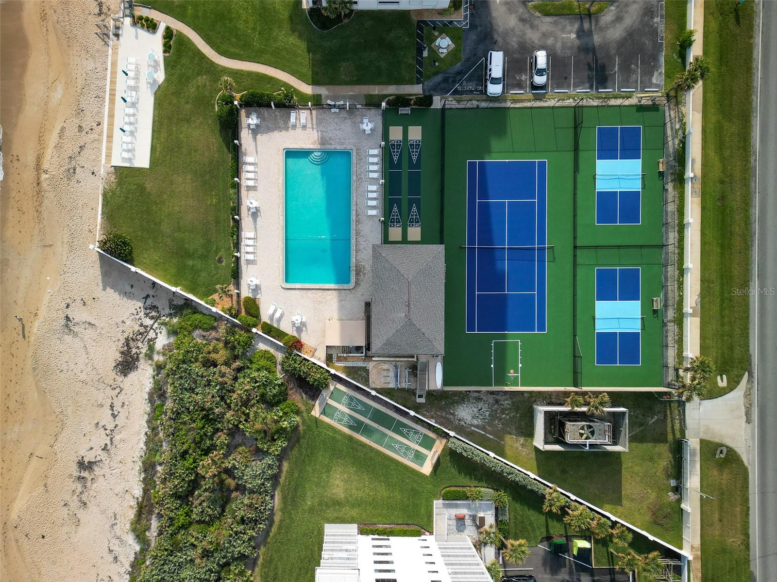 Panoramic oceanfront living awaits in this beautifully positioned three bedroom, three bath direct oceanfront condo. The second-floor location offers sweeping ocean and beach views—not just the horizon—capturing endless coastline scenery stretching north along New Smyrna Beach. Enjoy the convenience of easy access via stairs or elevator. Located in the sought-after Southwind condominium, residents enjoy luxury amenities including tennis and pickleball courts, a heated oceanfront pool, and a top-floor clubhouse featuring a kitchen, fireplace, and billiards perfect for entertaining and available for private gatherings. All amenities are situated on the quiet, no-drive portion of the beach. The unit may be sold turnkey, if desired. Interior features include tile flooring throughout, impact windows with storm shutters, a new hot water heater, and an in-unit washer and dryer. The primary suite and west guest bedroom both offer ensuite baths, while a centrally located third bath serves guests and the third bedroom. With owner usage variations, annual rental income has reached up to $83,000 after management fees, making this an exceptional opportunity for both personal enjoyment and investment.