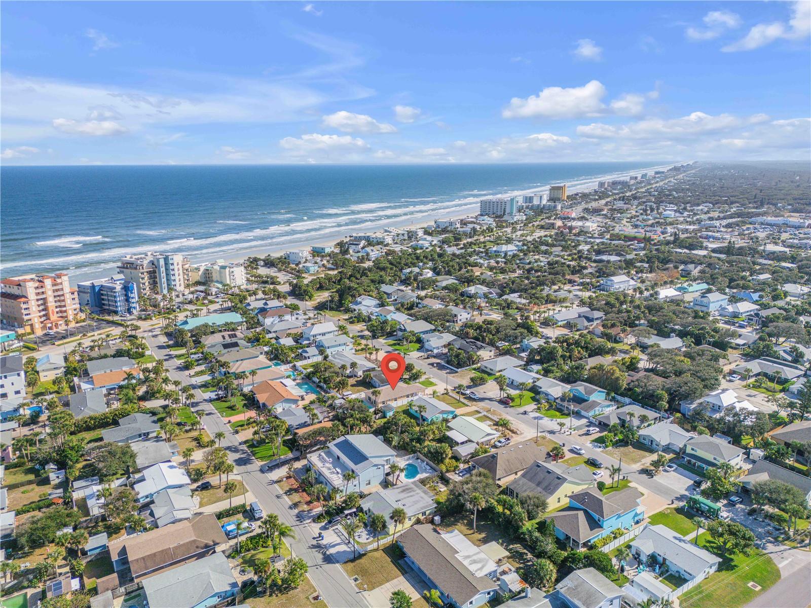 Prepare to be amazed the moment you step through the front door of this 3 bedroom, 2 bathroom, newly custom coastal renovated, highly desirable location, New Smyrna Beachside home… This spacious open floor plan integrates the chef's dreamy kitchen, dining room, and vaulted ceiling living room to create a perfect space for relaxing or hosting. The living room flows into your entertaining bar area and from there steps into your oasis, an oversized saltwater pool surrounded by tropical palms and a low maintenance landscape. If you get chilly, you can turn your oasis pool into an oversized hot tub with upgraded jets and an oversized natural gas heater. Located in the desirable central beach, with just a few steps to the beach, a few blocks to Flagler Avenue, and 3rd Avenue’s popular restaurants. This home is solid and hosts recent hurricane impact sliders and windows. Welcome to your slice of paradise!
