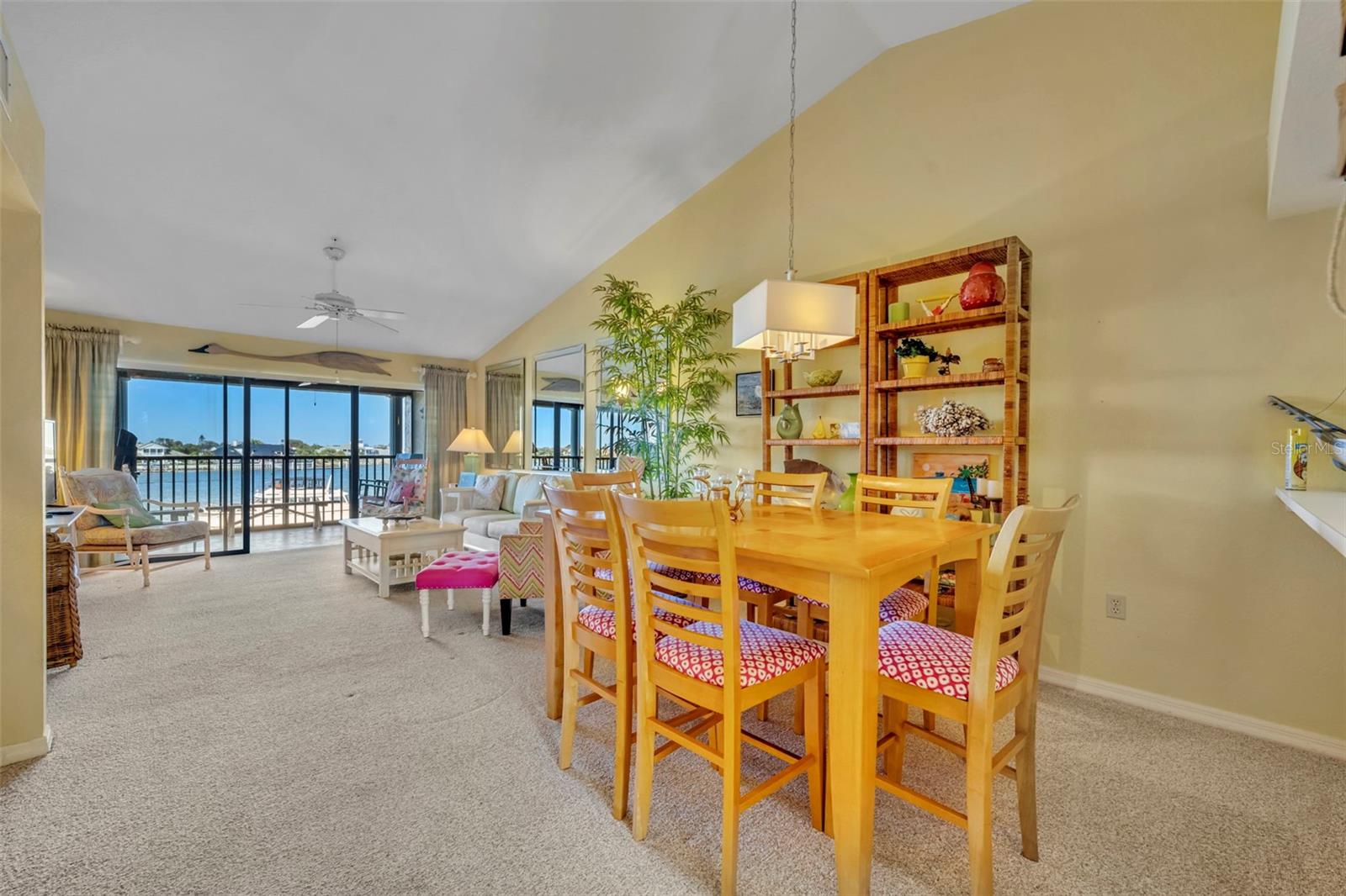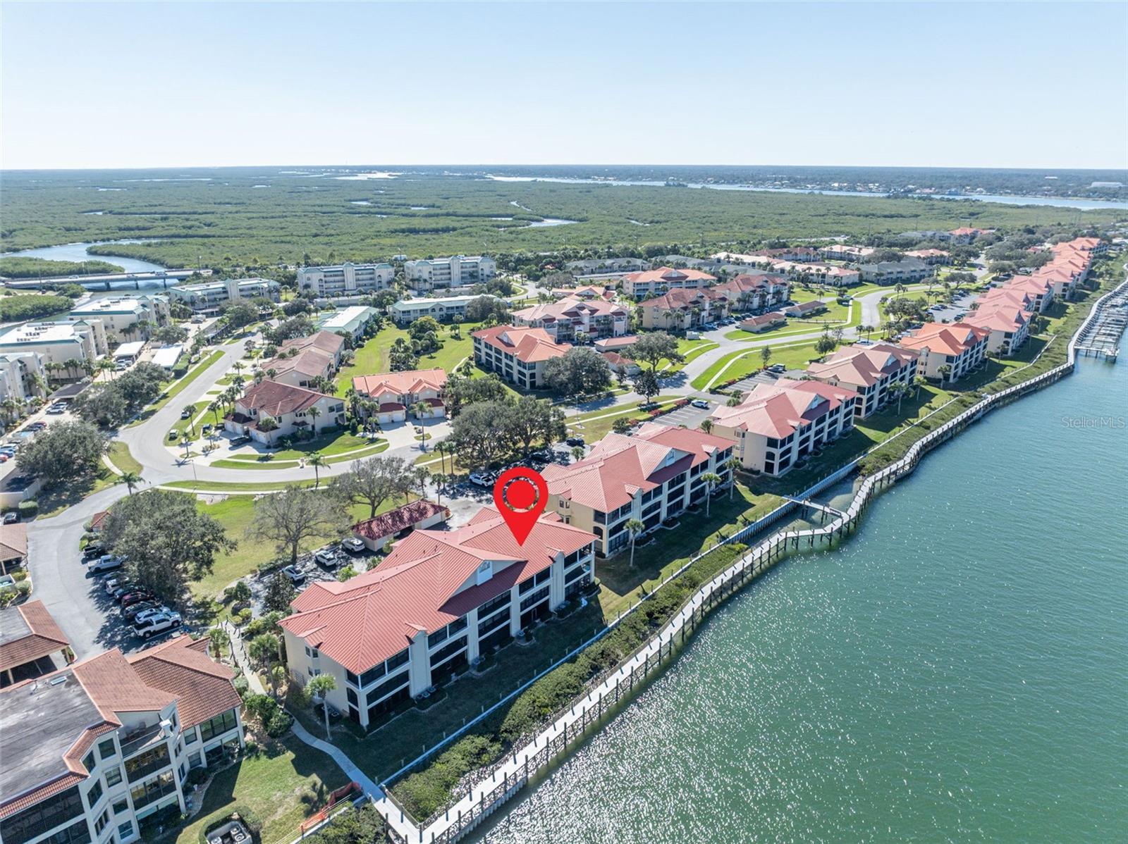 Wake up to shimmering sunrises and endless water views in this direct Intracoastal, fully furnished 2-bedroom, 2-bath condo located in the highly sought-after Bouchelle Island community of New Smyrna Beach. From your private balcony, living room, and primary suite, enjoy panoramic views of the Intracoastal Waterway, the iconic South Causeway Bridge, and a daily parade of boats, yachts, and jet skis cruising by. Designed for relaxed coastal living, this move-in-ready residence features an open living and dining area with triple sliding glass doors that frame the water like artwork, while the primary suite’s double sliders allow you to wake up to breathtaking waterfront scenery every morning. The screened back patio offers large extra storage closet and is your perfect spot to feel the coastal breeze and watch the activity on the Intercoastal. Offered fully furnished, all you need to bring is your suitcase and start enjoying the Florida lifestyle from day one. Life on Bouchelle Island is all about waterfront leisure. Residents enjoy a private boat launch, trailer and boat storage, a brand-new dock with fishing pier, and boat slips available through the association. Enjoy the resort-like amenities including two heated pools, a clubhouse, fitness center and pickleball, tennis and shuffleboard courts. The boardwalk is perfect for strolls along the water. Just over the South Causeway Bridge you can enter at the beach ramps to drive on the 16 miles of sandy beach or ride your bike down historic Canal Street or Flagler Avenue with restaurants and entertainment galore. New Smyrna Beach is a short drive to take in the sights at Kennedy Space Center, St. Augustine or a day trip for shopping in Orlando or exploring the Disney Parks, Sea World and Universal Studios. Don't miss your opportunity to experience coastal living at its best in a turnkey condo on Bouchelle Island.