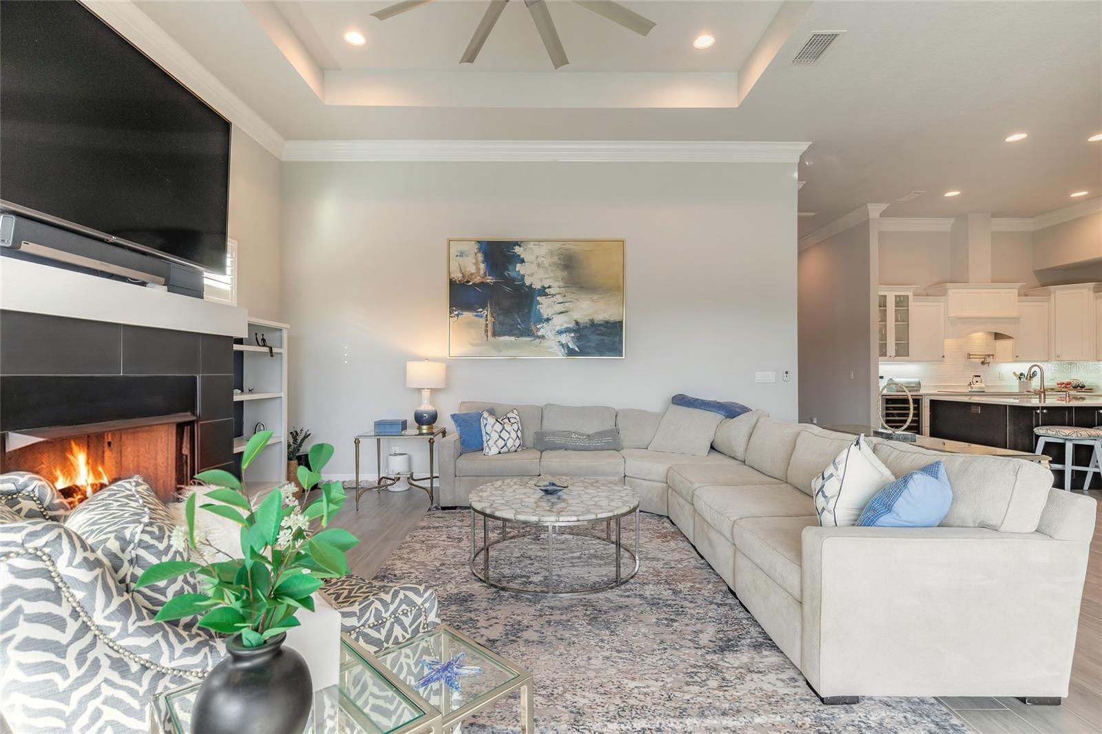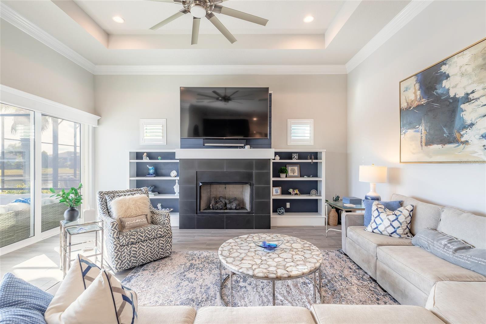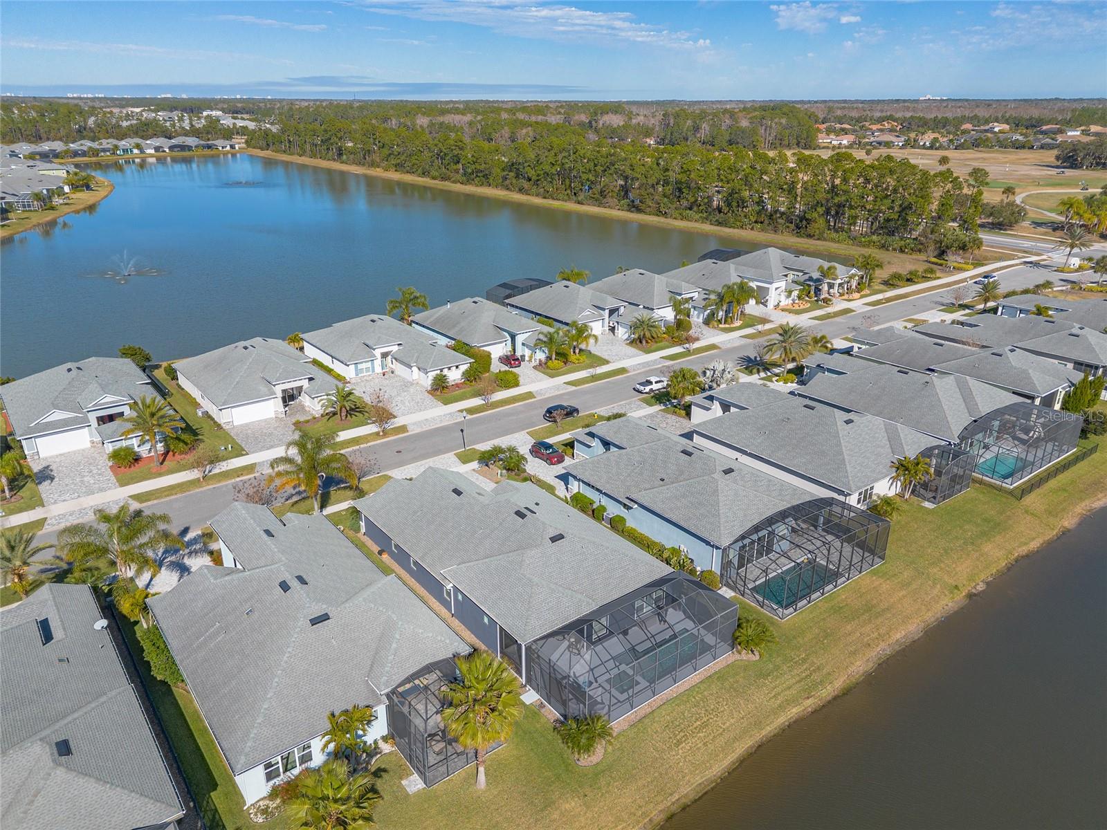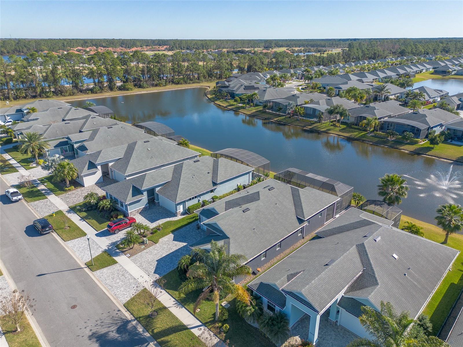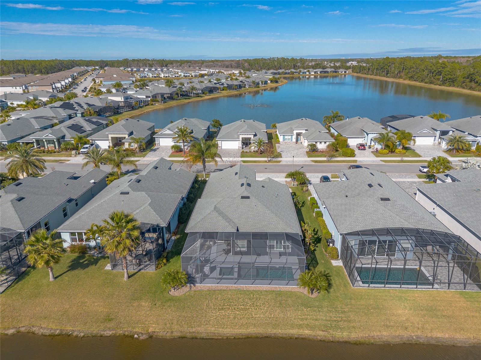 You have to see 3016 King Palm Drive to truly appreciate the level of quality and detail this home offers. From the moment you arrive, the oversized paver driveway and lush, mature landscaping set the tone and warmly invite you in. Through the double front doors, you’re greeted by beautiful tile flooring, soaring 12-foot ceilings enhanced by a sun tunnel, and elegant double crown molding throughout the main living areas. This Johnson-built 4-bedroom, 3-bath pool home is perfectly positioned on the water and loaded with upgrades. Tile flooring extends through the living areas and bathrooms, with plush carpeting in all bedrooms. The open kitchen features striking dual-tone white and espresso cabinetry, slate appliances, a wine refrigerator, and a spacious layout ideal for entertaining. Adjacent is a stunning built-in bar with glass cabinet doors, seamlessly flowing into the living room with tray ceilings, recessed lighting, and a dramatic built-in fireplace with TV niche that creates a warm, inviting ambiance. Large double glass sliders open to the screened lanai, effortlessly blending indoor and outdoor living. Step outside to your private retreat featuring a heated pool with expansive sun shelf and spa, tranquil water views, and a soothing fountain just beyond the backyard. The spacious lanai is finished with cool decking for both comfort and style. Electric shades on the sliders and plantation shutters throughout the home add both convenience and elegance. Additional highlights include a large laundry room with extra cabinetry, a two-car garage with epoxy flooring, 8-foot garage door, hybrid water heater, and water softener system, plus an additional full-size garage, also with epoxy flooring, perfect for extra vehicles, a workshop, or recreational toys. This home is further enhanced with a whole-house generator, 500-gallon propane tank, electric hurricane shutters, large kitchen pantry, and custom closets in the primary suite. Truly move-in ready. As part of Venetian Bay, you’ll enjoy access to pickleball and tennis courts, basketball court, miles of scenic trails, and a vibrant town center with a market, restaurant, spa, coffee shop, and fitness center. Golf enthusiasts will love the 18-hole championship golf course and clubhouse. All just minutes from Canal Street Historic District, Flagler Avenue, and the beautiful beaches of New Smyrna Beach. Fan chandelier in the office, Tesla charging station, and refrigerator in the garage does not convey. All information is intended to be accurate, however not guaranteed.