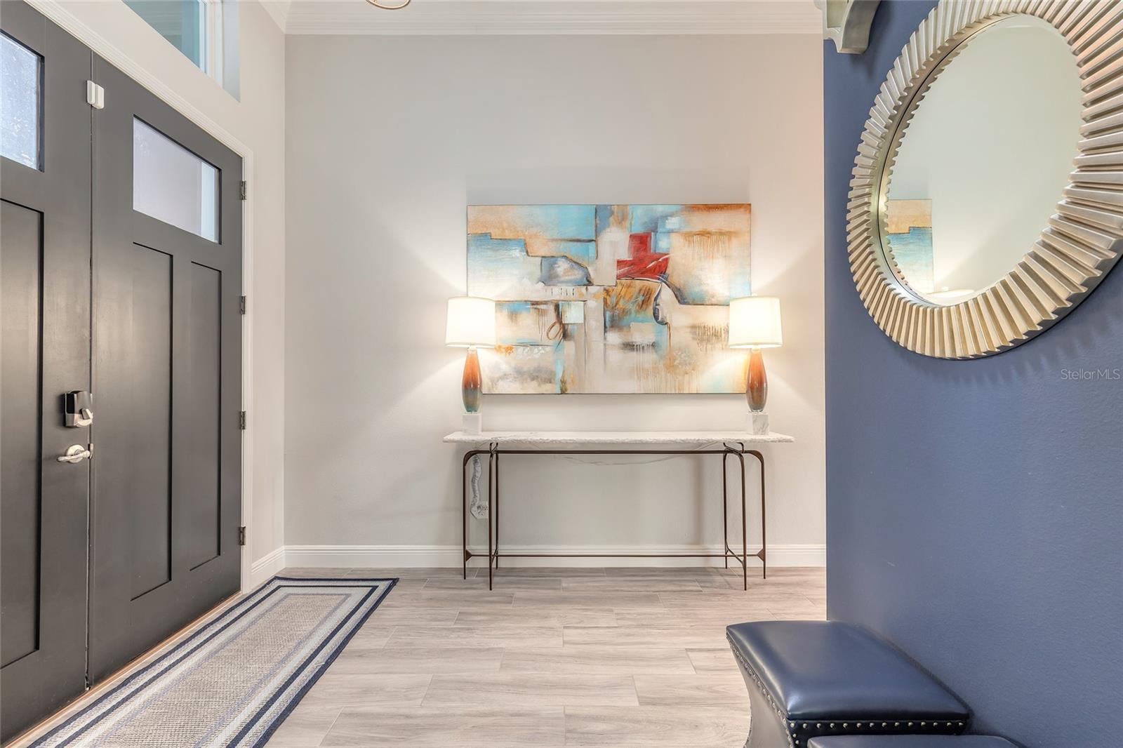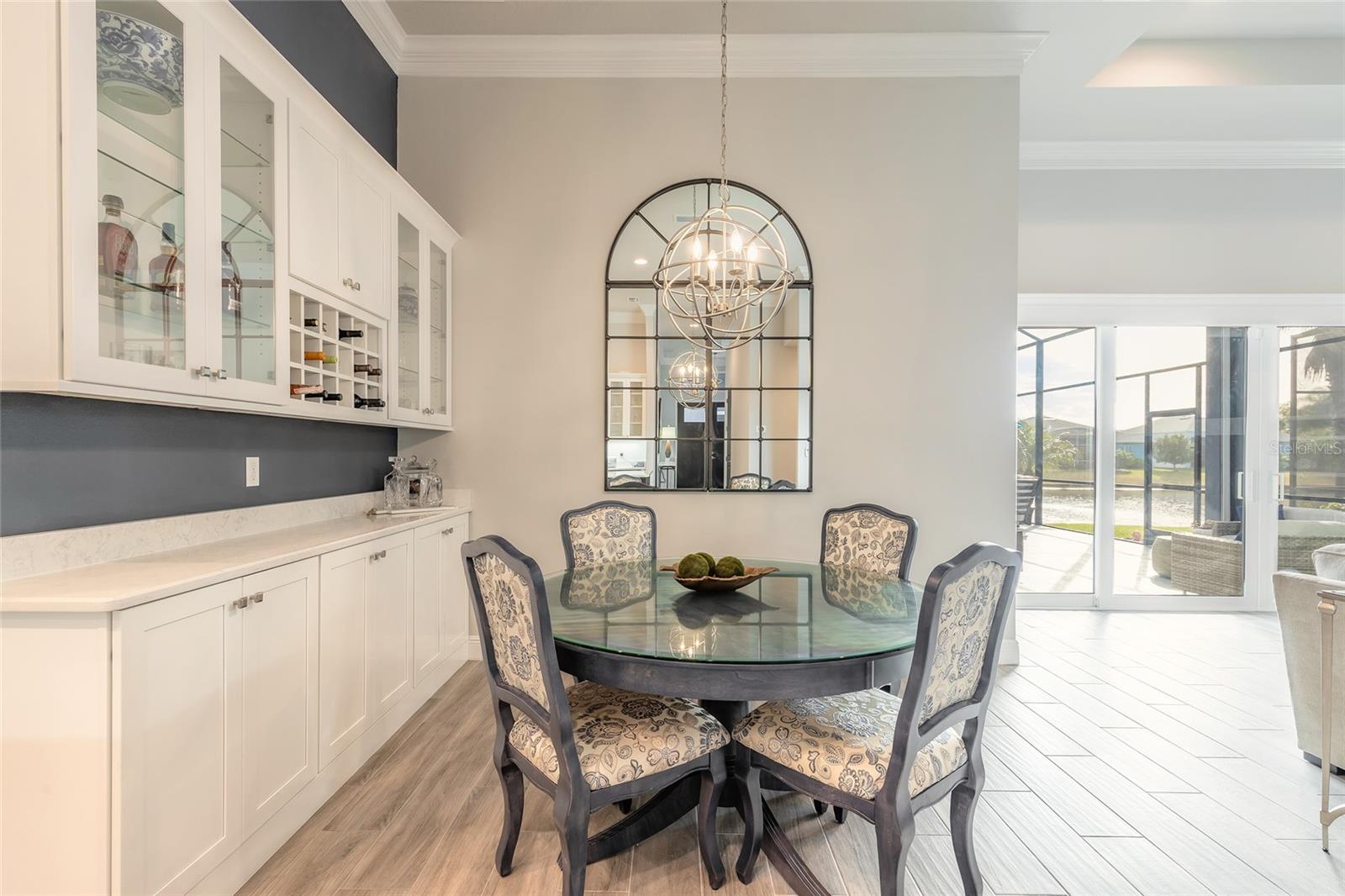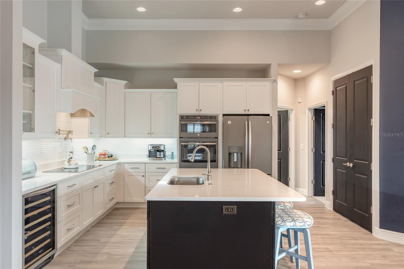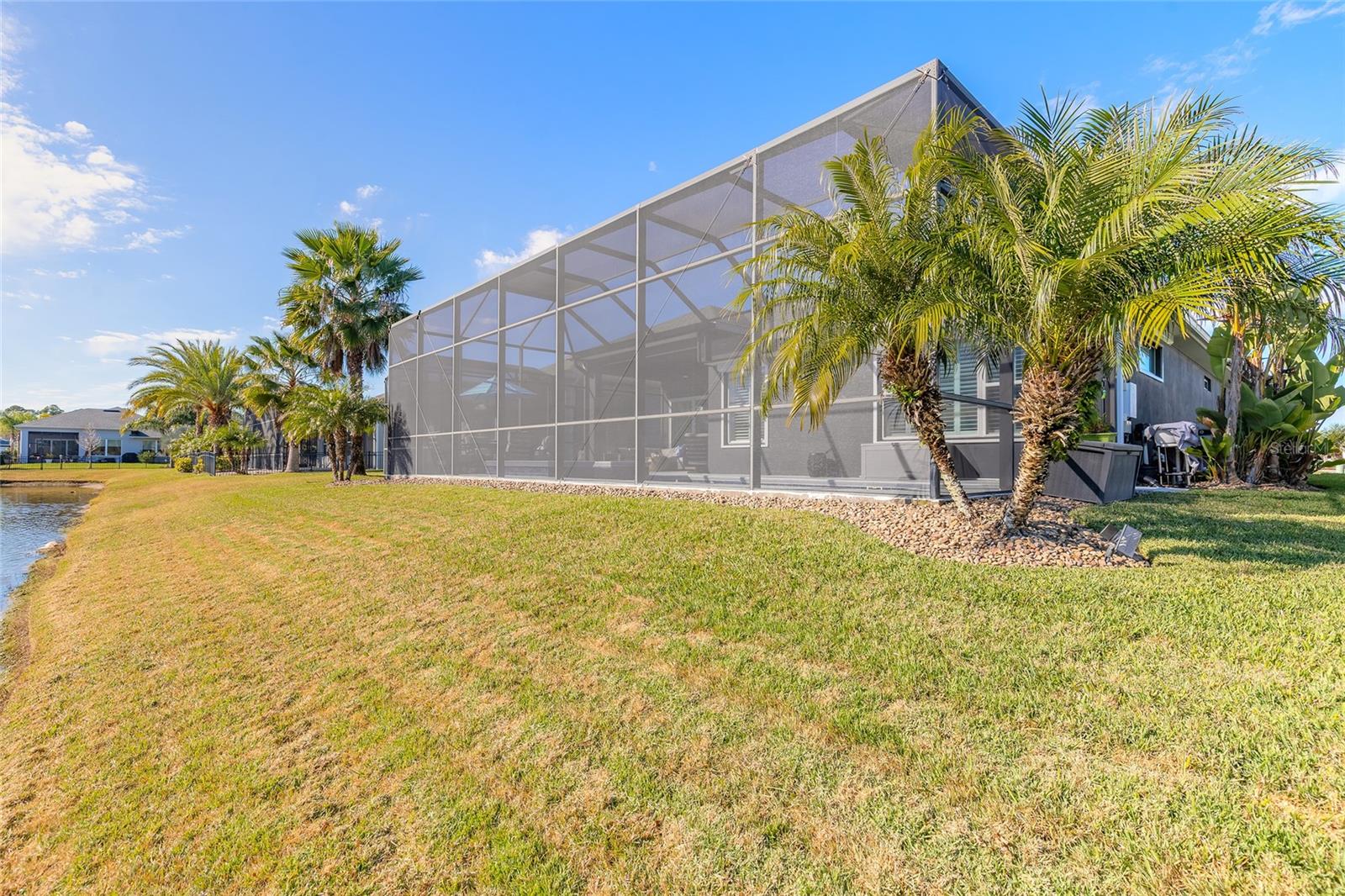 You have to see 3016 King Palm Drive to truly appreciate the level of quality and detail this home offers. From the moment you arrive, the oversized paver driveway and lush, mature landscaping set the tone and warmly invite you in. Through the double front doors, you’re greeted by beautiful tile flooring, soaring 12-foot ceilings enhanced by a sun tunnel, and elegant double crown molding throughout the main living areas. This Johnson-built 4-bedroom, 3-bath pool home is perfectly positioned on the water and loaded with upgrades. Tile flooring extends through the living areas and bathrooms, with plush carpeting in all bedrooms. The open kitchen features striking dual-tone white and espresso cabinetry, slate appliances, a wine refrigerator, and a spacious layout ideal for entertaining. Adjacent is a stunning built-in bar with glass cabinet doors, seamlessly flowing into the living room with tray ceilings, recessed lighting, and a dramatic built-in fireplace with TV niche that creates a warm, inviting ambiance. Large double glass sliders open to the screened lanai, effortlessly blending indoor and outdoor living. Step outside to your private retreat featuring a heated pool with expansive sun shelf and spa, tranquil water views, and a soothing fountain just beyond the backyard. The spacious lanai is finished with cool decking for both comfort and style. Electric shades on the sliders and plantation shutters throughout the home add both convenience and elegance. Additional highlights include a large laundry room with extra cabinetry, a two-car garage with epoxy flooring, 8-foot garage door, hybrid water heater, and water softener system, plus an additional full-size garage, also with epoxy flooring, perfect for extra vehicles, a workshop, or recreational toys. This home is further enhanced with a whole-house generator, 500-gallon propane tank, electric hurricane shutters, large kitchen pantry, and custom closets in the primary suite. Truly move-in ready. As part of Venetian Bay, you’ll enjoy access to pickleball and tennis courts, basketball court, miles of scenic trails, and a vibrant town center with a market, restaurant, spa, coffee shop, and fitness center. Golf enthusiasts will love the 18-hole championship golf course and clubhouse. All just minutes from Canal Street Historic District, Flagler Avenue, and the beautiful beaches of New Smyrna Beach. Fan chandelier in the office, Tesla charging station, and refrigerator in the garage does not convey. All information is intended to be accurate, however not guaranteed.