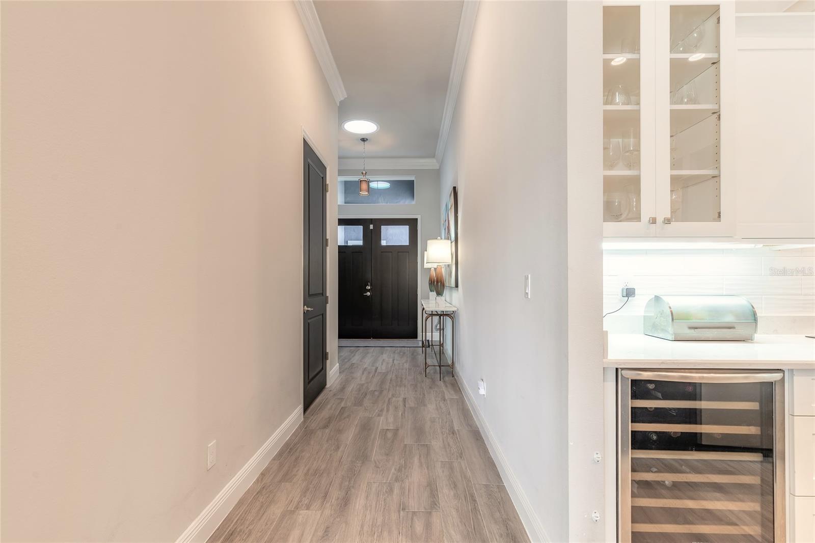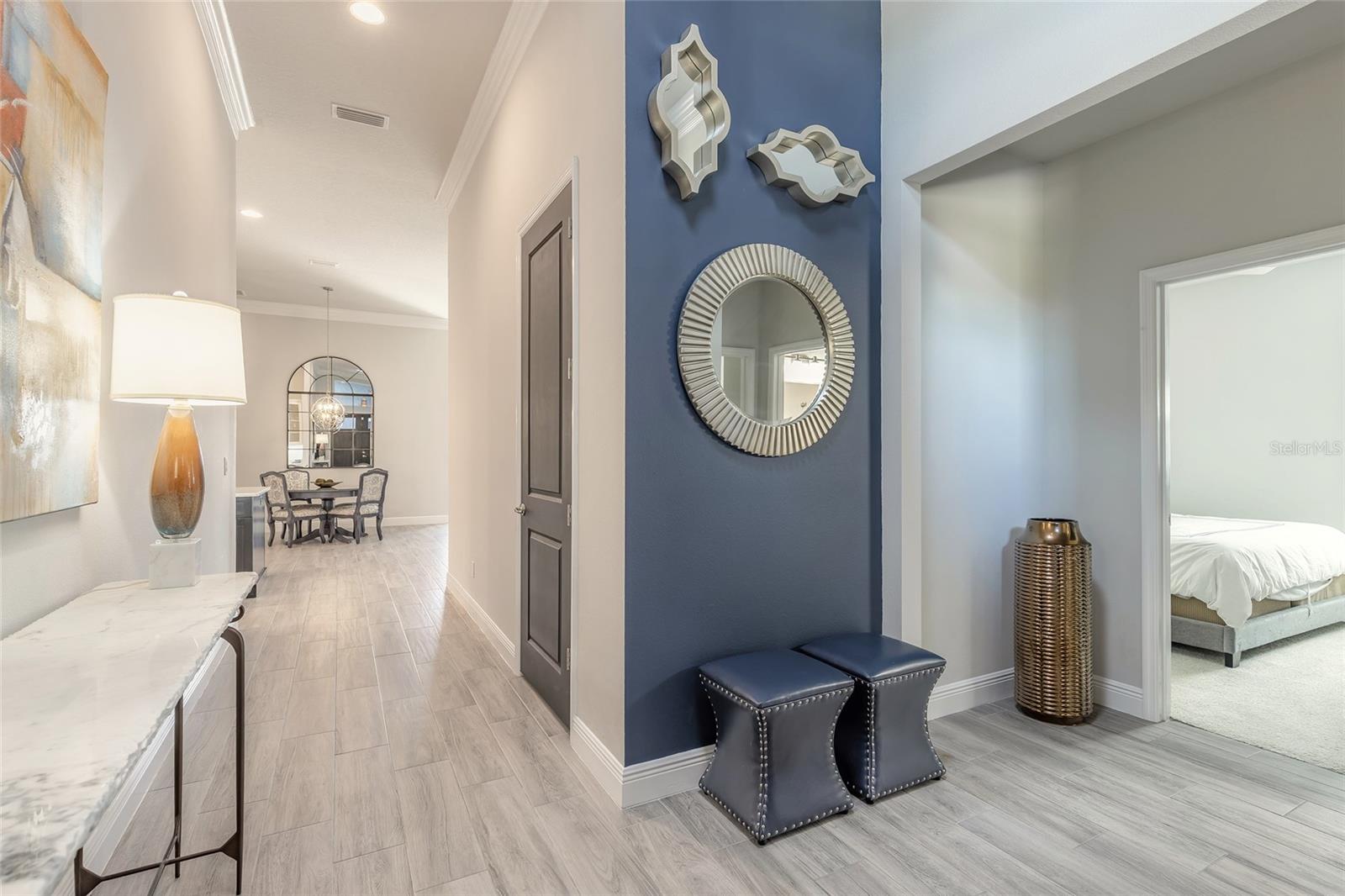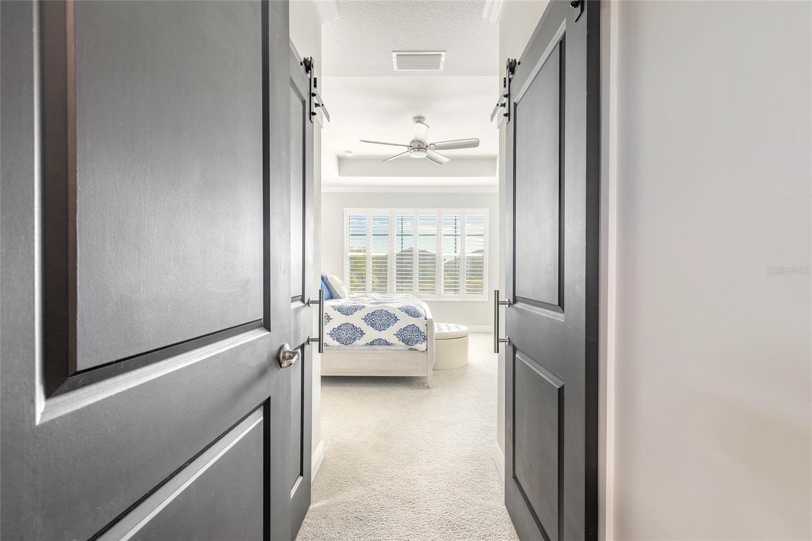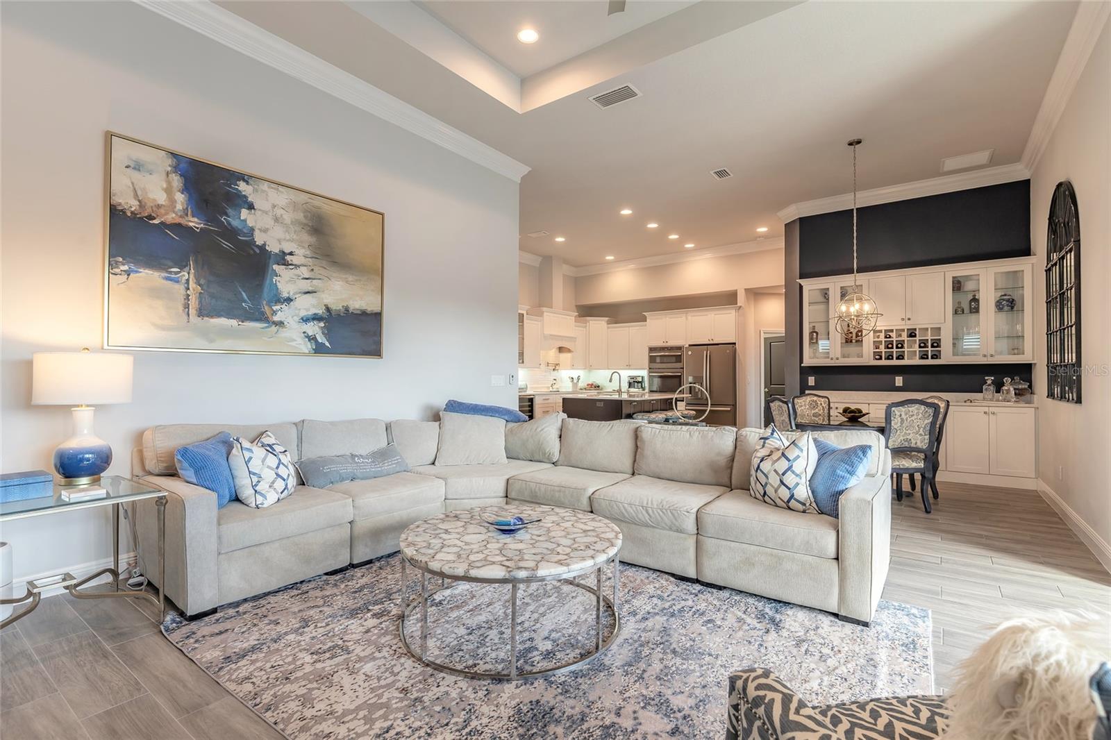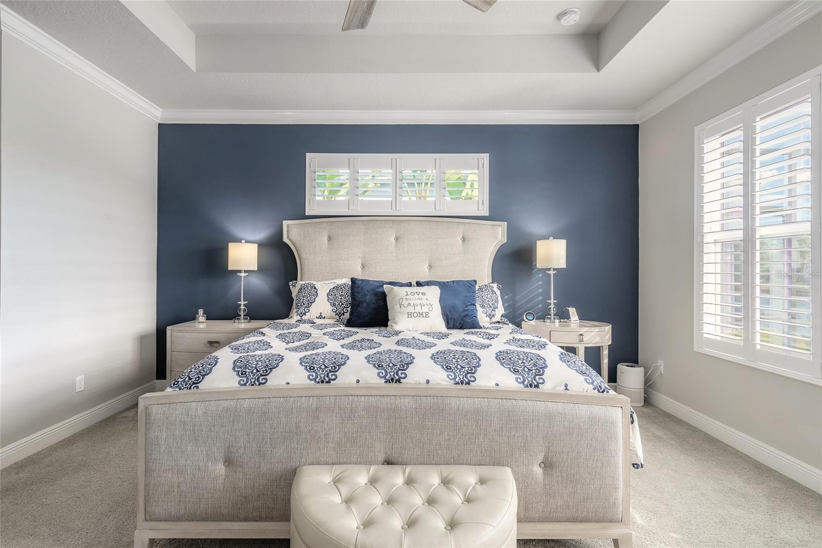 You have to see 3016 King Palm Drive to truly appreciate the level of quality and detail this home offers. From the moment you arrive, the oversized paver driveway and lush, mature landscaping set the tone and warmly invite you in. Through the double front doors, you’re greeted by beautiful tile flooring, soaring 12-foot ceilings enhanced by a sun tunnel, and elegant double crown molding throughout the main living areas. This Johnson-built 4-bedroom, 3-bath pool home is perfectly positioned on the water and loaded with upgrades. Tile flooring extends through the living areas and bathrooms, with plush carpeting in all bedrooms. The open kitchen features striking dual-tone white and espresso cabinetry, slate appliances, a wine refrigerator, and a spacious layout ideal for entertaining. Adjacent is a stunning built-in bar with glass cabinet doors, seamlessly flowing into the living room with tray ceilings, recessed lighting, and a dramatic built-in fireplace with TV niche that creates a warm, inviting ambiance. Large double glass sliders open to the screened lanai, effortlessly blending indoor and outdoor living. Step outside to your private retreat featuring a heated pool with expansive sun shelf and spa, tranquil water views, and a soothing fountain just beyond the backyard. The spacious lanai is finished with cool decking for both comfort and style. Electric shades on the sliders and plantation shutters throughout the home add both convenience and elegance. Additional highlights include a large laundry room with extra cabinetry, a two-car garage with epoxy flooring, 8-foot garage door, hybrid water heater, and water softener system, plus an additional full-size garage, also with epoxy flooring, perfect for extra vehicles, a workshop, or recreational toys. This home is further enhanced with a whole-house generator, 500-gallon propane tank, electric hurricane shutters, large kitchen pantry, and custom closets in the primary suite. Truly move-in ready. As part of Venetian Bay, you’ll enjoy access to pickleball and tennis courts, basketball court, miles of scenic trails, and a vibrant town center with a market, restaurant, spa, coffee shop, and fitness center. Golf enthusiasts will love the 18-hole championship golf course and clubhouse. All just minutes from Canal Street Historic District, Flagler Avenue, and the beautiful beaches of New Smyrna Beach. Fan chandelier in the office, Tesla charging station, and refrigerator in the garage does not convey. All information is intended to be accurate, however not guaranteed.