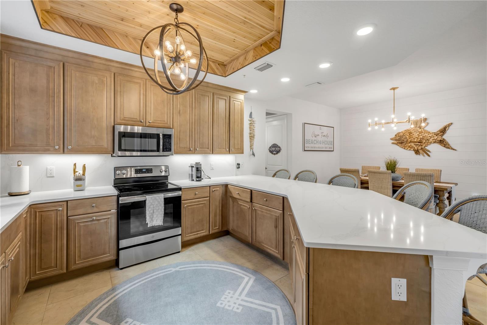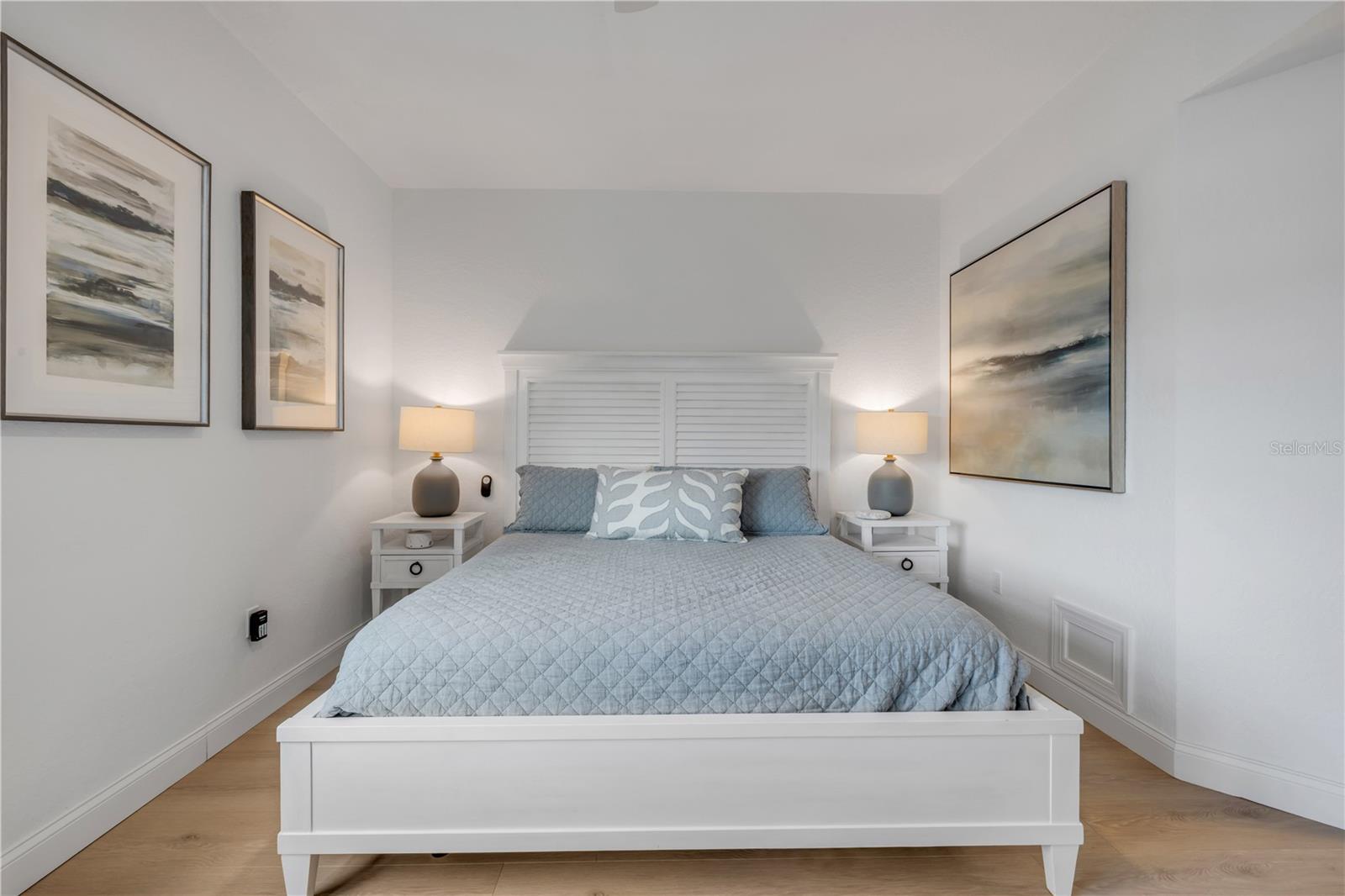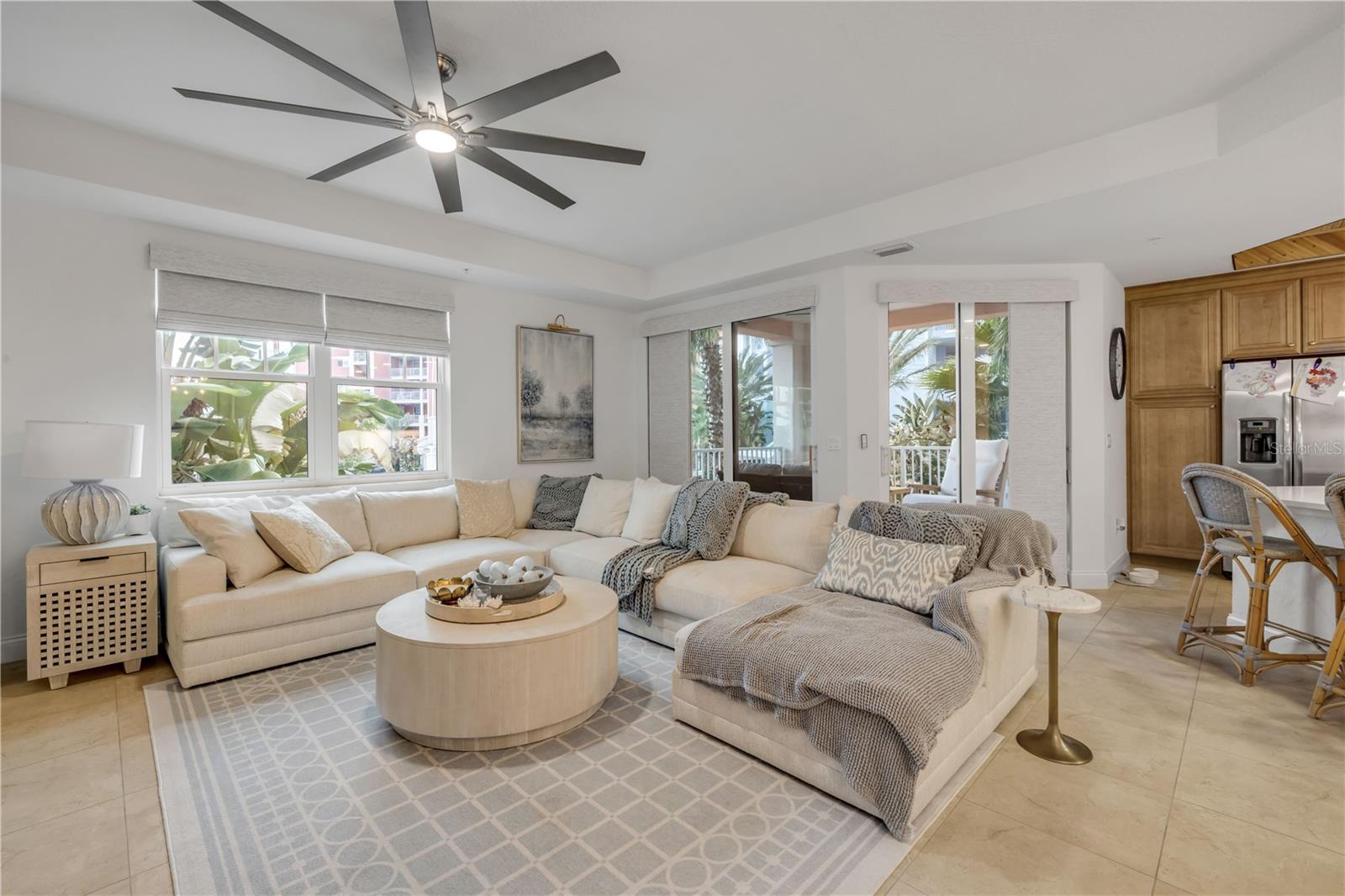 Welcome to one of the most desirable residences in Riverwalk. This north-facing, second-floor corner unit offers exceptional views, privacy, and an unbeatable location in New Smyrna Beach. Perfectly positioned on the North Causeway, this 3-bedroom condo places you just minutes from the dining, shopping, festivals, and charm of Canal Street and Flagler Avenue, while also providing effortless access to both the river and the beach. Even better, the unit includes a deeded 25-foot boat slip making spontaneous days on the water easier than ever. Inside, you’ll find an open and airy floor plan with high ceilings throughout and thoughtful upgrades that set this condo apart from the rest. The kitchen has been beautifully enhanced with custom cabinetry extending to the ceiling, pull-out shelving, soft-close features, and a tongue-and-groove tray ceiling that perfectly complements the design. New custom countertops run throughout the home, along with all-new lighting fixtures and ceiling fans for a fresh, modern feel. The spacious dining area features a stylish shiplap accent wall—ideal for hosting family dinners or entertaining guests. Only the second-floor corner units offer three private balconies, providing multiple spaces to relax and take in the views. The rear balcony is outfitted with newly installed electronic retractable screens for added comfort and versatility. The primary suite is a true retreat with balcony access, a walk-in closet, and an en-suite bath featuring double vanities, a walk-in shower, and a soaking tub. A recently completed full renovation of the guest bathroom adds even more value and style. Additional highlights include hurricane impact windows with custom Roman blinds, an in-unit laundry room with storage space and full-size washer and dryer, plus a water softener and purification system. Riverwalk is a direct waterfront, gated community offering resort-style amenities including a pool, tennis courts, clubhouse, fitness center, and an active social calendar. With premium upgrades, a deeded boat slip, three private balconies, and one of the best locations in the community, this is a rare opportunity to own a standout property in one of New Smyrna Beach’s most sought-after waterfront communities.