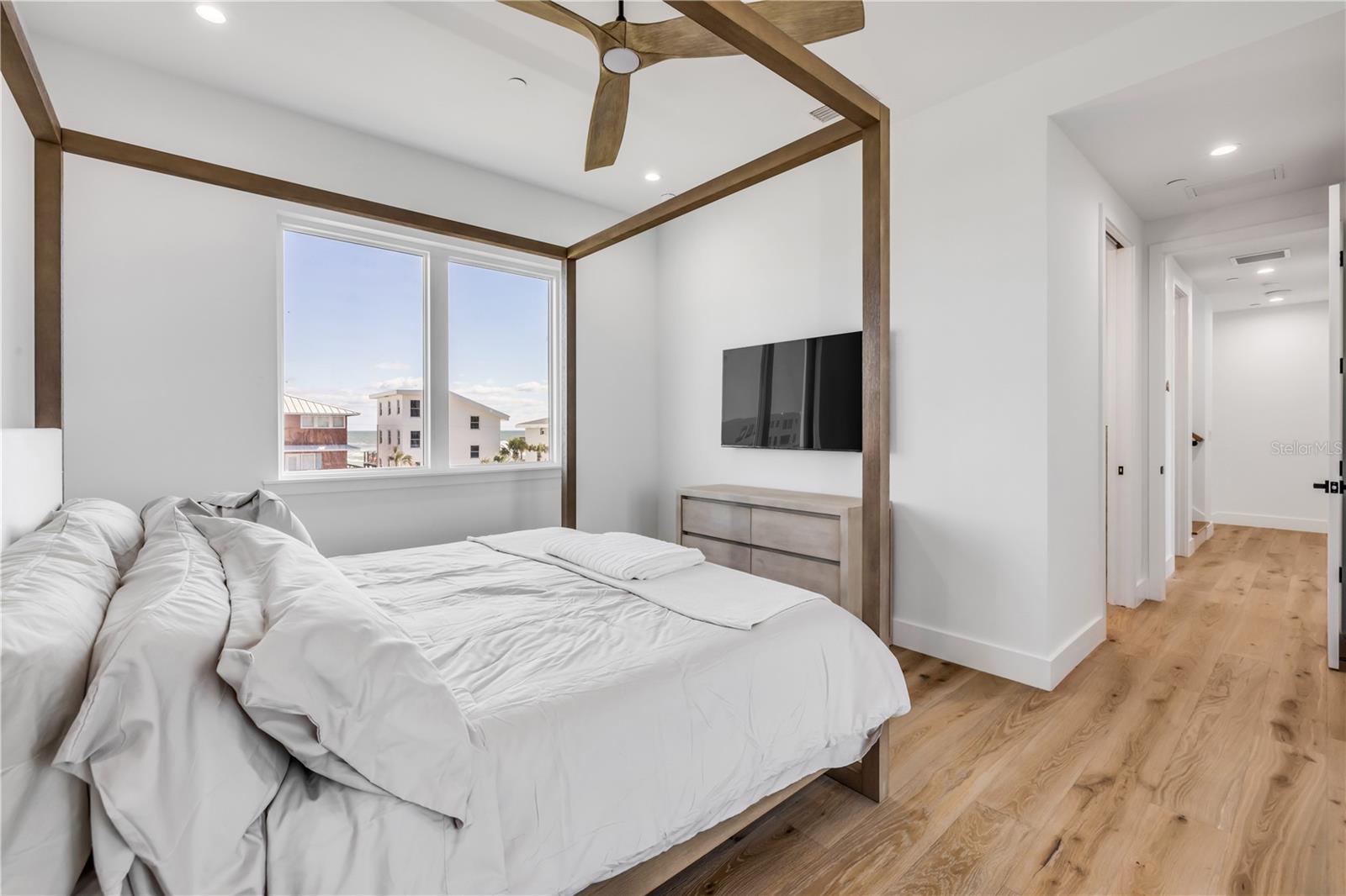 Welcome to coastal living at its finest along New Smyrna's No-Drive Beach. This 3bed 2bath three-story residence, completed in 2024, offers a open-concept floorplan designed to maximize both comfort and functionality. Concrete block construction on the ground level with elevated living space above, plank flooring throughout, impact-rated windows and doors, and expansive living areas filled with natural light make this home ideal for both everyday living and entertaining. The gourmet kitchen showcases solid surface countertops, a large center island with seating, stainless steel appliances, custom cabinetry, and designer lighting, all flowing into the spacious living and dining areas. Multiple private balconies provide beautiful views and coastal breezes, while the thoughtfully designed layout offers generously sized bedrooms including a stunning primary suite with spa-like ensuite bath featuring dual vanities and a walk-in glass shower. Indoor-outdoor living is enhanced with ample balcony space perfect for relaxing after a day at the beach. Located just steps to the Atlantic Ocean and the Intracoastal Waterway and a short walk or golf cart ride to shopping, dining, and entertainment on Flagler Avenue. Nearby attractions include Canaveral National Seashore, JB’s Fish Camp, local parks, kayak launches, fishing areas, marinas, and waterfront dining. Residential fire sprinkler system completed in 2024 per Volusia County Property Appraiser. Ideal for a primary residence, second home, or investment property.