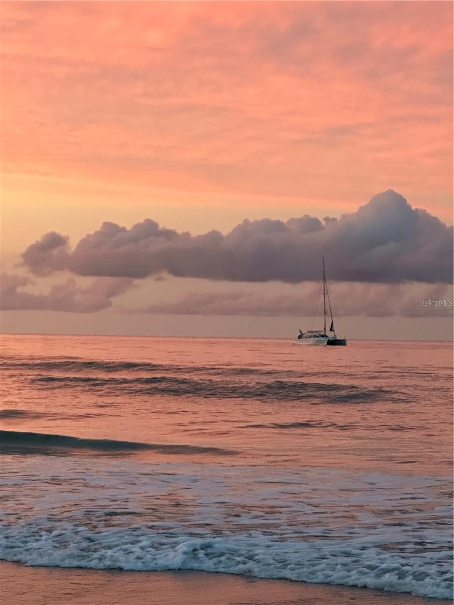 Experience an ideal beachside retreat at Oceanwalk Condominiums in New Smyrna Beach, directly across the street from the ocean! This fully furnished two-bedroom unit is in the best building in the complex with solid reserves and no assessments. Enjoy beautiful sunset views from the newly tiled balcony, surrounded by natural wooded trails, a peaceful spot to start your day with coffee or relax in the evening. Just a five-minute drive to Canaveral Seashore State Park, this condominium offers a tranquil escape with lush, private views. Inside, you'll find stylish upgrades, including tile and wood floors, charming wainscoting and attractive wood wall accents, creating a warm, inviting atmosphere. The modern kitchen features sleek quartz countertops, ideal for meal prep, while the spacious living area and comfortable bedrooms provide ample space to unwind. The primary bath offers a luxurious jetted tub and a separate shower, creating a spa-like experience. Plus, a new air conditioner keeps the unit cool all year long! Oceanwalk's resort-like amenities include two outdoor pools, two fitness centers, tennis courts, a scenic nature trail and private no-drive beach access, making every day feel like a vacation. Conveniently just across the parking lot from the fitness center, pool and tennis courts, this pet-friendly community allows weekly rentals, offering great short-term rental potential or the ideal personal getaway. Experience the amazing sunsets from the back porch. Close to the beach walkover.