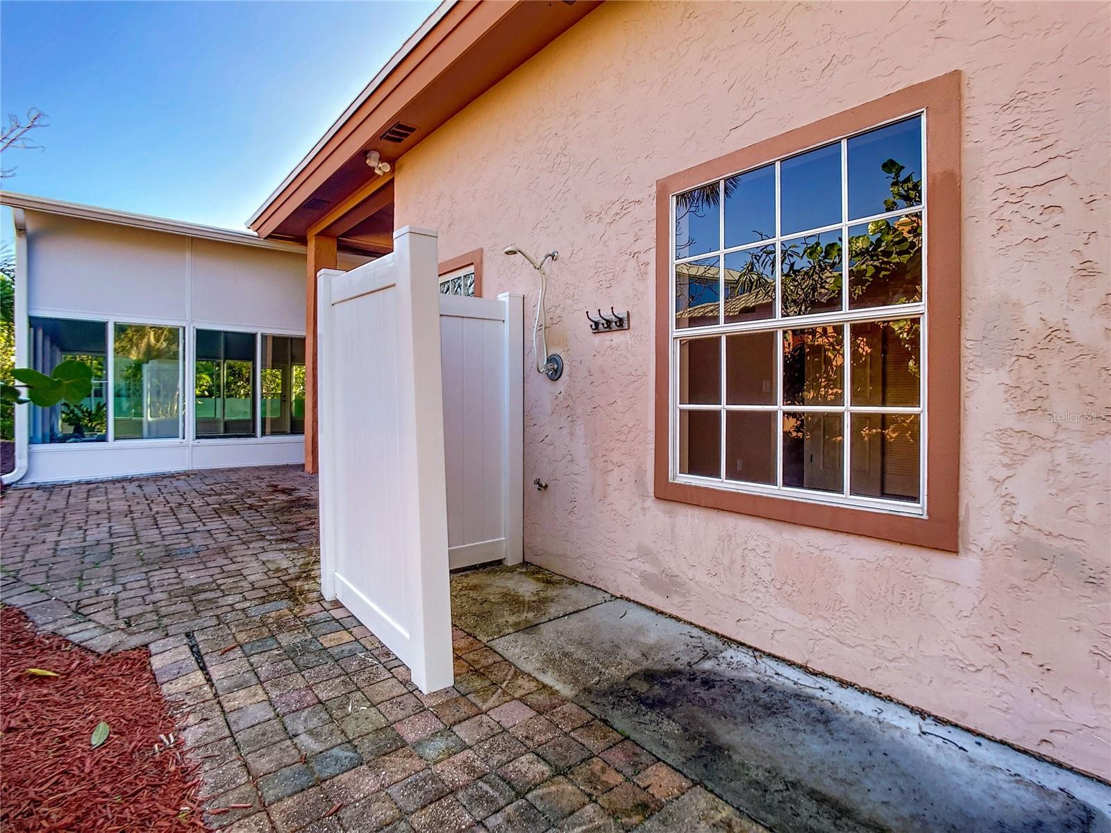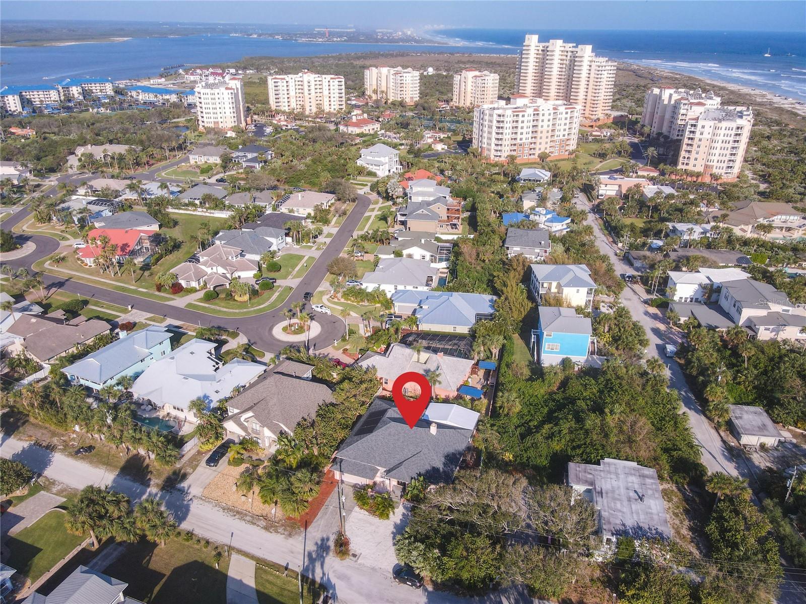 Executive pool home, one house from the beach walk over in exclusive north beach. This home is part of the Minorca Amenities that include clubhouse, tennis courts, work out gym and fishing dock on the Intracoastal. The glass enclosed pool has patio room for Bar-b-ques and great parties. Curb appeal is marvelous with stately columns. Ceilings are 12 ft plus giving a feeling of elegance. This 3 bedroom 2 and half bath home also has an office with granite counters. There is also a dry bar and a wood burning fireplace. The great room layout includes granite counters, dropped pot lighting and very large amounts of kitchen storage. The master bedroom is 27 feet longs and its master bath is very large with a garden tub and a shower and a private toilet stall. The powder room off the living room is perfect for entertaining. House has R-30 attic insulation and has been recently painted on the interior. This Inlet Villas Subdivision is part of the Minorca subdivision whish is oceanfront and riverfront with rights of use for each. Room marked Florida room is the enclosed pool area. Roof is less than 3 years old. 200 amp service. Natural gas is available on Ocean Dr