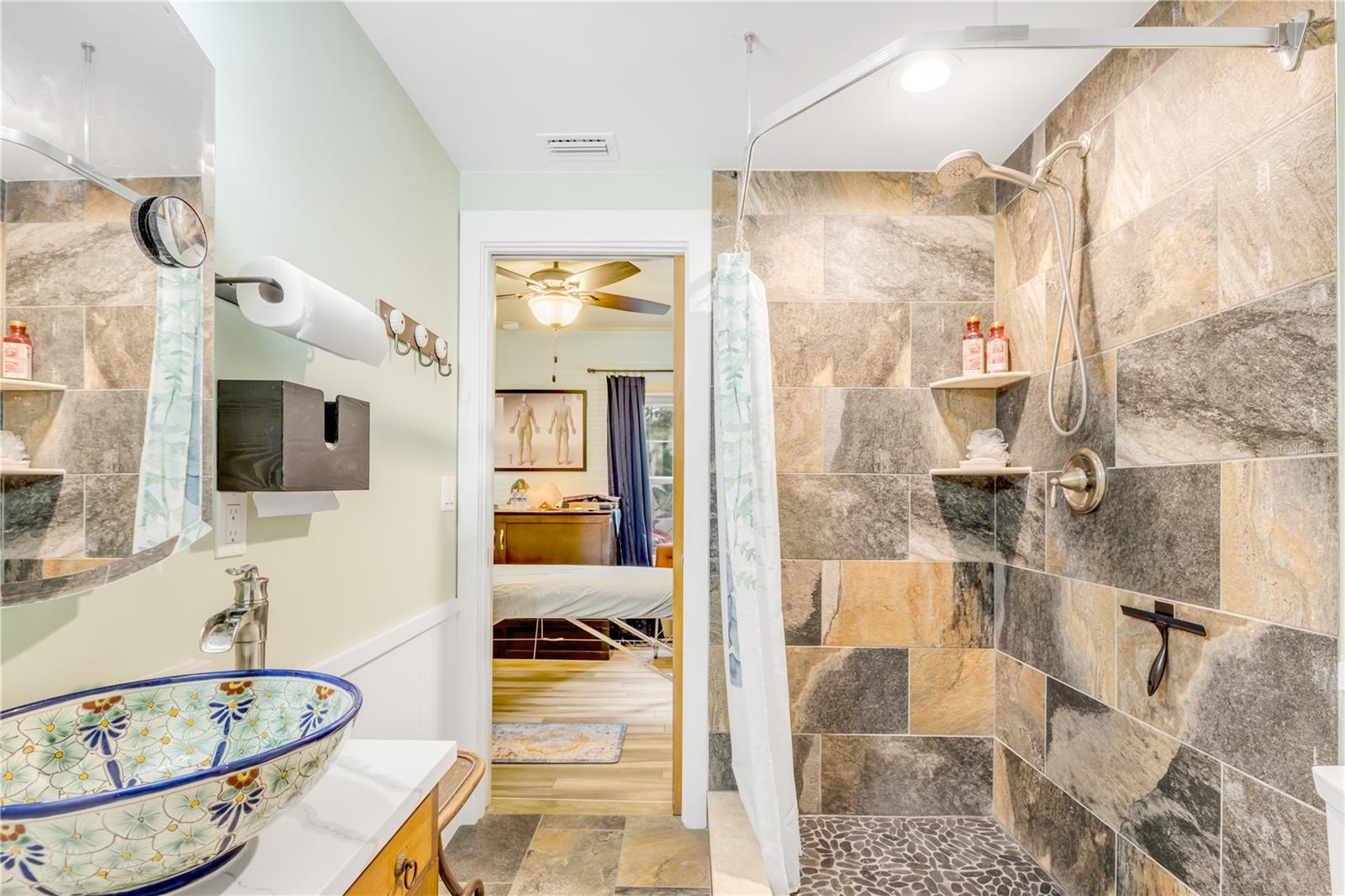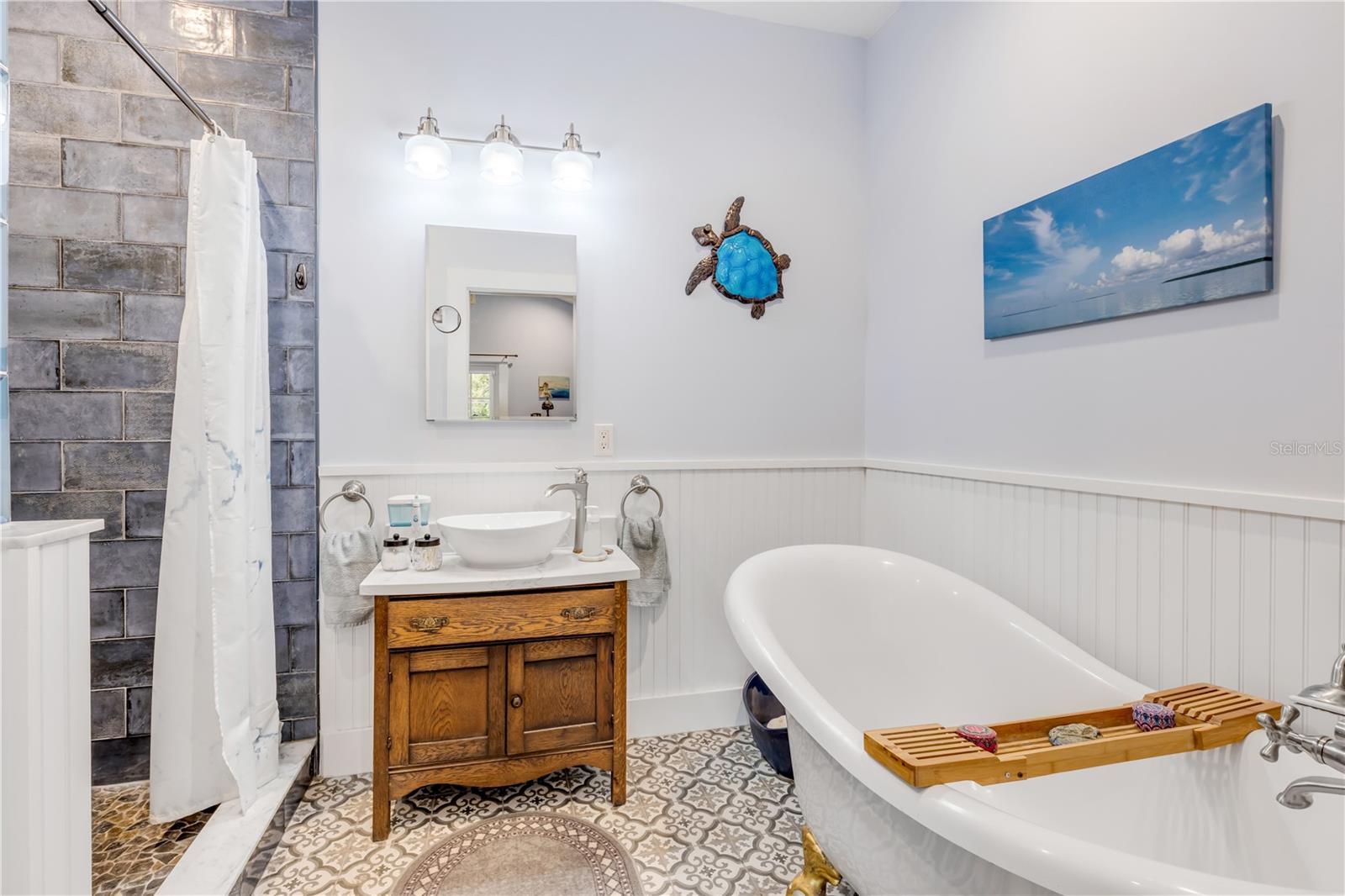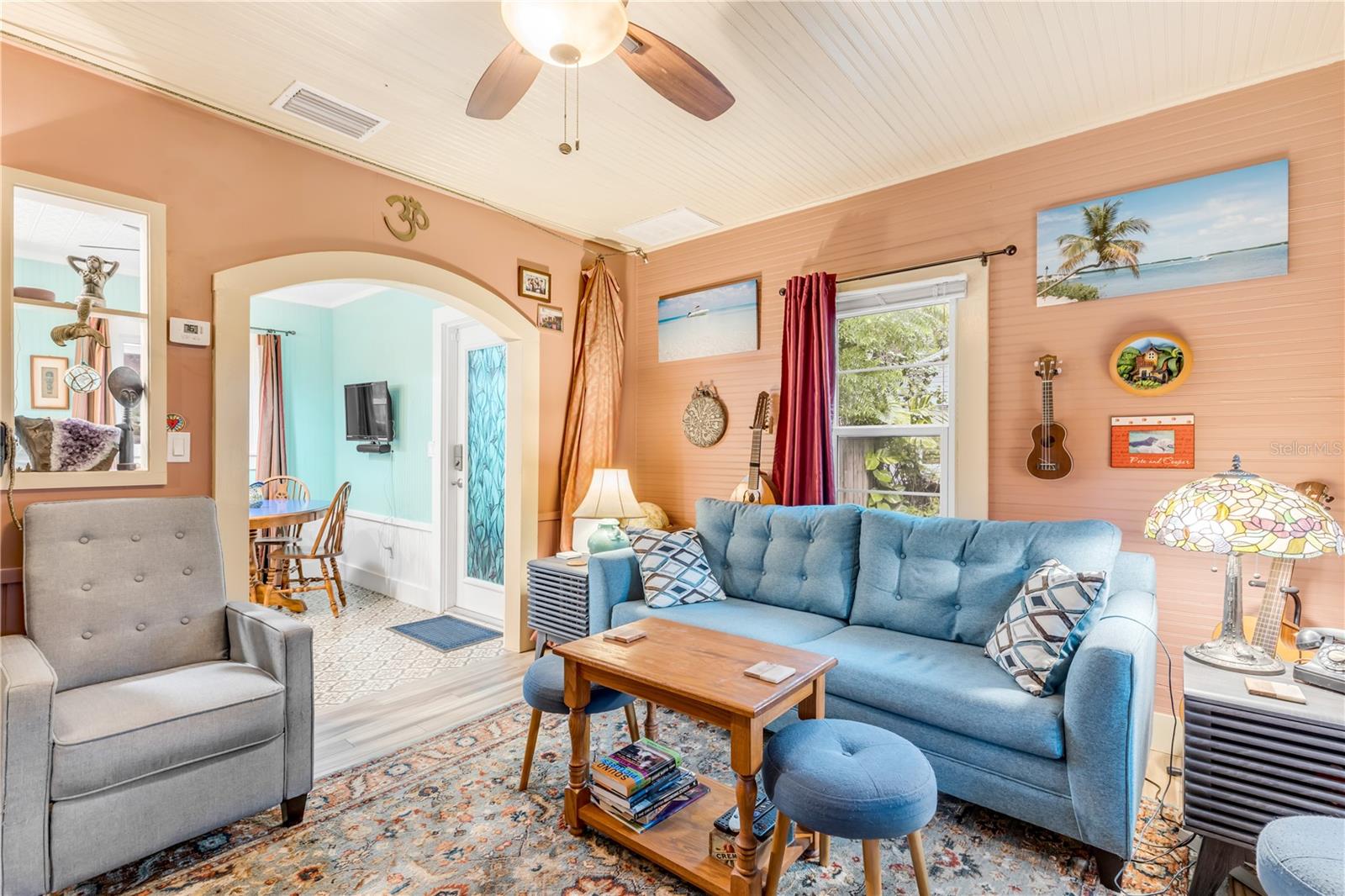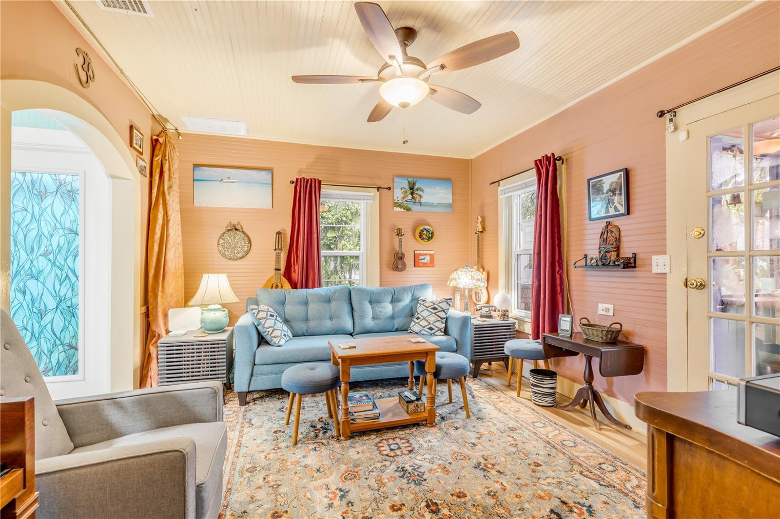 Beachside home renovated 2020 yr, new plumbing, HVAC, electric etc, 2 blocks north of Flagler Avenue. Enjoy a quiet neighborhood walk to the beach, Flagler Ave shops and restaurants. The sellers maintained the 1920 "heart" of this lovely home and modernized it to today's standards with 2 A/C systems, one up and one down. This home has been craftsman renovated from top to bottom with quartz countertops in the kitchen and bathrooms, wind rated windows throughout, central vacuum for both floors, master bedroom sink and mini-fridge, washer and dryer upstairs, smart outdoor lighting, whole house water filtration, zen garden with outdoor shower, bonus/flex room.