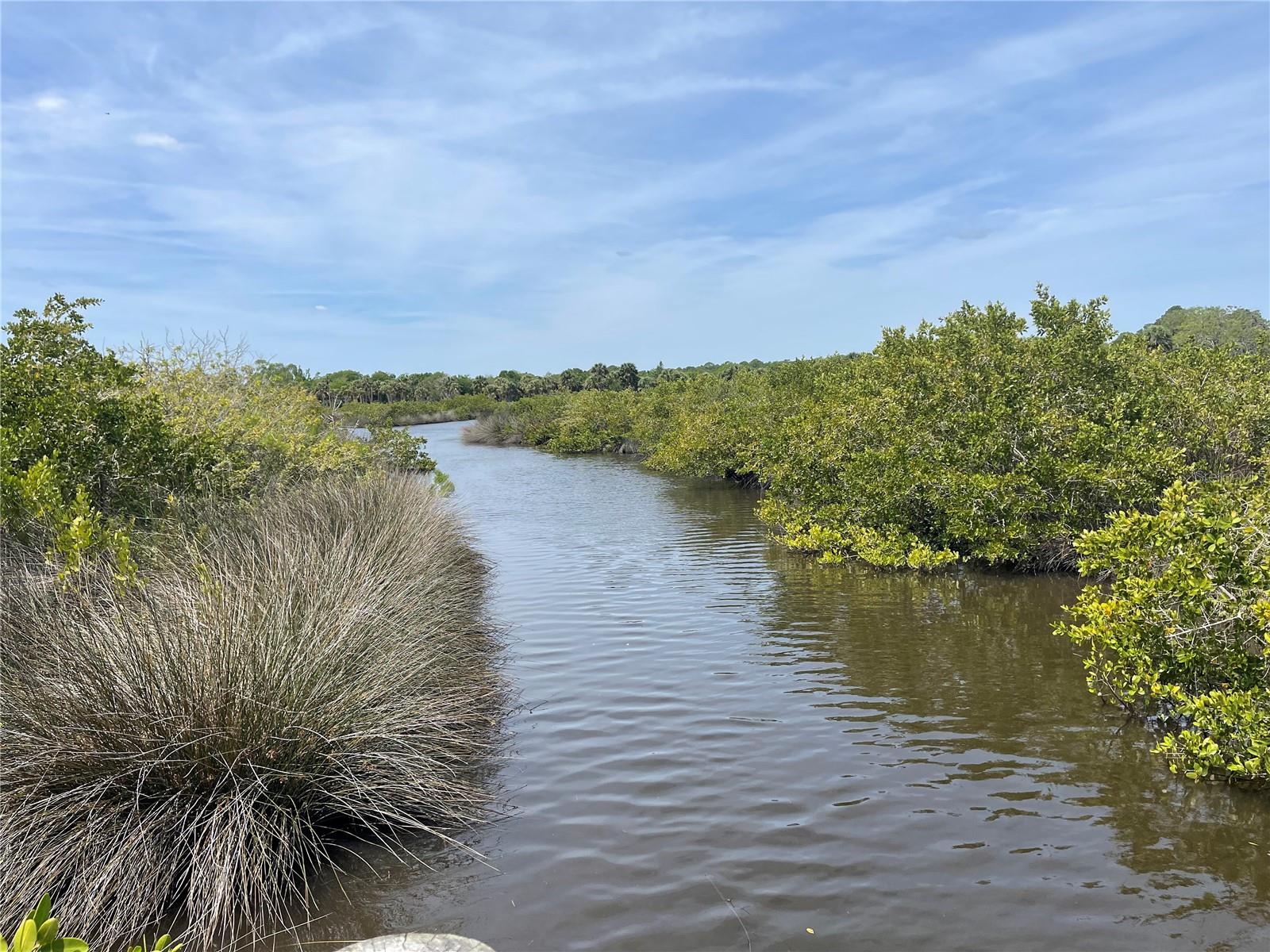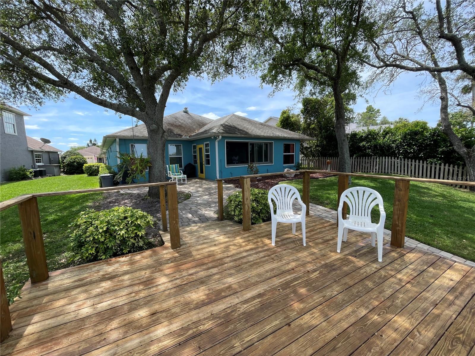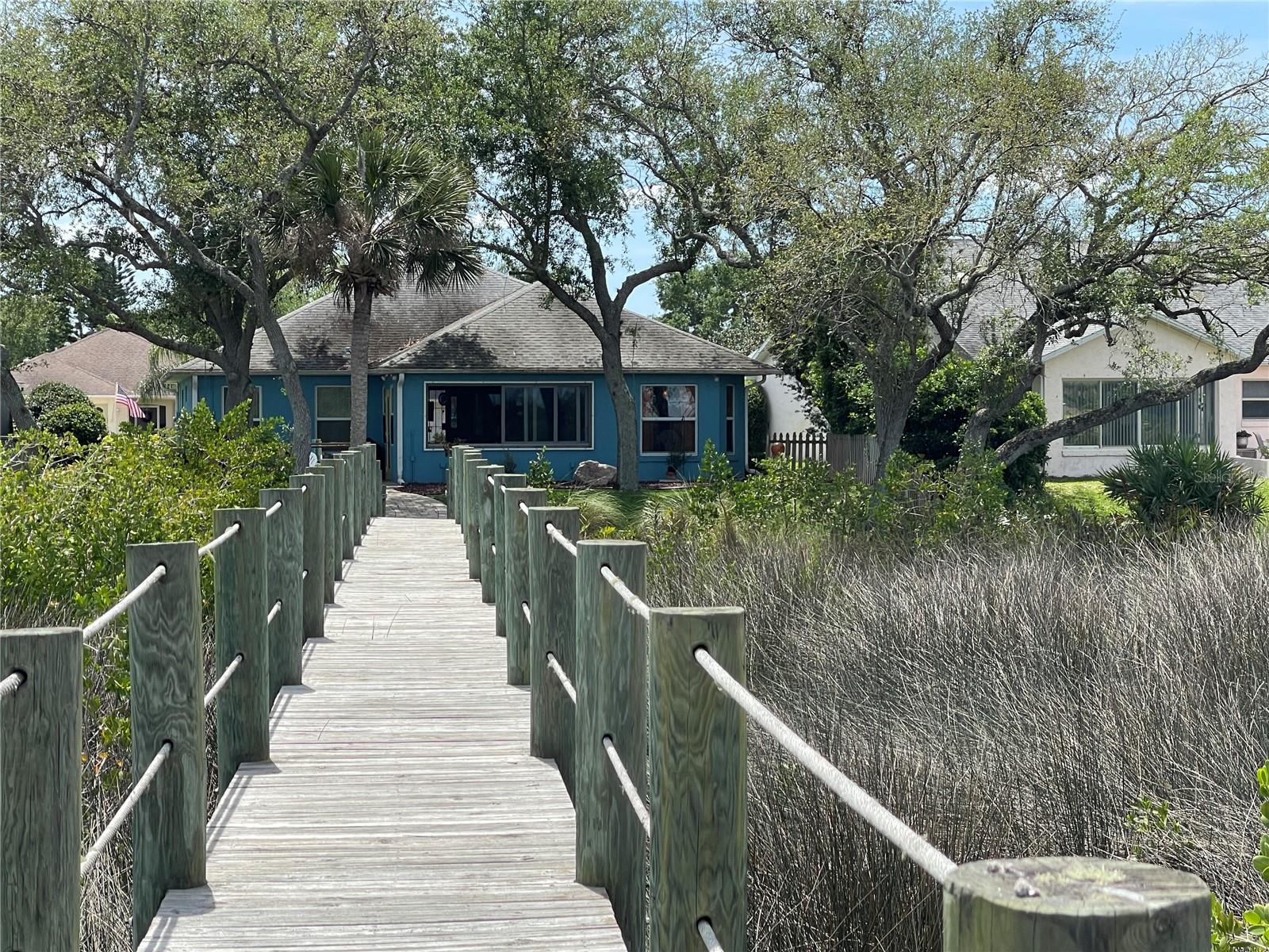 Step into the serenity of waterfront living with this exquisite 3-bedroom, 2-bathroom sanctuary nestled in the peaceful Tymber Trace subdivision. Set on a tranquil cul-de-sac, this home seamlessly combines sophistication with comfort. As you enter, you're greeted by a spacious living room that flows effortlessly into the largely enclosed Florida Room, offering a serene retreat. The large tile flooring leads you to a meticulously designed kitchen boasting tasteful maple cabinets, granite countertops, and newer appliances (3 yrs), along with ample storage space. The master bathroom features an extended shower, dual sinks, and a generously sized walk-in closet with a safe room feature, complemented by handicap accessible doors and shower. Step out to the Florida room and immerse yourself in the picturesque backyard adorned with natural Florida vegetation, a deep well irrigation system, and a remarkable 198’ long walkway dock. This dock, complete with a 10x20 deck overlooking the main canal (plus secondary canal), offers access to the Intercoastal Waterway, Ocean, and Turnbull Creek. Equipped with electric hookups, solid rubber (peel and seal) roof decking (2011), and a retractable awning controlled by remote, it also boasts riparian rights extending 15ft beyond the dock. Further enhancing convenience and comfort, this home features newer Washer/Dryer (1 yr), A/C unit (3 yrs), hurricane-rated windows, easy attic access, and low utility rates (all inclusive). With a 2-car garage and more amenities to offer, rest assured knowing this home remained unaffected by hurricanes. Ideally situated less than a mile from the New Smyrna Beach Golf Course and close to local restaurants and shopping centers, this residence offers both luxury and convenience. Experience the epitome of waterfront living in this spectacular home. Two Tax ID Parcel Numbers: 7313-23-00-0300, 7313-00-00-0247.