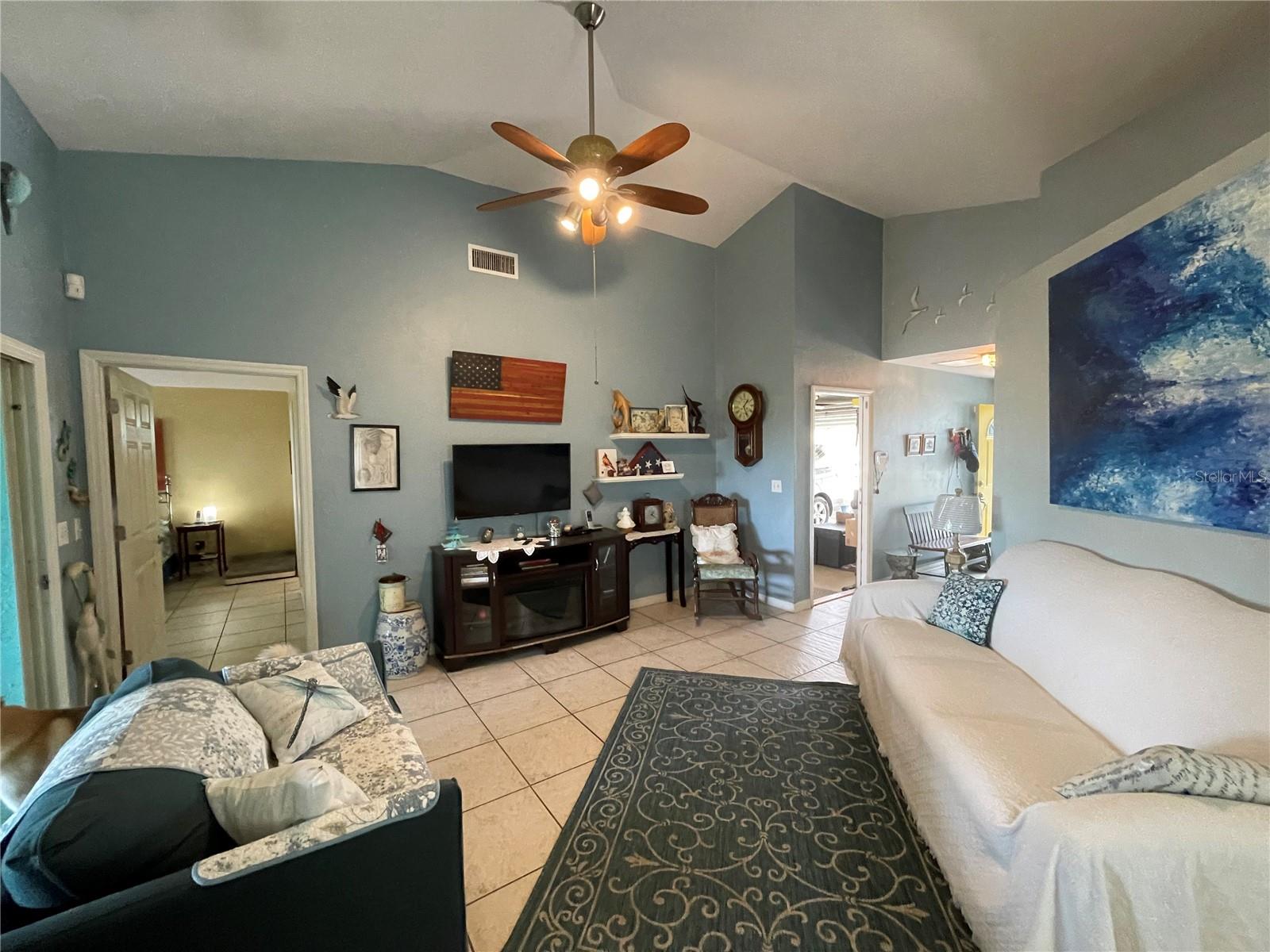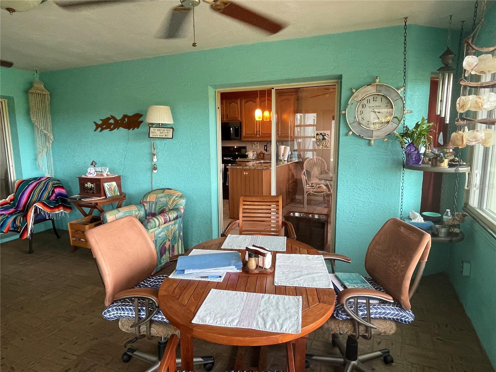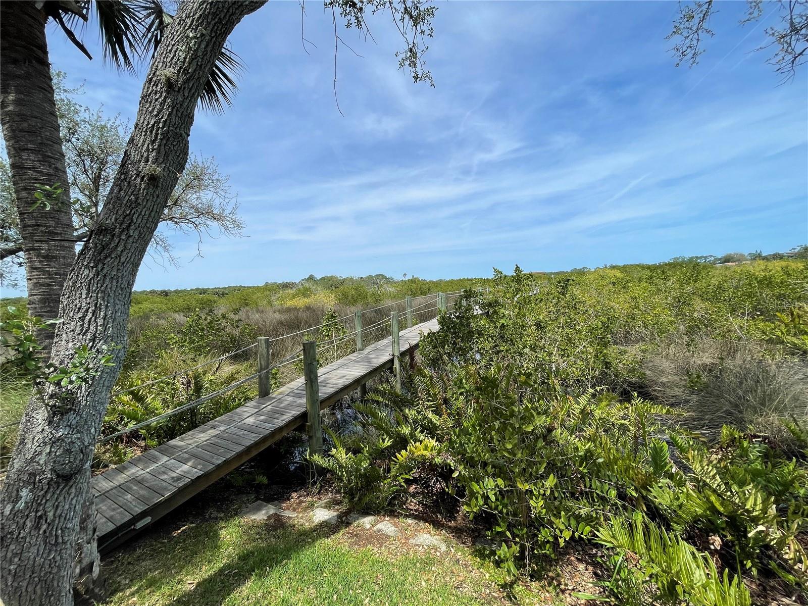 Step into the serenity of waterfront living with this exquisite 3-bedroom, 2-bathroom sanctuary nestled in the peaceful Tymber Trace subdivision. Set on a tranquil cul-de-sac, this home seamlessly combines sophistication with comfort. As you enter, you're greeted by a spacious living room that flows effortlessly into the largely enclosed Florida Room, offering a serene retreat. The large tile flooring leads you to a meticulously designed kitchen boasting tasteful maple cabinets, granite countertops, and newer appliances (3 yrs), along with ample storage space. The master bathroom features an extended shower, dual sinks, and a generously sized walk-in closet with a safe room feature, complemented by handicap accessible doors and shower. Step out to the Florida room and immerse yourself in the picturesque backyard adorned with natural Florida vegetation, a deep well irrigation system, and a remarkable 198’ long walkway dock. This dock, complete with a 10x20 deck overlooking the main canal (plus secondary canal), offers access to the Intercoastal Waterway, Ocean, and Turnbull Creek. Equipped with electric hookups, solid rubber (peel and seal) roof decking (2011), and a retractable awning controlled by remote, it also boasts riparian rights extending 15ft beyond the dock. Further enhancing convenience and comfort, this home features newer Washer/Dryer (1 yr), A/C unit (3 yrs), hurricane-rated windows, easy attic access, and low utility rates (all inclusive). With a 2-car garage and more amenities to offer, rest assured knowing this home remained unaffected by hurricanes. Ideally situated less than a mile from the New Smyrna Beach Golf Course and close to local restaurants and shopping centers, this residence offers both luxury and convenience. Experience the epitome of waterfront living in this spectacular home. Two Tax ID Parcel Numbers: 7313-23-00-0300, 7313-00-00-0247.