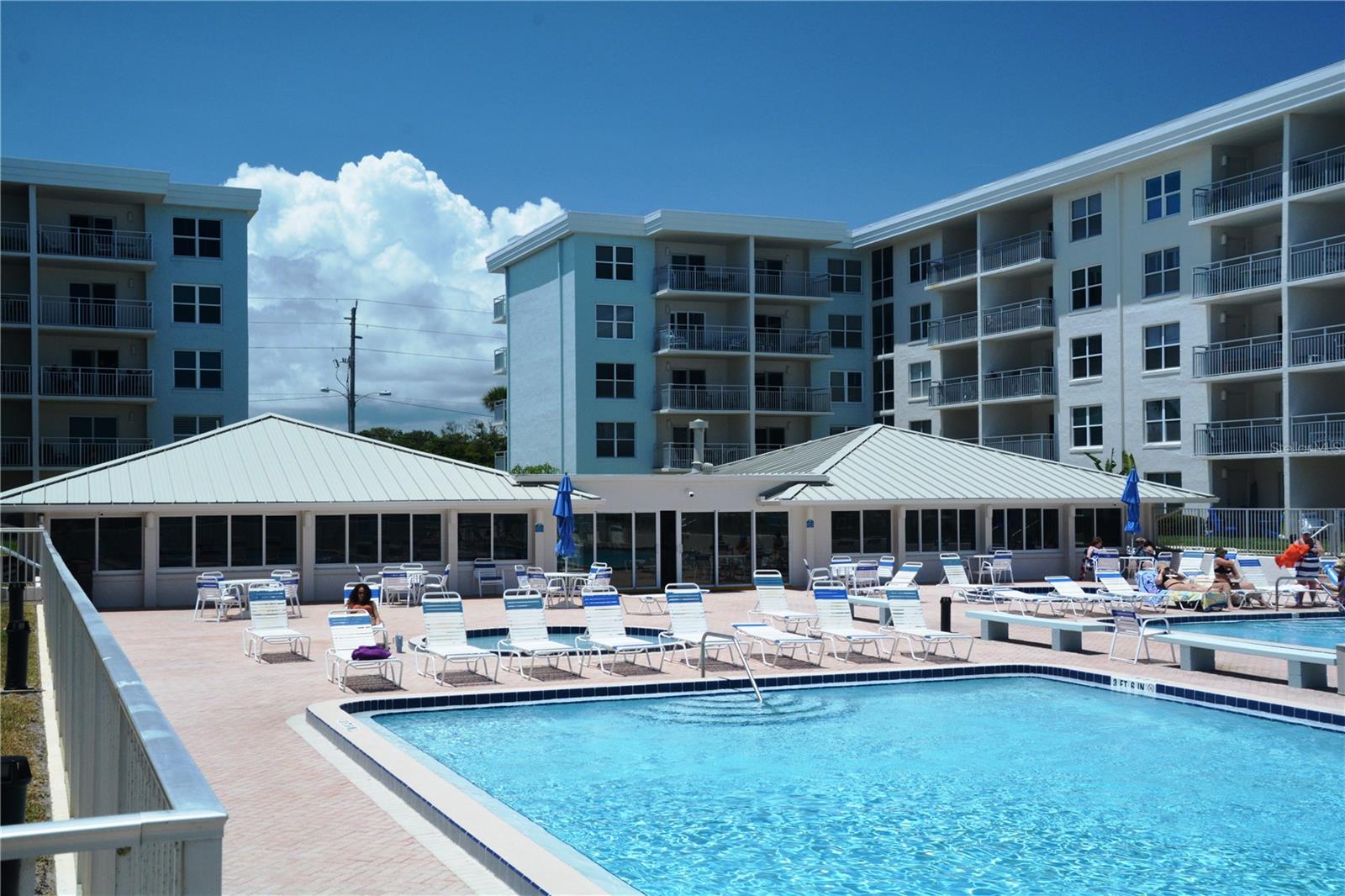 Enjoy the relaxation that only lounging in the shade while poolside with a full view of the ocean spread out before you can bring! This condo offers two bedrooms and two full baths in a great location in the complex with a highly desirable first floor setting – giving you easy, immediate and very close access to the beach, and pool and clubhouse amenities. No stairs to navigate or elevators to wait on! No deferred maintenance - Condo has been kept up and well maintained. Plantation shutters, newer flooring, fully furnished with all appliances. Truly turn-key ready for your new beach good times and adventures! Double clubhouse with two large heated pools, kiddie pools, and shuffle board courts. Comes with your own assigned parking space. Enjoy sunrise and sunset walks, beach biking, surfing, boogie boarding, charter and surf fishing, and rocket-launch viewing – along with a wide variety of restaurants and night life entertainment ----- all from this great beach condo. Five miles from the Canaveral National Seashore. Two miles to Flagler Ave and the New Smyrna night life. Ninety minutes or less to Orlando and Orlando International Airport, Disney World, Daytona Speedway, Universal, Sea World, Aquatica, Volcano Bay. Approximately two hours to Legoland, Tampa, and Busch Gardens. Rental friendly complex offers great rental potential to offset costs.
