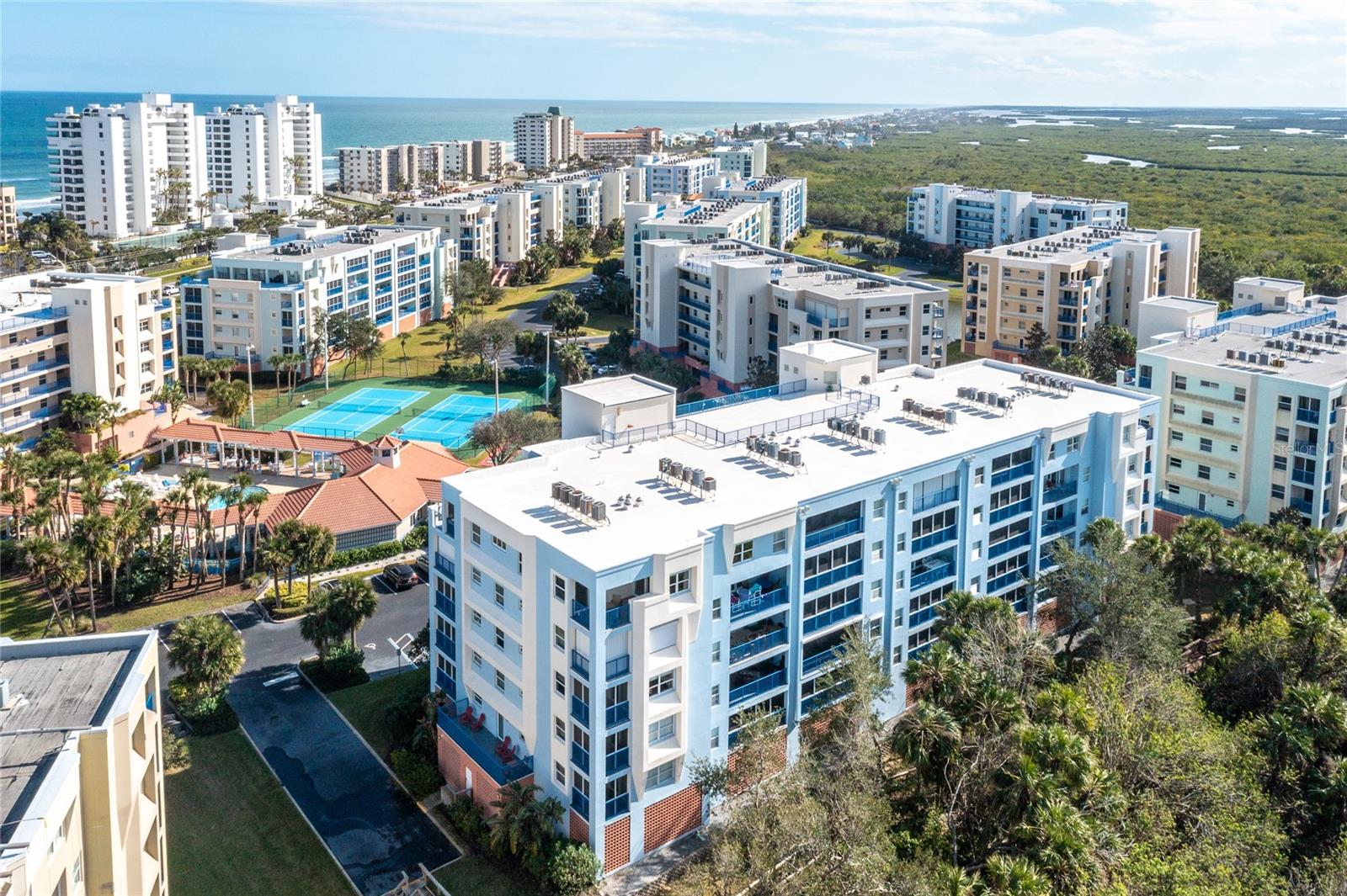 The Oceanwalk in New Smyrna Beach is the perfect luxury beachside retreat with tons of amenities to keep you active! This beautiful gated community is located at the south end of the peninsula, just across from the no drive beach. If you're looking for a great vacation rental, 2nd home or even a primary residence, this condo is a must see! This spacious condo is a corner unit on the 2nd floor, it is one of the largest units over 1700 sqft. It is located across from the clubhouse, the shuffleboard court, tennis courts, gym, and the largest of 2 pools. It features 3 bedrooms and 2 full bathrooms, fully furnished and equipped for short term rental, all new appliances, washer, dryer, HVAC, new tile flooring throughout, new linens, towels, curtains, LED lighting, large open floor plan with ample seating and 3 balconies, where you can find your morning inspiration or reflect on your day as you enjoy the brilliant sunrises and sunsets. The kitchen is perfect for preparing your beach snacks or a large meal to entertain family and friends. Immerse yourself in the salt life of NSB in tranquility on the south side near Canaveral seashore or spend the day shopping and enjoying delicious food from the local restaurants on Flagler Ave and Canal St. Don't miss out on this opportunity to own a piece of beachside paradise! This condo comes turn key and has it all!