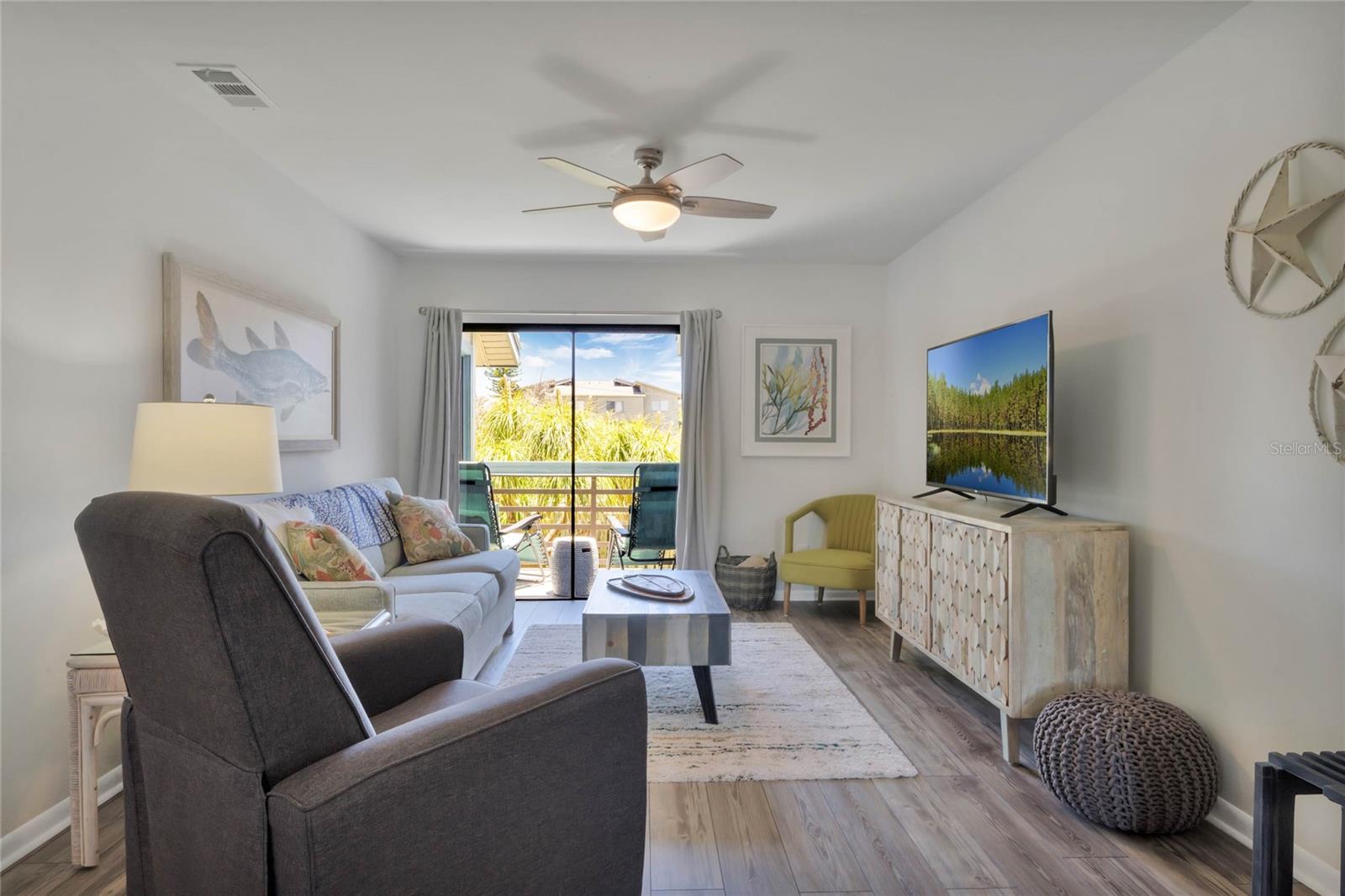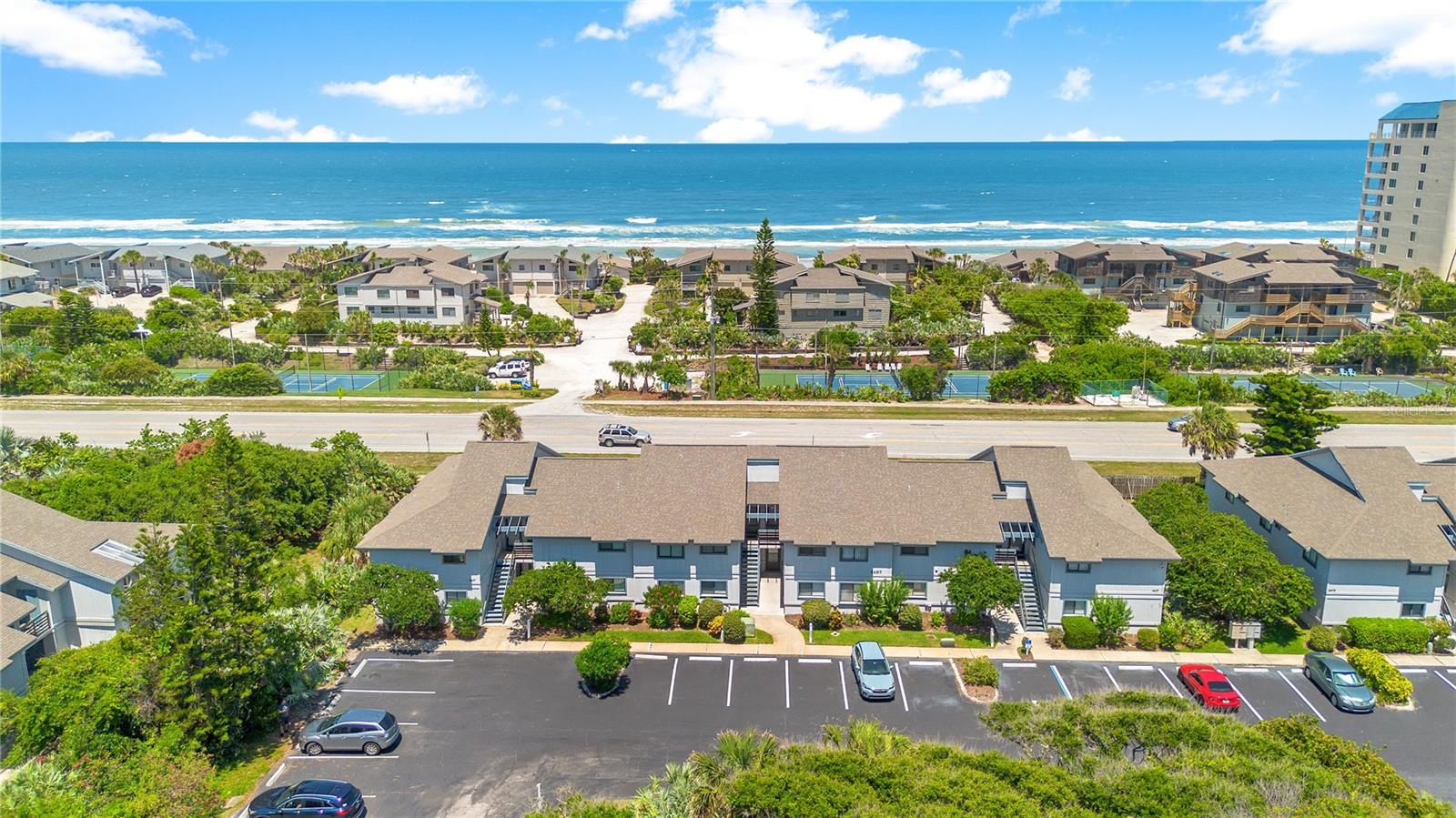 Welcome to the Beach! This active Short Term Rental is beautifully decorated and perfect as an investment, second home, or as your primary home! Enjoy the value added through high grade impact resistant windows and sliding doors, which were installed in 2023. Updated Kitchen and Bath is beautiful and furniture is negotiable! So many community features include 3 community pools (1 is heated), fitness center, sauna, pickleball courts, tennis courts, shuffleboard, walking trails, planned activities, and more! HOA includes cable and internet, too! All this and you can walk to the beach and enjoy all the amazing restaurants that New Smyrna Beach has!