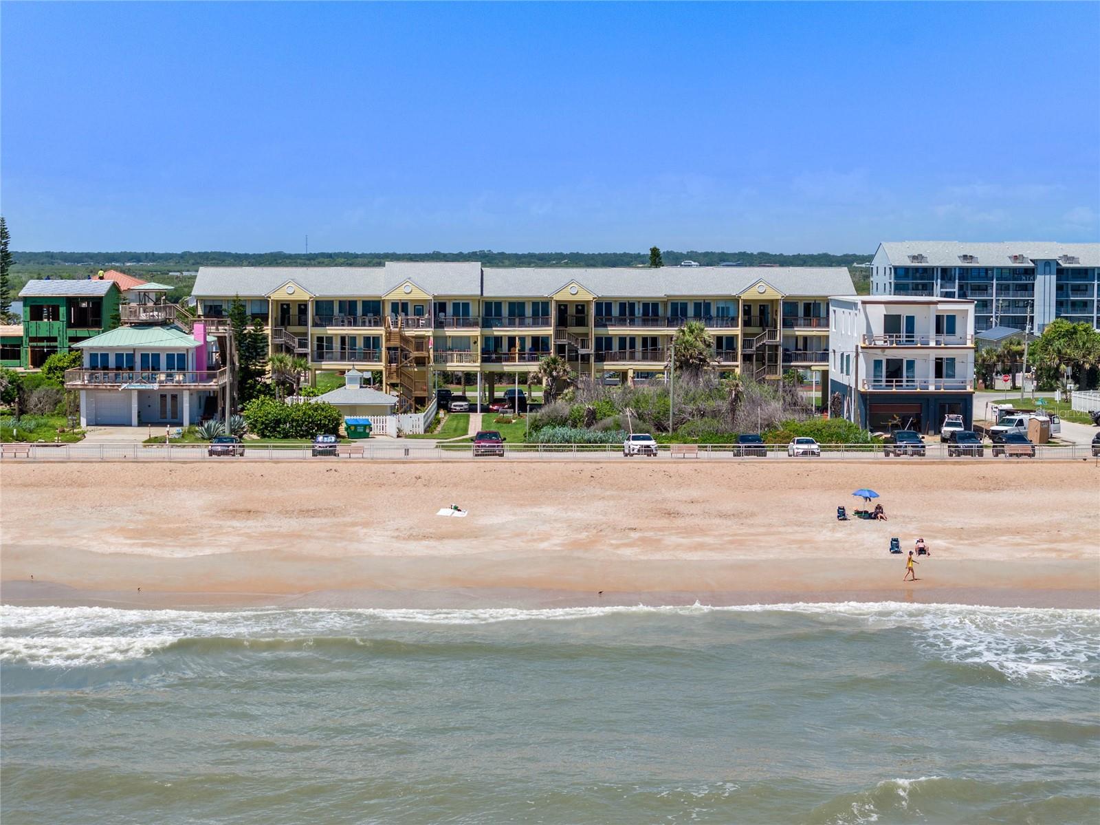A one-of-a-kind opportunity in New Smyrna Beach! An updated beachfront condo with stunning ocean views, located next to Bethune Park and among million-dollar homes. This top-floor end unit is pet-friendly. The condo comes newly furnished and equipped with everything you need to relax at the beach. Free from hurricane damages and NO Assessments. You could live at this adorable 2 bedroom, 1 bathroom retreat or rent it due to the generous rental zoning laws. This condo is zoned B-8W, which allows short-term rental and AirBnB. The community boasts a beautiful pool just steps away from the beach. This unit offers numerous advantages and has been nicknamed "The Pelican's Pass" because you can enjoy watching pelicans fly by the outdoor front porch all day long, along with beautiful sunrises, sunsets and ocean views. It's a corner end-unit featuring floor-to-ceiling doors and windows, which provide ample natural light and beach views. The master bedroom is an ensuite and shares the bathroom with the other rooms. The unit is equipped with new appliances (2024), a new HVAC system (2024), new hurricane windows with turtle friendly glass, new furniture (2023), and new TVs. Cable is included in the HOA, and there are no assessments. Engineering report has been done. The seawall is maintained by the county. The beach area has lifeguards on patrol and surfing is allowed. The beach is peaceful and serene as it is a no-driving beach, but there is convenient free beach parking plus TWO private covered and assigned parking spaces for this condo. This is one of the most desirable locations in New Smyrna, with a peaceful and safe reputation. The condo is situated between the beach and the Mosquito Lagoon, which allows for tons of outdoor recreation opportunities from kayaking, surfing, fishing, and more. You can watch rocket launches from the large porch, walk to JB Fish Camp for dinner, or watch the manatees at the river. The nearby Bethune Park Recreation area offers a dog park, tennis, pickle-ball, basketball, and a fishing dock on the river. The current owners used the condo as their private residence, but for those interested in renting: there are two other condos at The Ocean Club at Turtlemond listed with a very good rental history. This coastal condo has been loved and adored. Please come and see it for yourself!