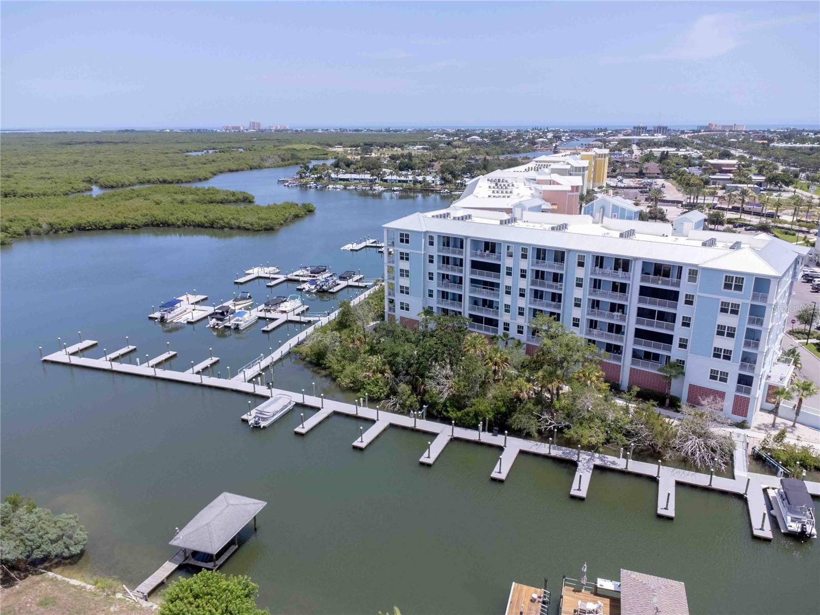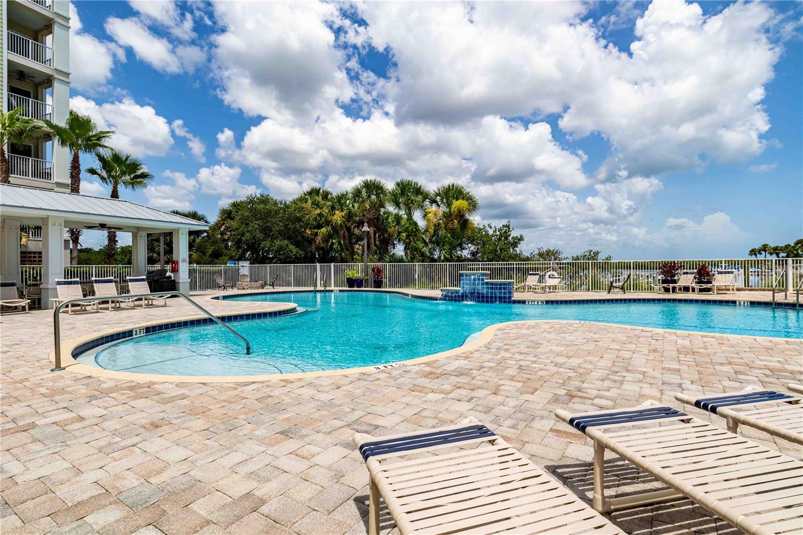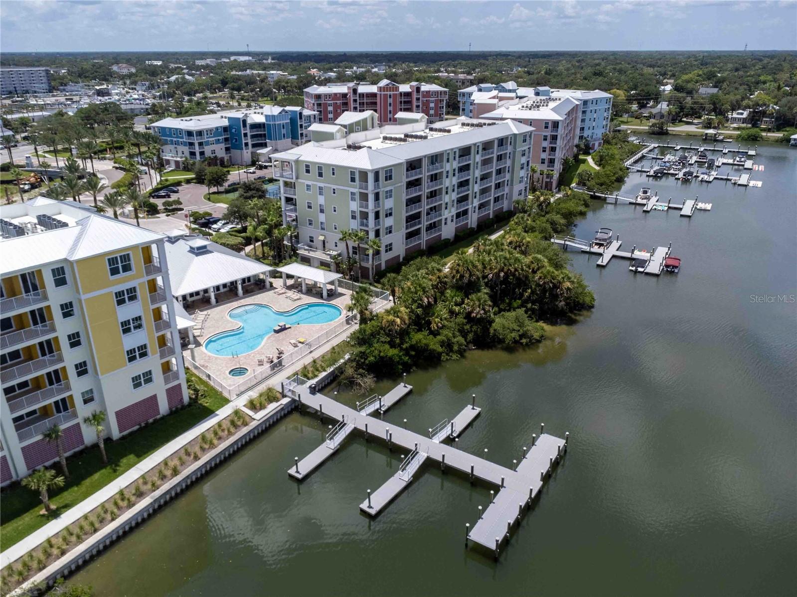 Carefree living awaits at Riverwalk Condominium! This unit comes with a deeded BOAT SLIP and drive-on boat lift included in the price!! This third-floor end unit, originally a model unit, boasts award-winning upgraded finishes and offers breathtaking views of the river and surrounding areas from every window and balcony. Watch fishing boats, sailboats, and other vessels as they navigate the marina and river. The beautiful sunrise greets you each morning from your expansive double hung windows in the living room and the daily bird show featuring cranes, egrets, and ducks on the fountained pond. Enjoy space shuttle launches from the comfort of your home. The Coronado floor plan features numerous upgrades. Riverwalk amenities include a clubhouse, pool, hot tub, tennis/pickleball court, fitness room, theater room, bocce ball court, and shuffleboard. One of the only complexes that allows dogs over 35 lbs. The location is super close to great restaurants, Flagler Avenue, Canal Street, Brannon Center, and a park. Schedule your private showing today!