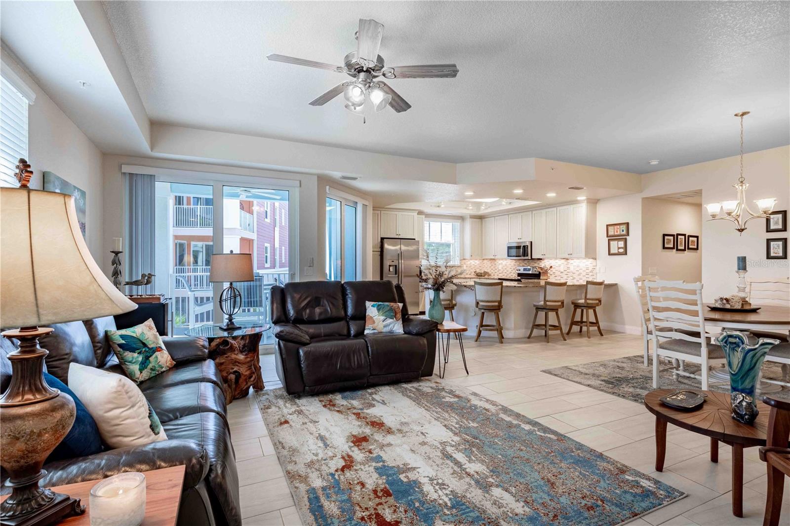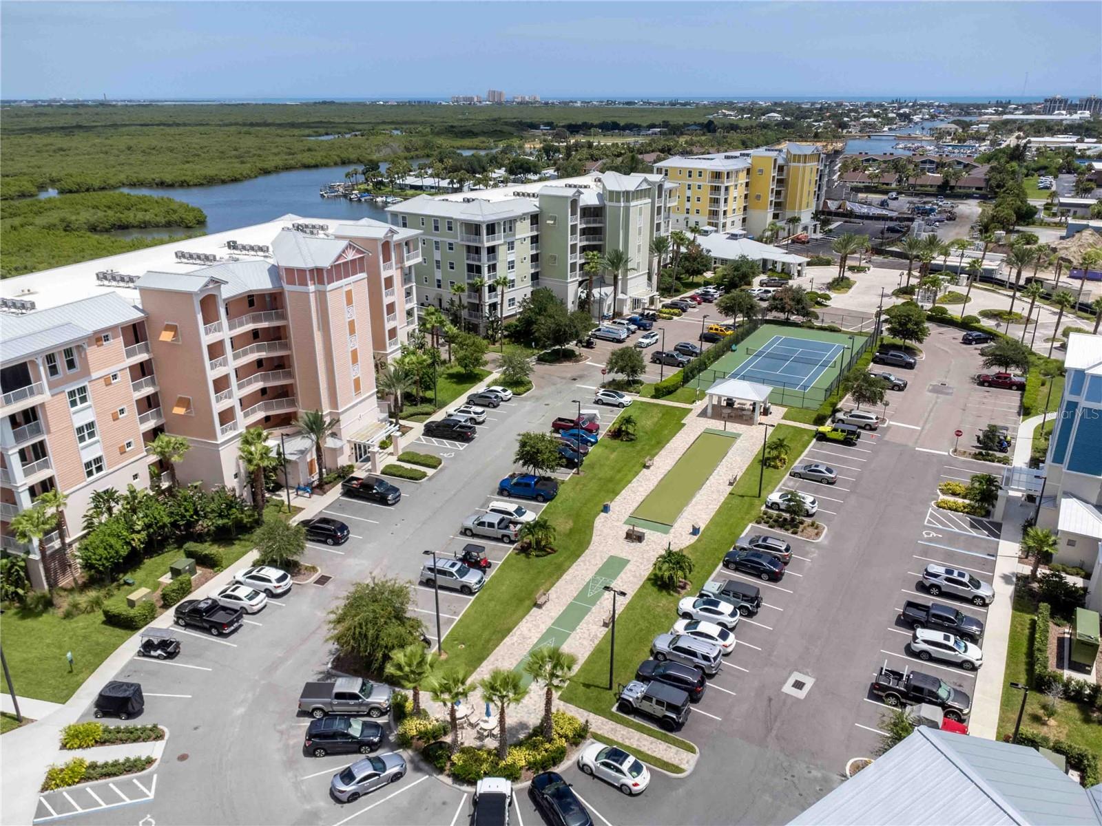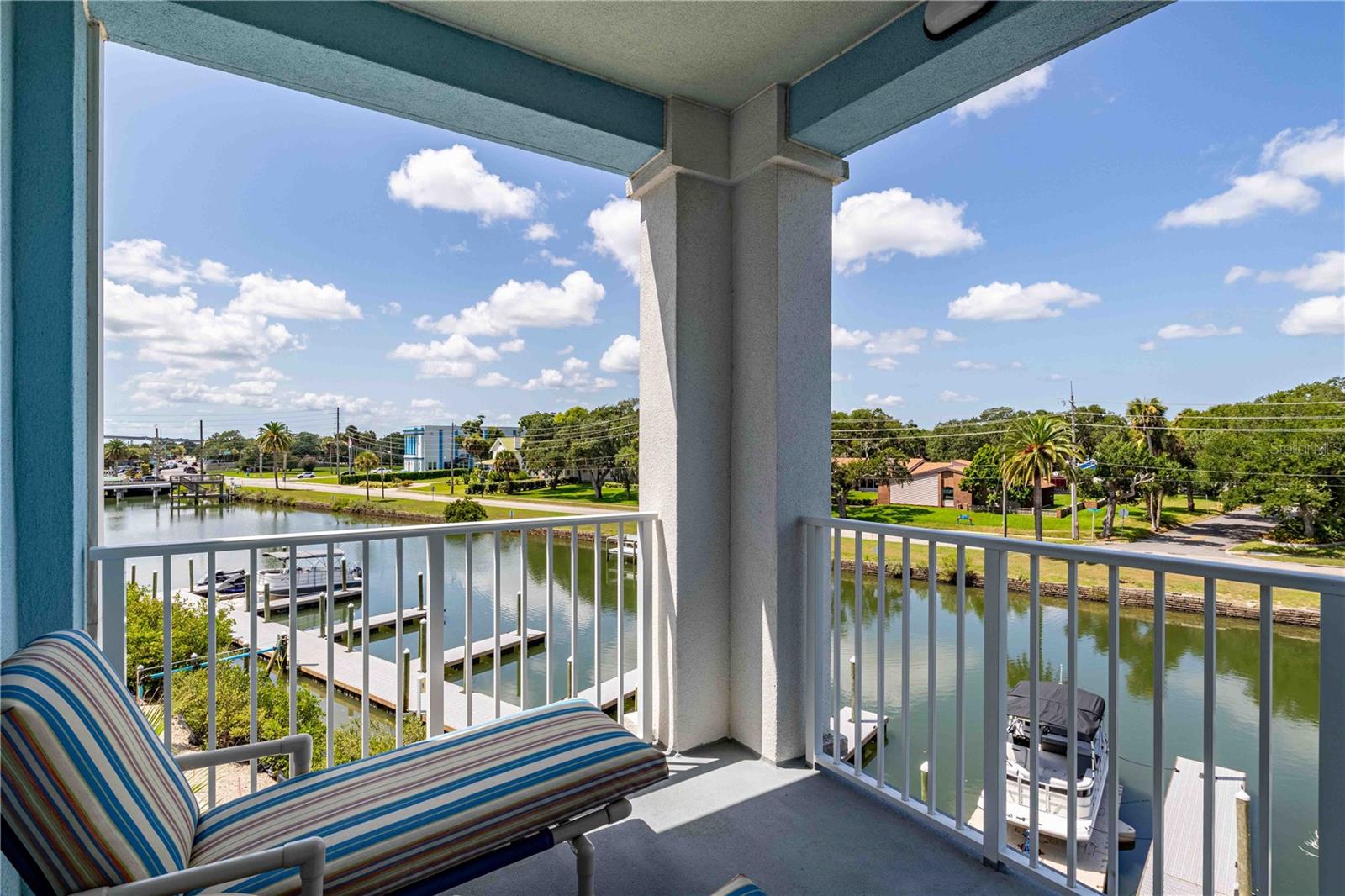Carefree living awaits at Riverwalk Condominium! This unit comes with a deeded BOAT SLIP and drive-on boat lift included in the price!! This third-floor end unit, originally a model unit, boasts award-winning upgraded finishes and offers breathtaking views of the river and surrounding areas from every window and balcony. Watch fishing boats, sailboats, and other vessels as they navigate the marina and river. The beautiful sunrise greets you each morning from your expansive double hung windows in the living room and the daily bird show featuring cranes, egrets, and ducks on the fountained pond. Enjoy space shuttle launches from the comfort of your home. The Coronado floor plan features numerous upgrades. Riverwalk amenities include a clubhouse, pool, hot tub, tennis/pickleball court, fitness room, theater room, bocce ball court, and shuffleboard. One of the only complexes that allows dogs over 35 lbs. The location is super close to great restaurants, Flagler Avenue, Canal Street, Brannon Center, and a park. Schedule your private showing today!