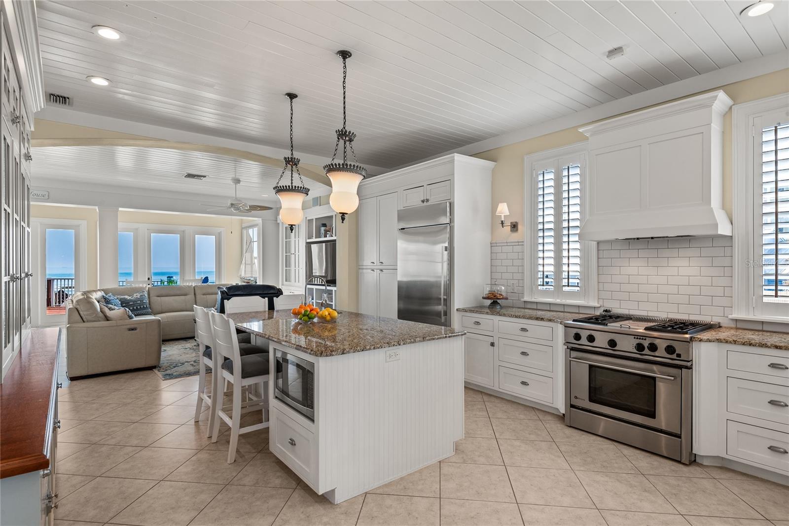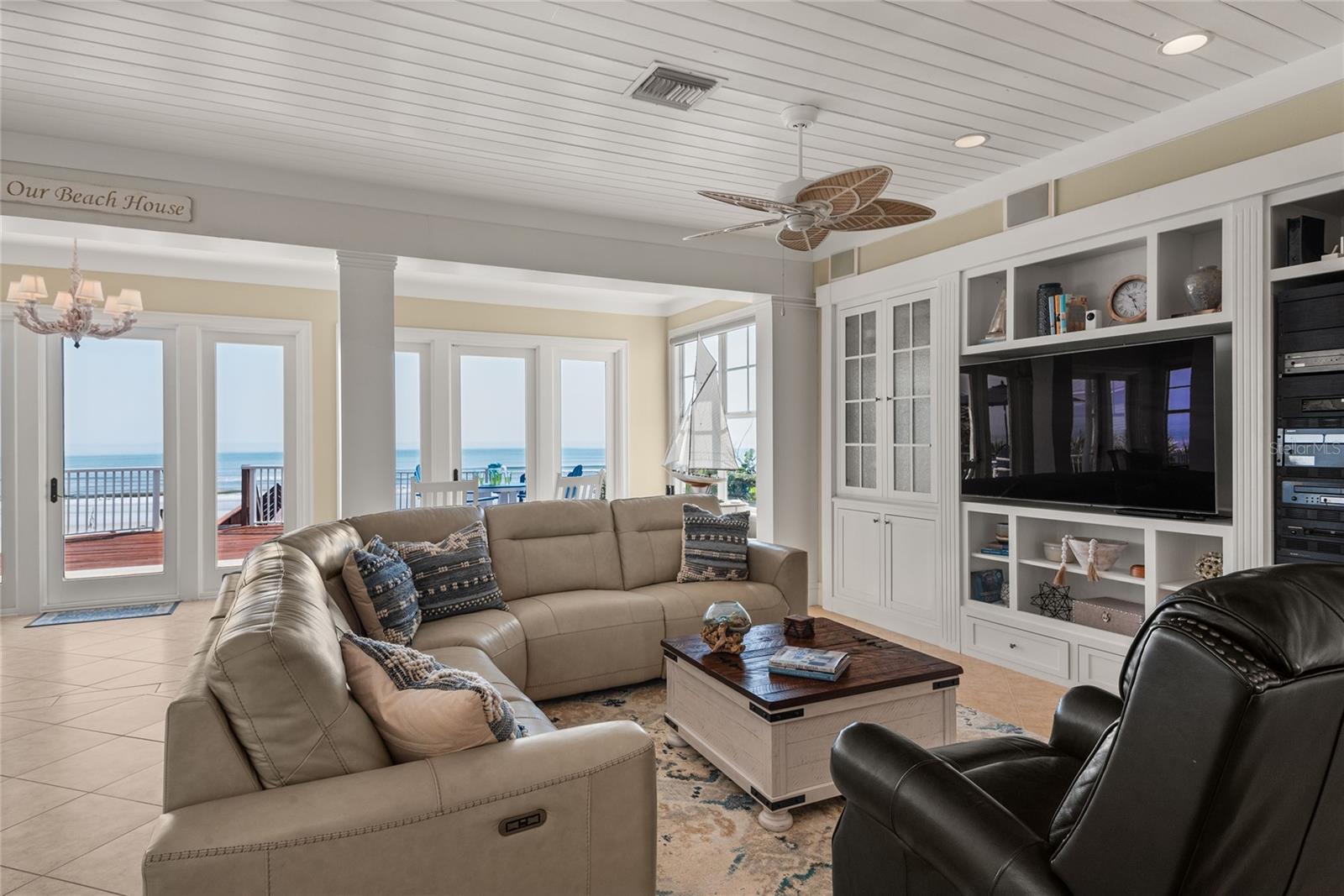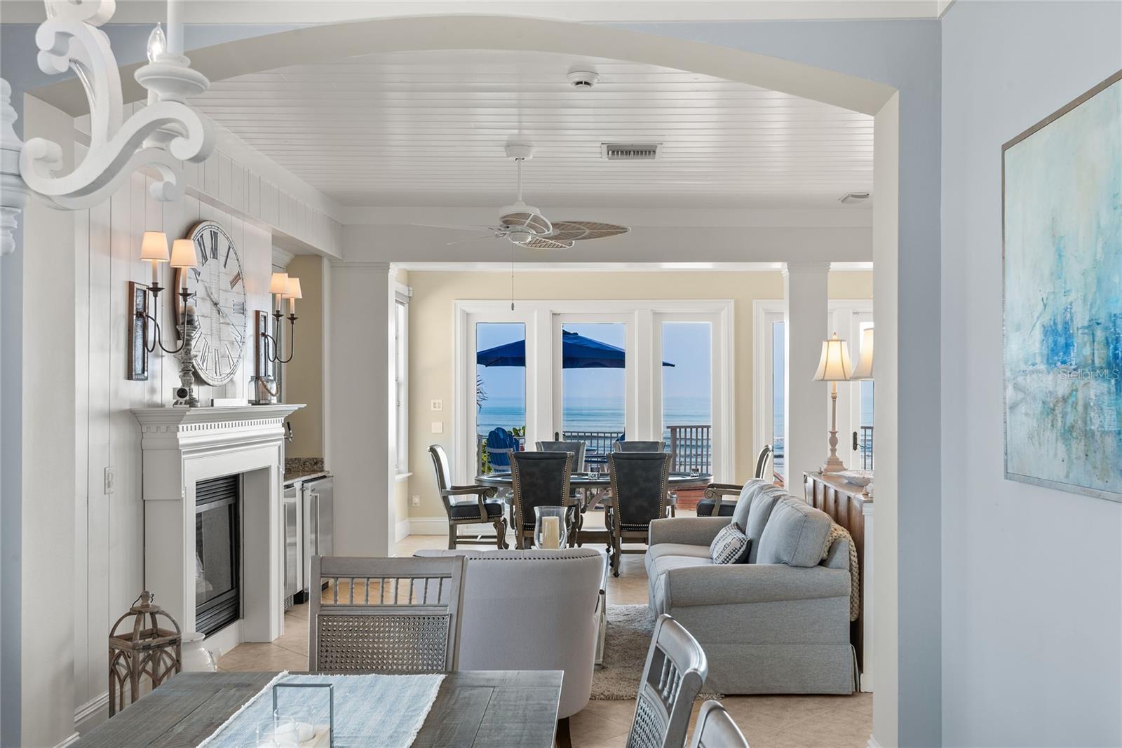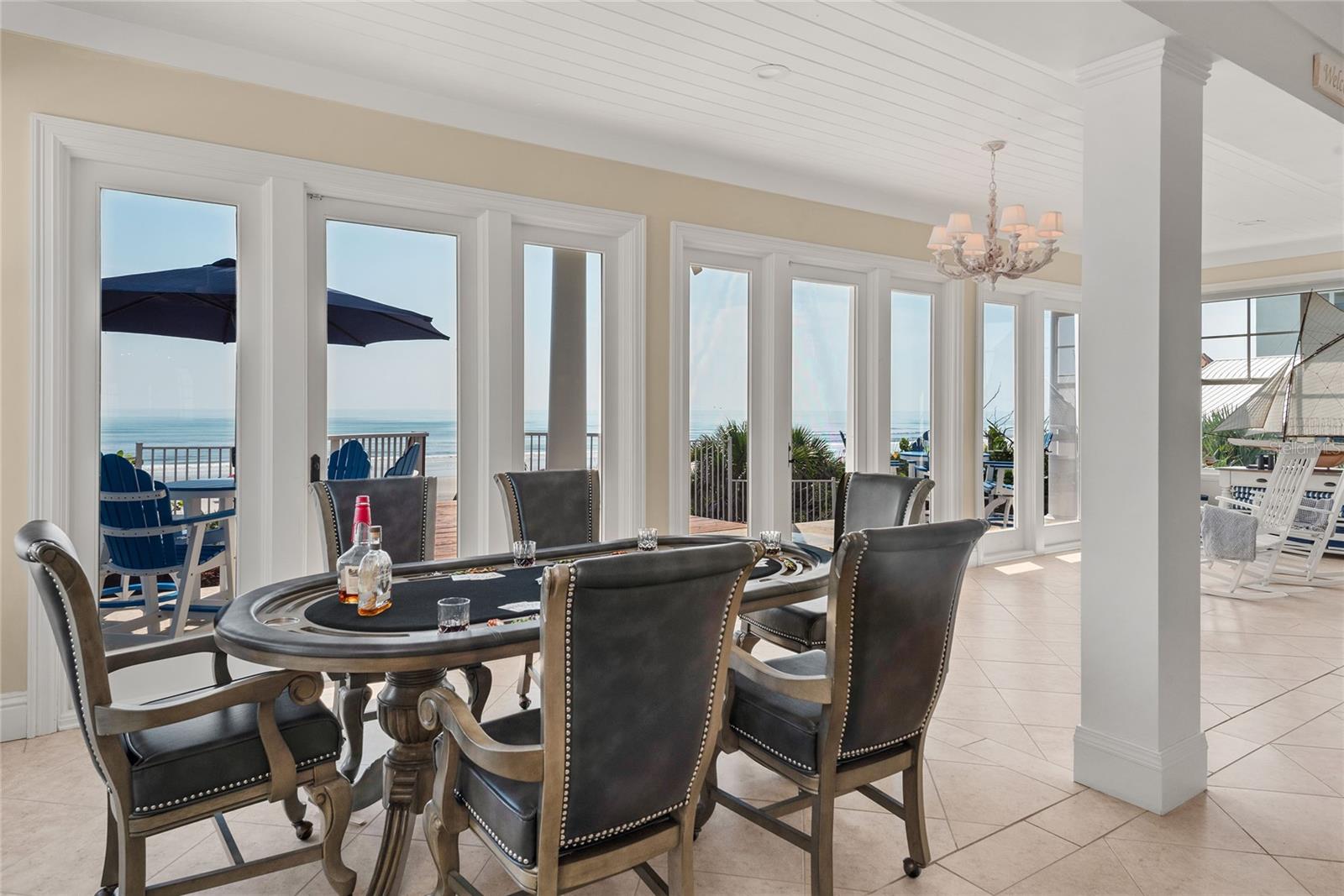Welcome to a direct oceanfront masterpiece, ideally positioned on a premier lot and built to Miami-Dade's strict hurricane code, ensuring unparalleled beauty and resilience. This fortress, constructed on 25-foot pilings, is a testament to superior craftsmanship and robust construction. The seamless integration of architectural interior and exterior design, along with handcrafted elements, makes this home a superior work of art. Revel in unobstructed, panoramic ocean views from every vantage point throughout the home, with sunrises on the east side and sunsets on the west side. Indulge in luxury features such as an elevator servicing all floors, new state-of-the-art appliances, and a game room and billiards for endless entertainment. The open living area is adorned with a cozy fireplace, built-ins, a dining area, and a bar equipped with an ice maker and keg refrigerator. The gourmet kitchen boasts an inviting, extra-large center island with granite countertops, a salad sink, a dual-fuel Monogram gas and electric stove, and a spacious Monogram stainless steel refrigerator and freezer. Cabinet space is abundant, featuring a built-in China hutch. The primary suite is a relaxing haven featuring remote shades, a custom walk-in closet and a spacious private porch, all overlooking the ocean. The luxurious primary bath includes double vanities with a wall of windows offering stunning ocean views. The second level offers a central lounge area, laundry room, two spacious secondary bedrooms with en-suite baths, and a covered balcony overlooking beautiful ocean waters. The first floor boasts a luxurious ensuite fourth bedroom, an expansive game room, a versatile bonus room, and not one but two large refrigerators for all your extra refrigeration needs. Step into your outdoor paradise. The main floor offers a patio with a newly raised walkway leading to the beach. The second-floor bedrooms with ensuites open to a spacious terrace, and a rooftop deck provides breathtaking panoramic views. Other luxury features include an outdoor shower, all-new floors, new Hunter Douglas electric blinds, plantation shutters, a multi-room audio system, new appliances, new ACs, a smart lighting system, and many more updates. This desirable and tastefully designed beach home is available for immediate occupancy. It is ideal for a serene vacation retreat or year-round living. Take the opportunity to view this incredibly gorgeous and meticulously maintained home! These photos and the video only hint at the beauty of this home. Move-in ready. The home comes fully furnished.