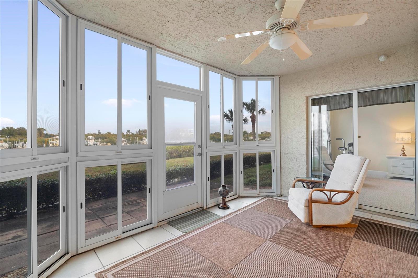 Welcome to Paradise. This Ground Floor condo features just under 1700 sq ft, with a split floor plan. Upon entering the home you are enveloped in the spaciousness of the unit as well as the view of the waterway in the back yard. The open floor plan allows for lots of different configurations while maintaining great sight lines and keeping the kitchen the heart of the home. The master with ensuite bathroom is very spacious leaving room for your kingly sized furniture, a sitting area and even an exercise spot! Both rooms boast walk in closets and large windows. The master even provides access to the enclosed patio that has floor to ceiling windows. Bouchelle Island has much to offer with 2 heated pools, 2 lighted tennis courts, 2 outdoor grille areas, a library, 3000 ft of boardwalk, a floating dock into the intercoastal, and an 18 hole mini-golf course. There are additional boat slips and trailer parking subject to availability. Shopping, dinning, grocery are all at your fingertips. Don't miss out. Contact us today!