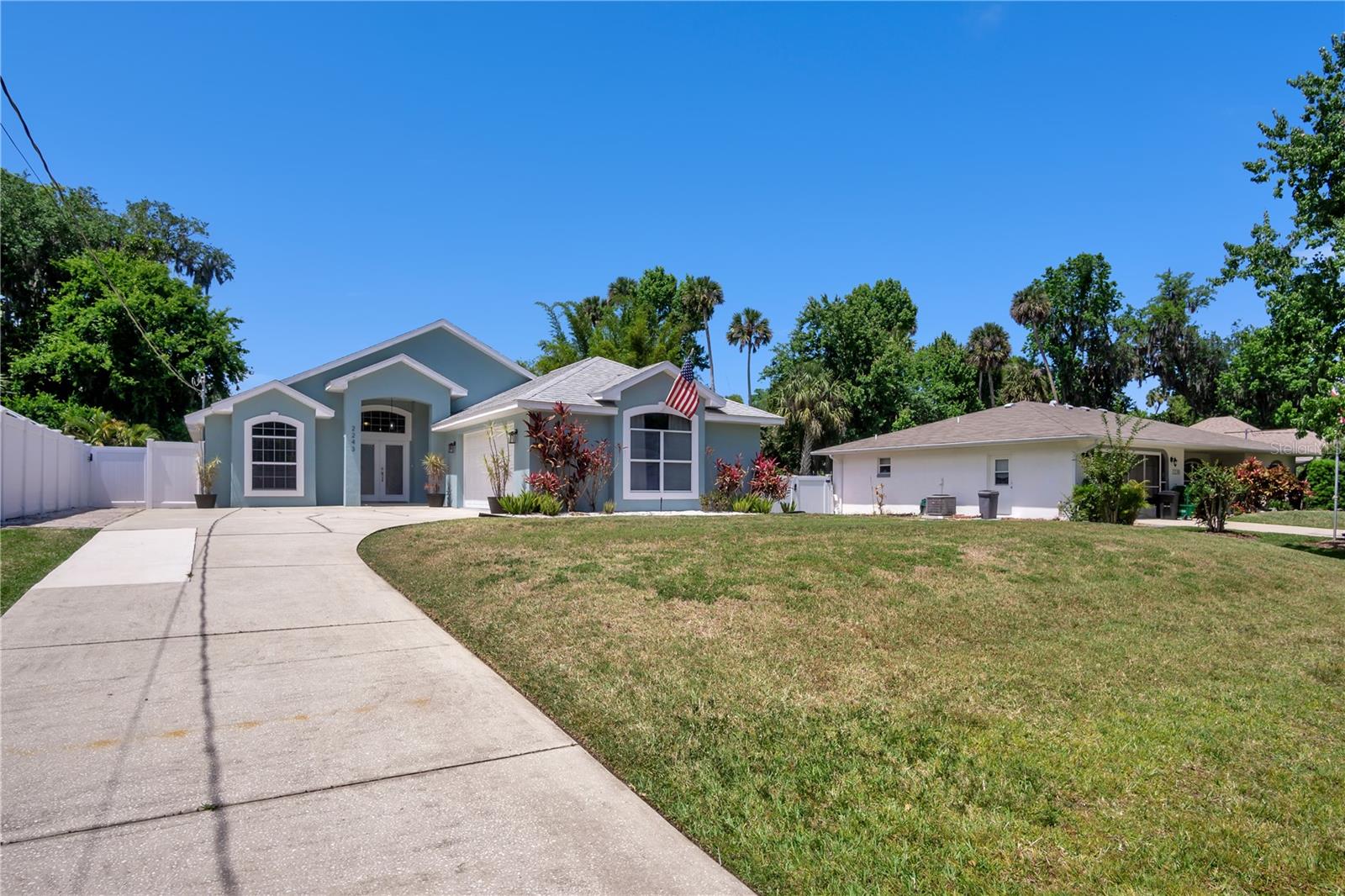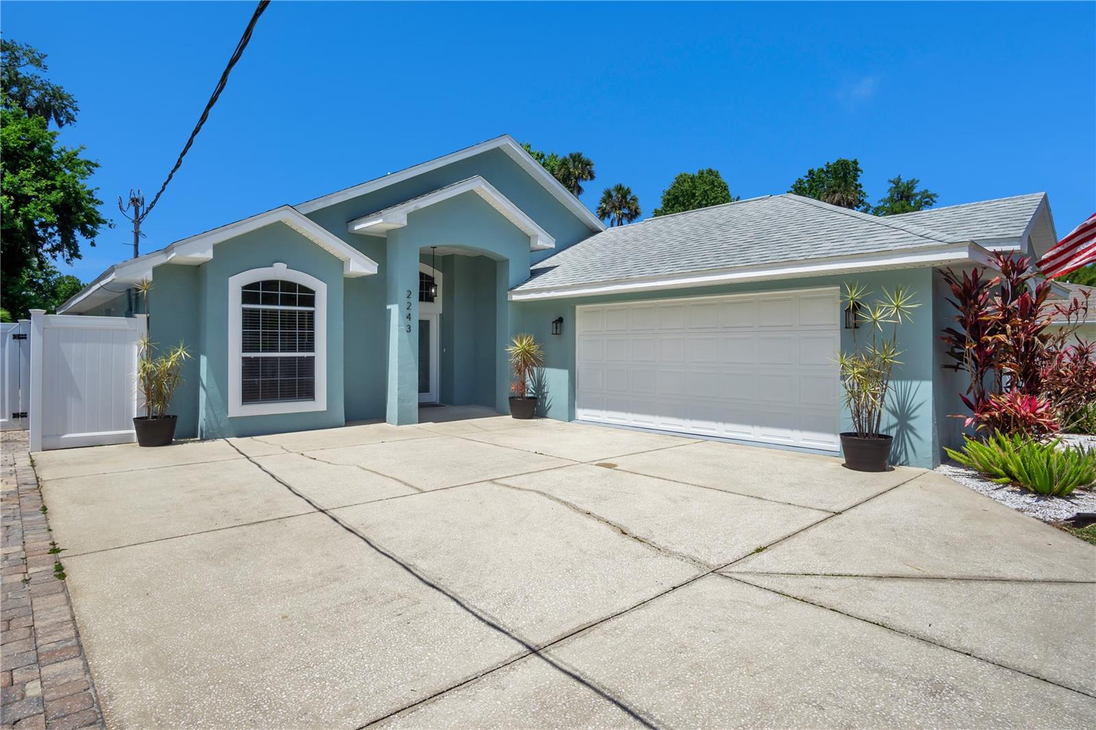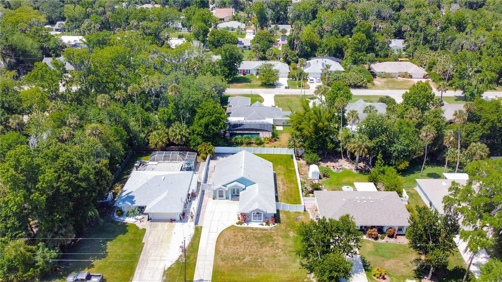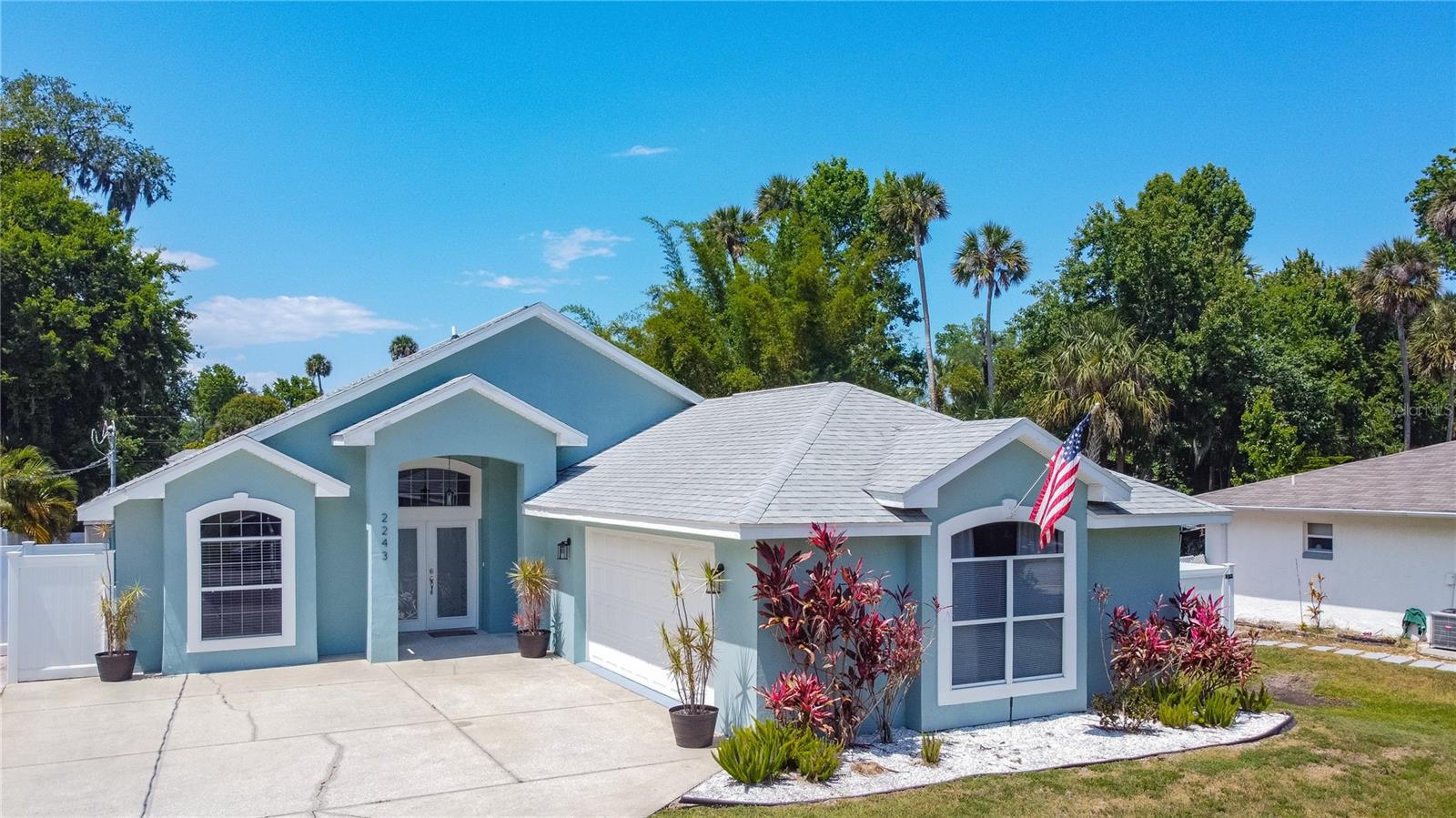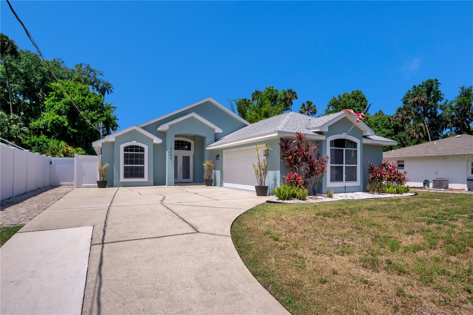 THE WELCOME HOME to this meticulously maintained custom-built home. Located in desirable Corbin Park neighborhood No HOA here! This 3-bedroom 2 bath home with garage under air by the builder checks all boxes. This oversize garage can be converted to a flex space or 4th bedroom with private entrance. The backyard boasts 1200sf paver patio freshly sealed. Privacy abounds in the backyard oasis thanks to the exclusive privacy vinyl fence, a large, screened lanai invites you to relax amidst the spacious backyard that offers endless possibilities - think lush gardens for your furry friends! Includes a utility shed. Newer Roof 2020 porcelain tiles thought home, French Doors, Master bath walls tiled Granite countertops and with matching granite shelves and windowsills in Kitchen, New Air Handler - 2022, Hot water heater. Great floor plan with vaulted ceilings, stainless appliances. This is a great home you're just 10 minutes away from the sun-soaked shores of New Smyrna Beach! With a prime location to I-95, you're effortlessly connected to all that this incredible area and is a great home waiting for it's next family. Contact for a showing today.